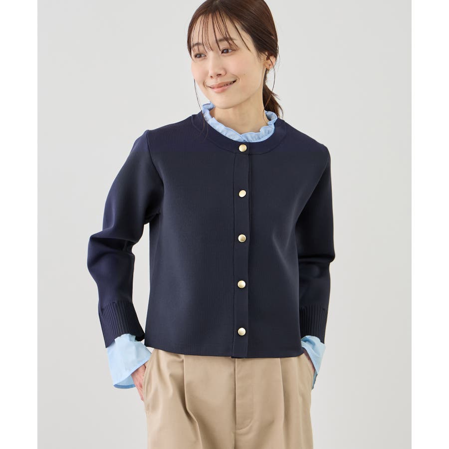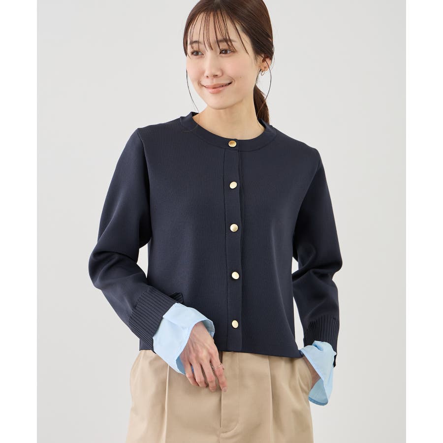 ・布帛パーツを外せばシンプルなカーディガンとして着用可能なマルチWAY。