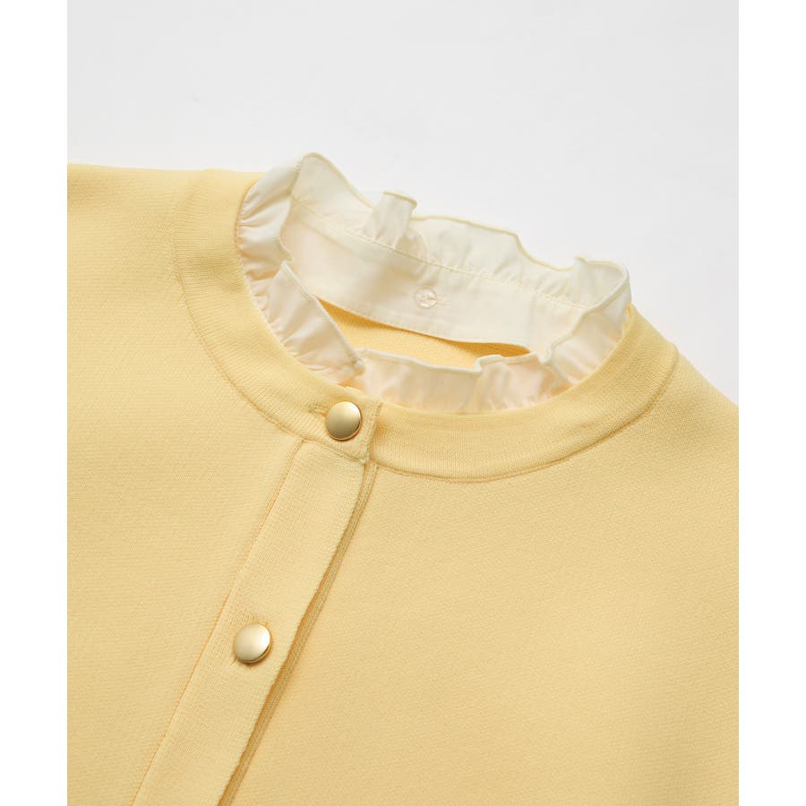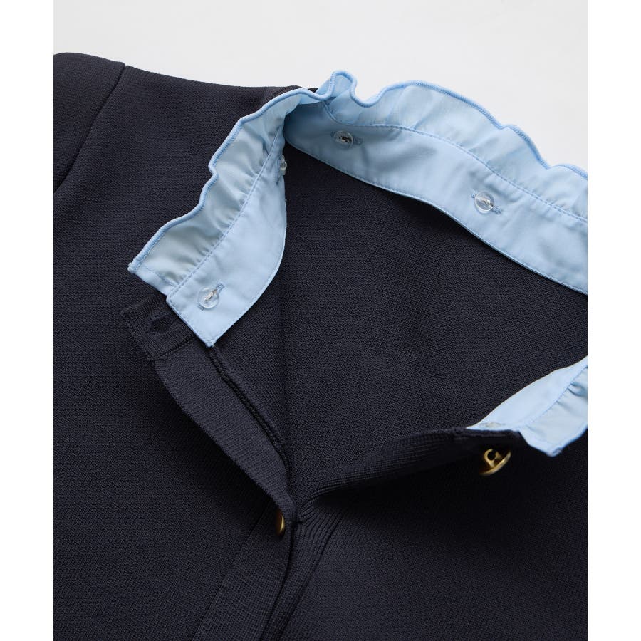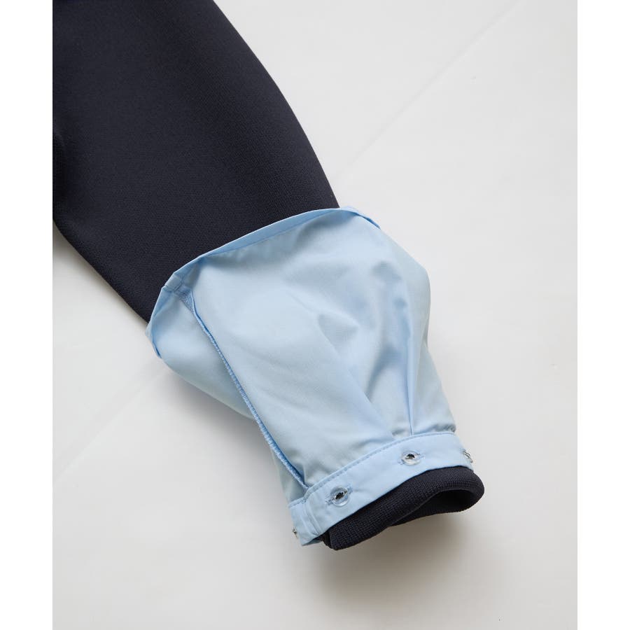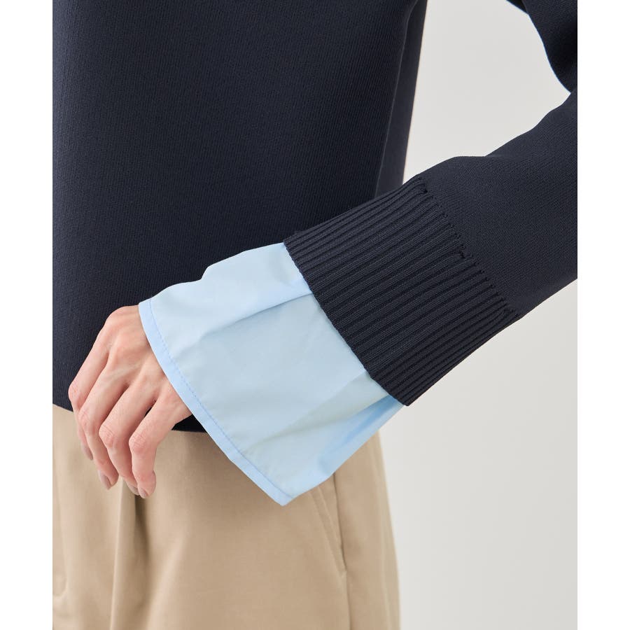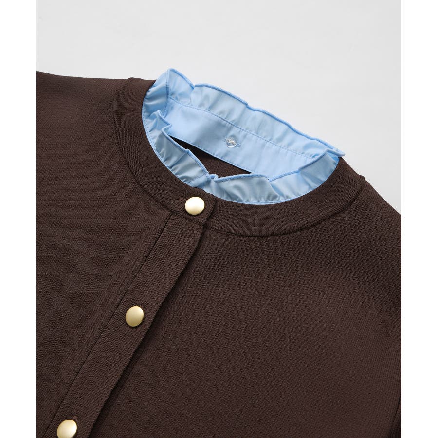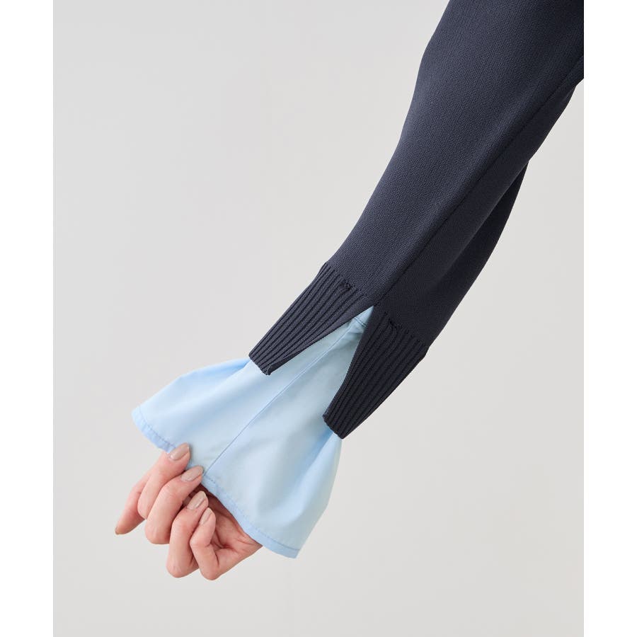 ・襟とカフスに布帛をドッキングした、華やかでクラシカルなデザイン。