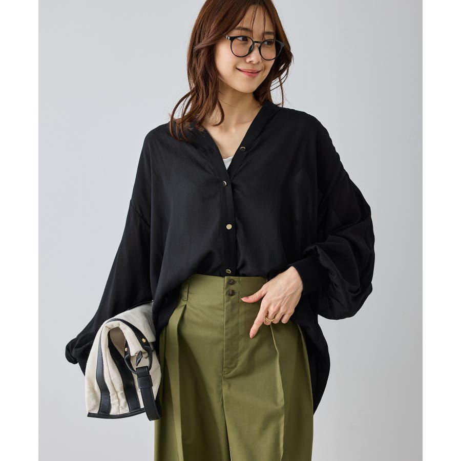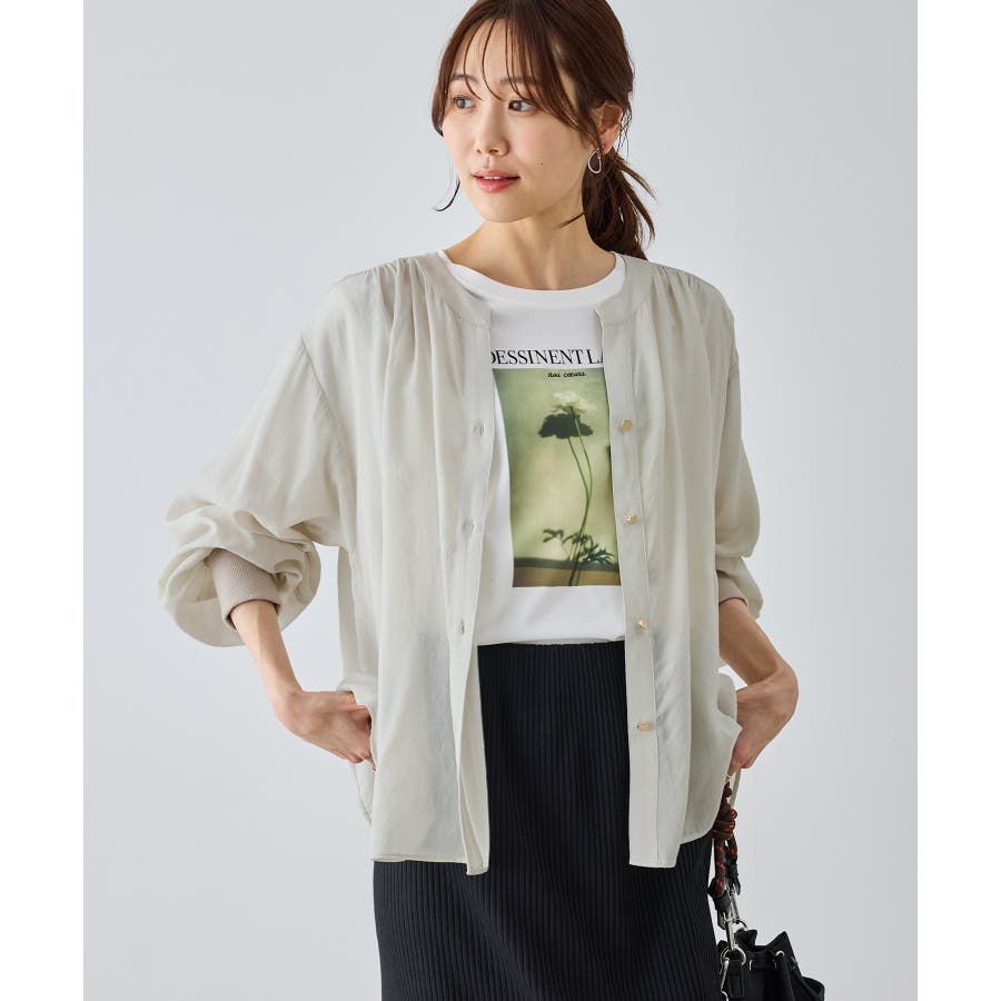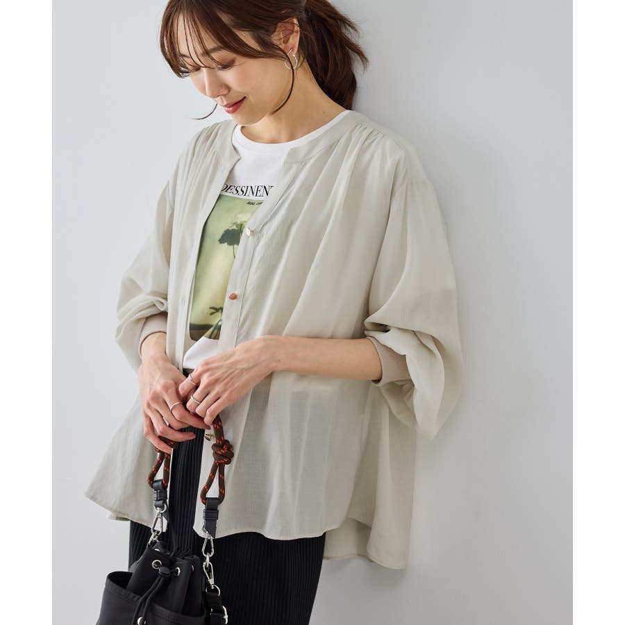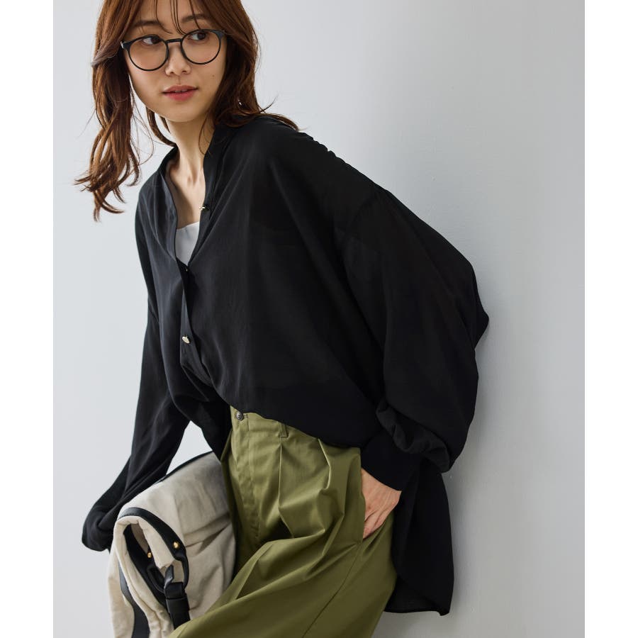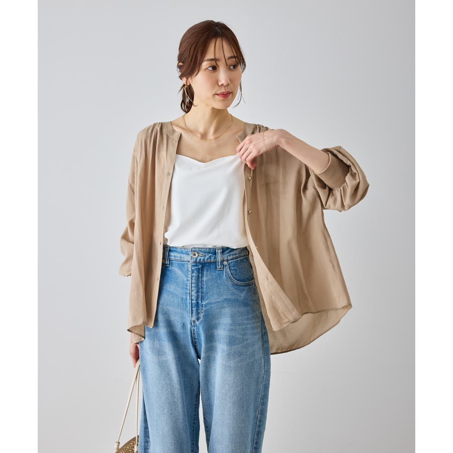 布帛シアーカーディガンブラウス