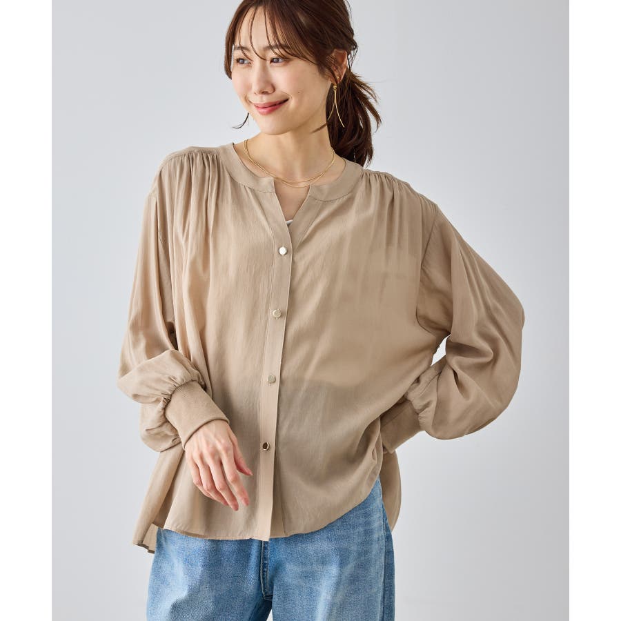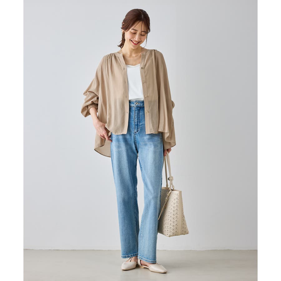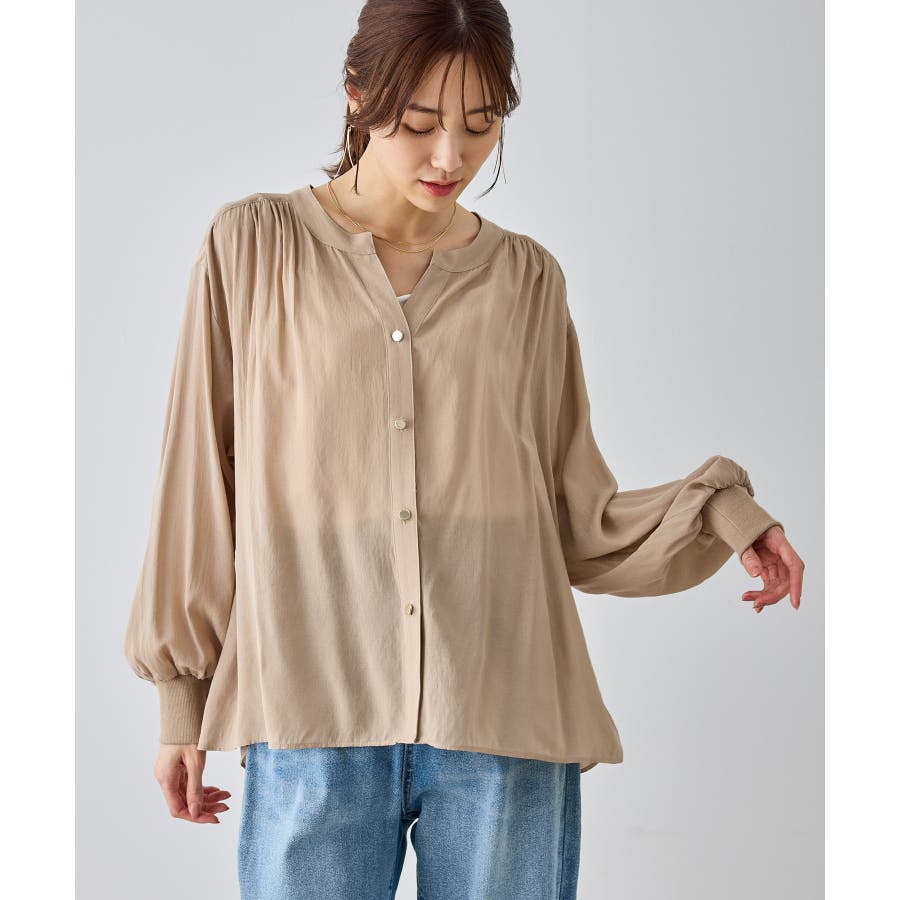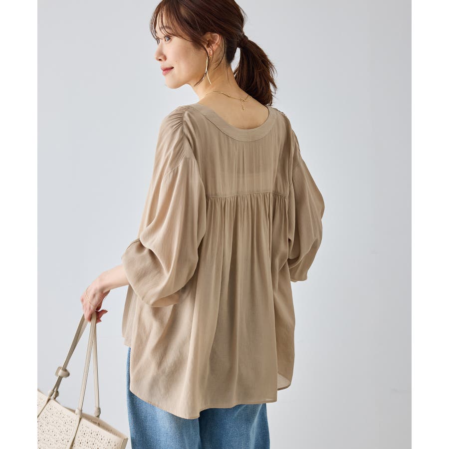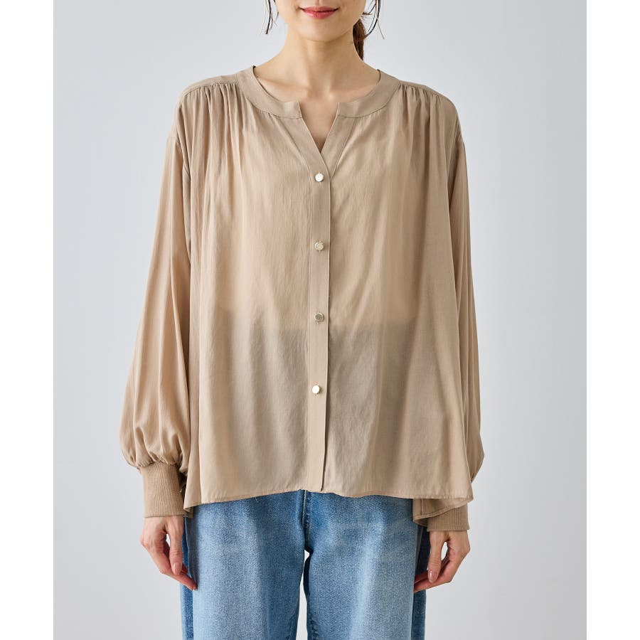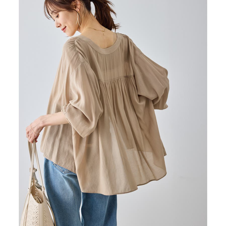 布帛シアーカーディガンブラウス