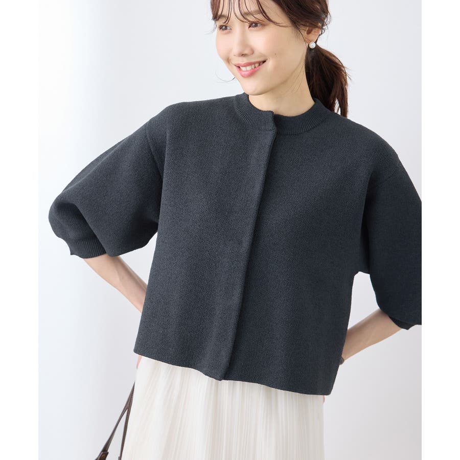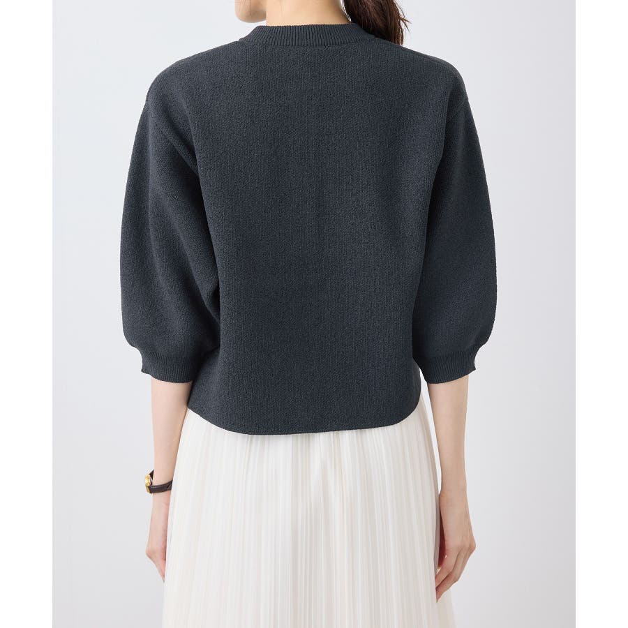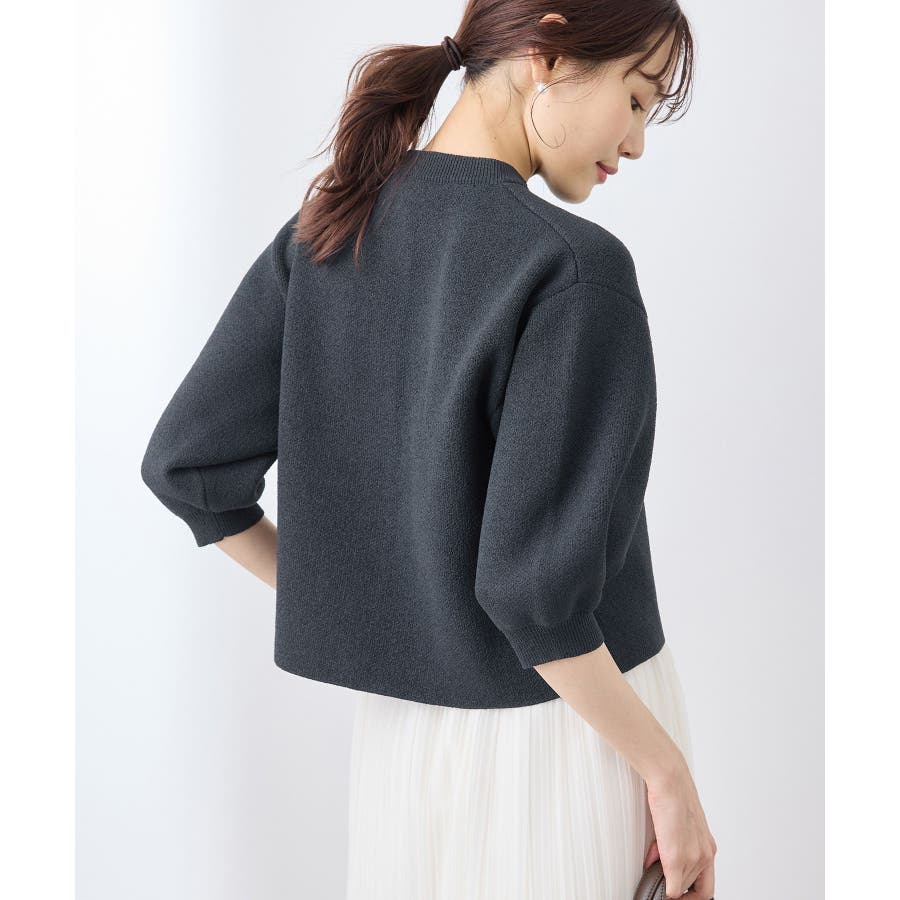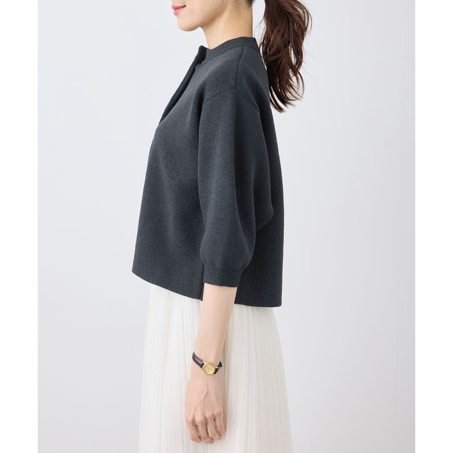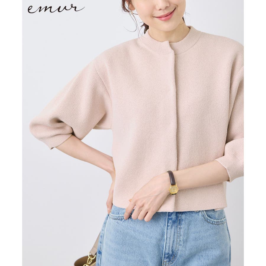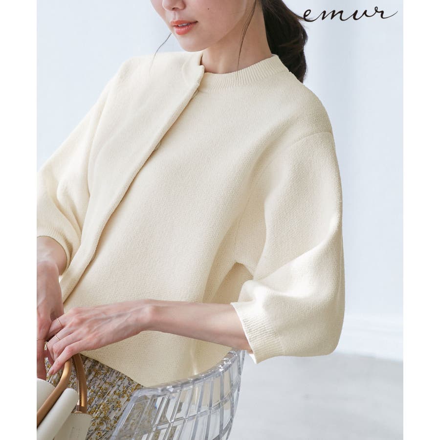 【emur/エミュール】モールヤーン畦ニット5分袖カーディガン