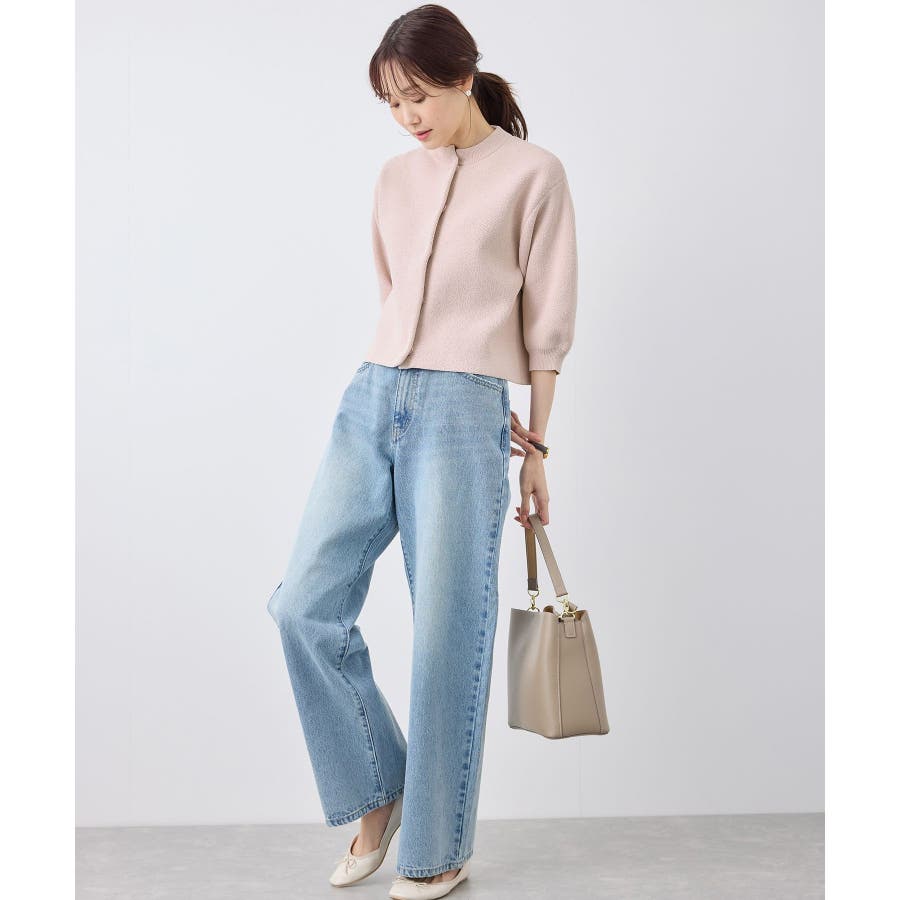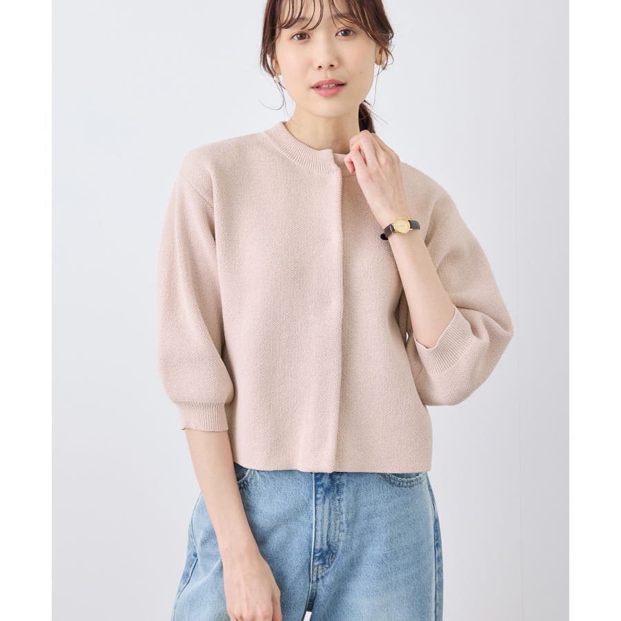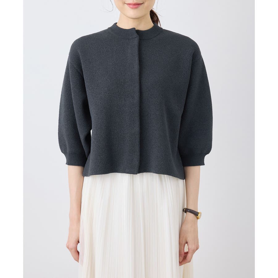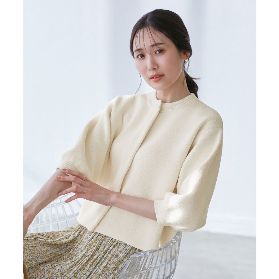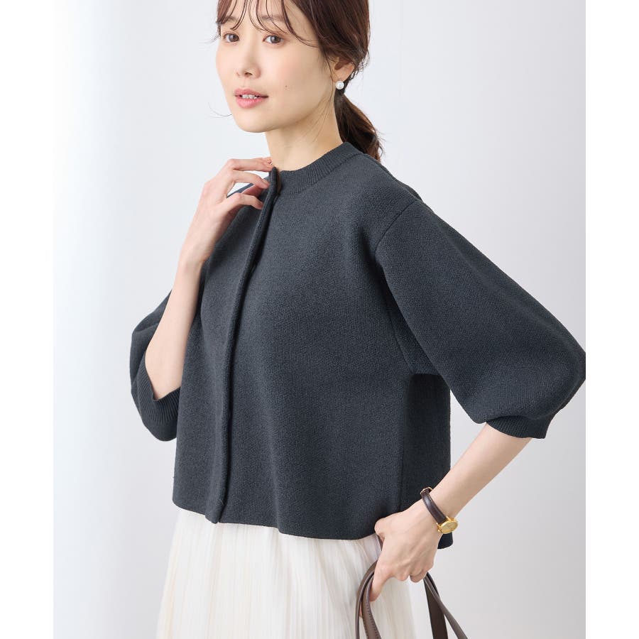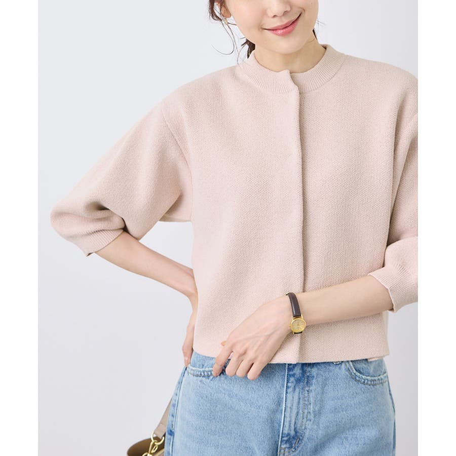 【emur/エミュール】モールヤーン畦ニット5分袖カーディガン