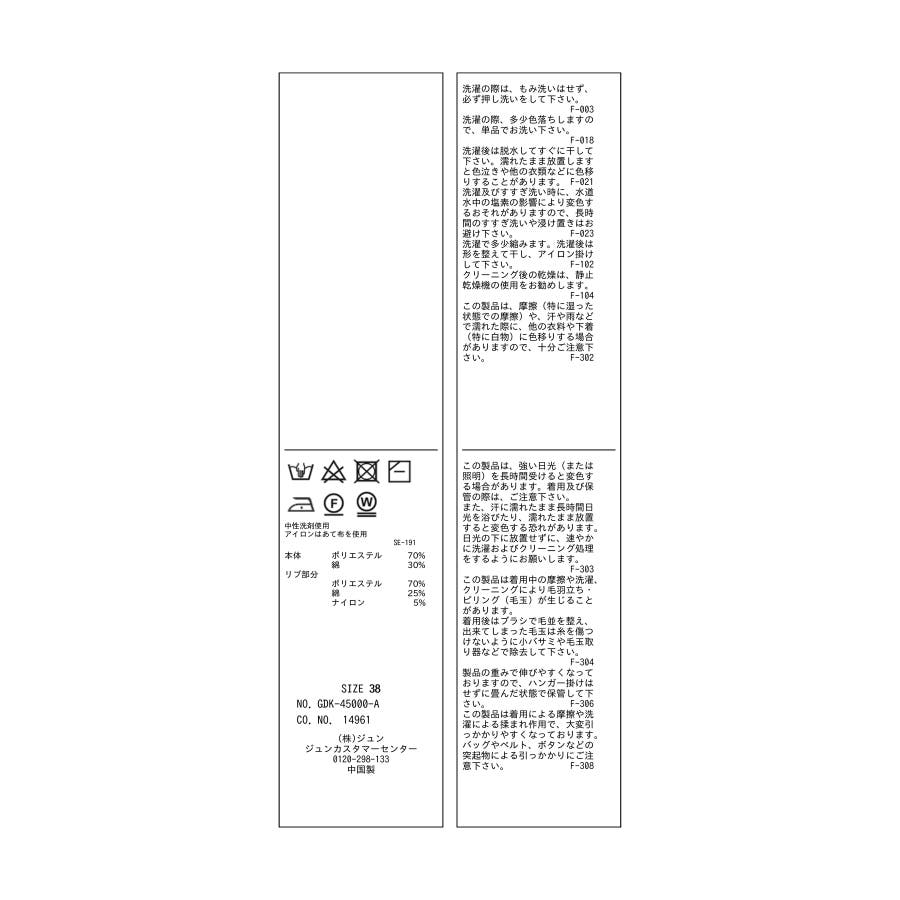 | 素材 | (本体) ポリエステル 70% 綿 30% (リブ部分) ポリエステル 70% 綿 25% ナイロン 5% |