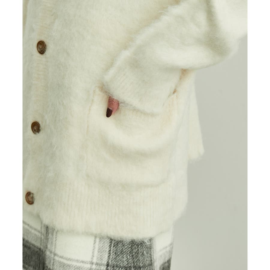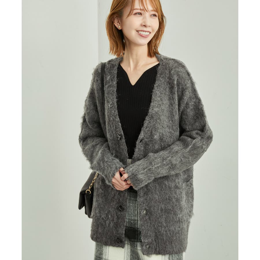 【素材感】 ・肌触りふわふわなシャギー素材。 【デザイン・シルエット】 ・からだを包み込む、ゆったりシルエットのVネックカーディガン。 ・フロントポケットがデザインアクセント。 【カラー】 ・チャコールグレー、キナリ、グリーンの3色展開。 【スタイリングポイント】 ・軽やかなプリントワンピースを冬っぽく仕上げるポイント使いに。 ・ラフなプリントTシャツに羽織ってもおしゃれ。 ・同シリーズでKIDS(品番:GRK63010)も展開しているので、親子お揃いもおすすめ。 ----------------------------- 裏地:なし 透け感:なし 伸縮性:ややあり 生地感・厚さ:やや厚手 ポケット:あり 季節:秋・冬 ----------------------------- ※撮影時の光、お使いのモニター環境によって色の見え方が違う場合がございます。 ※KIDSは一部店舗限定になります。 ※モデル身長:165cm 着用サイズ:38
