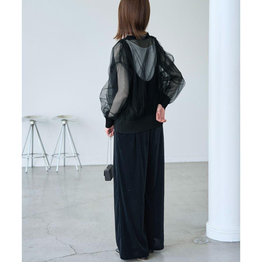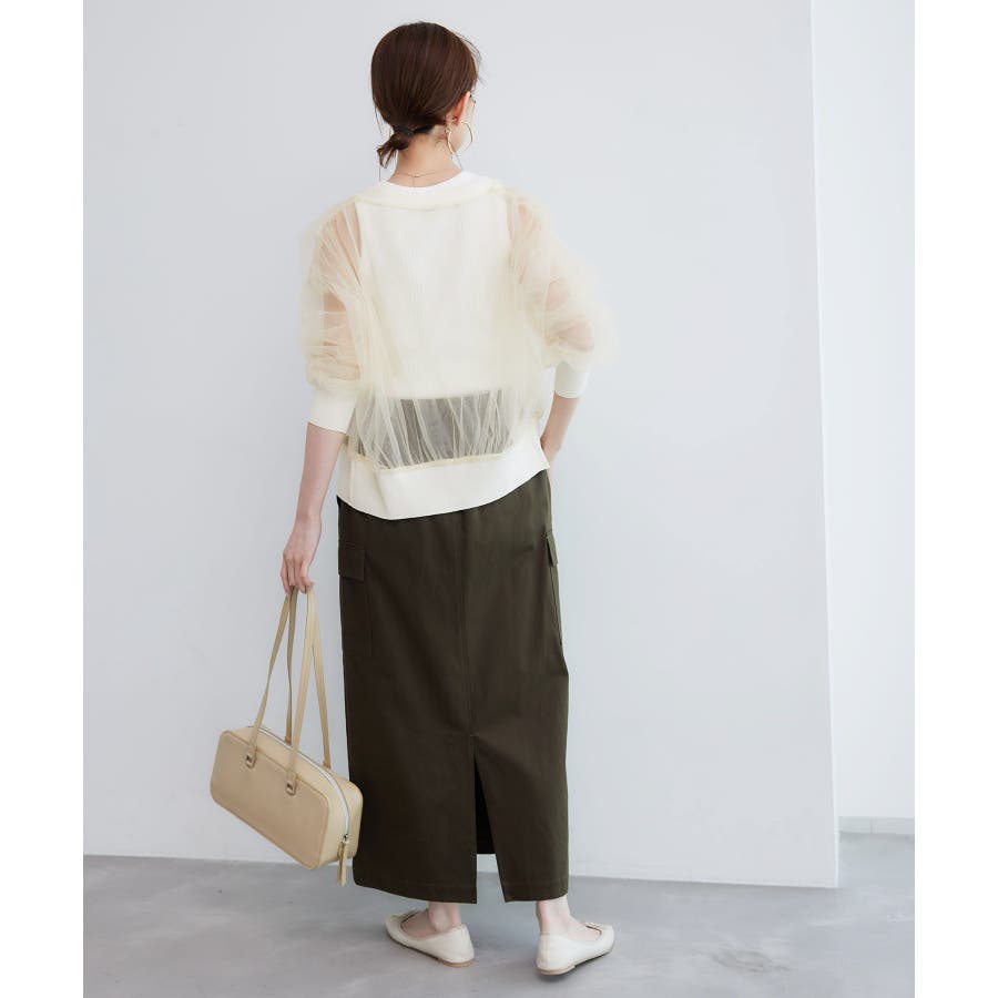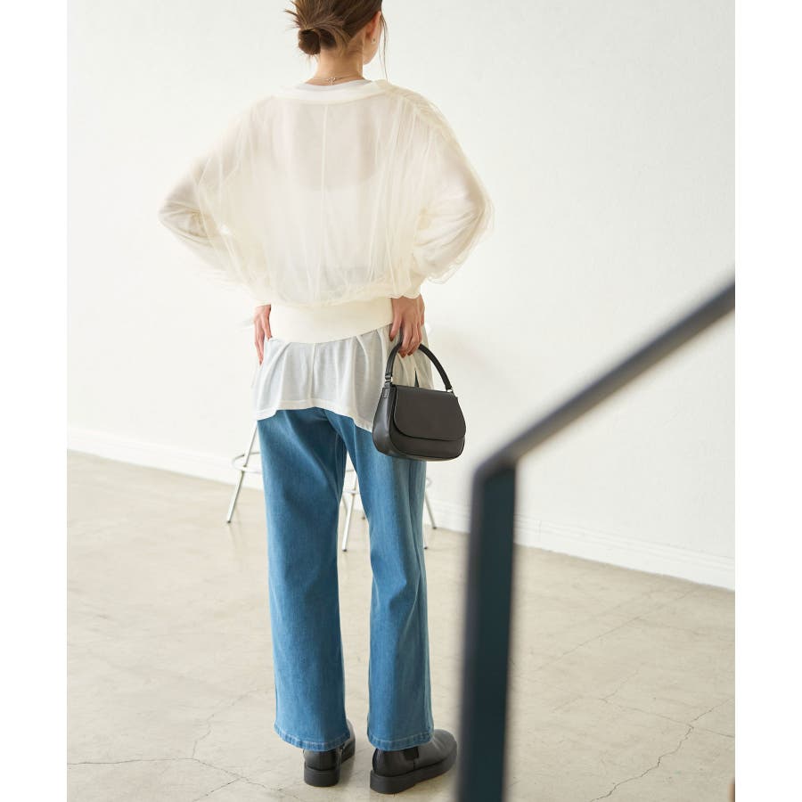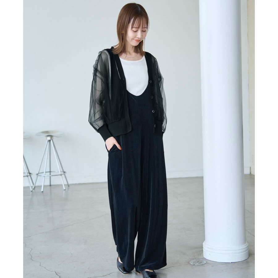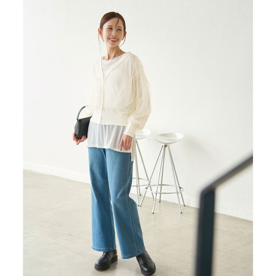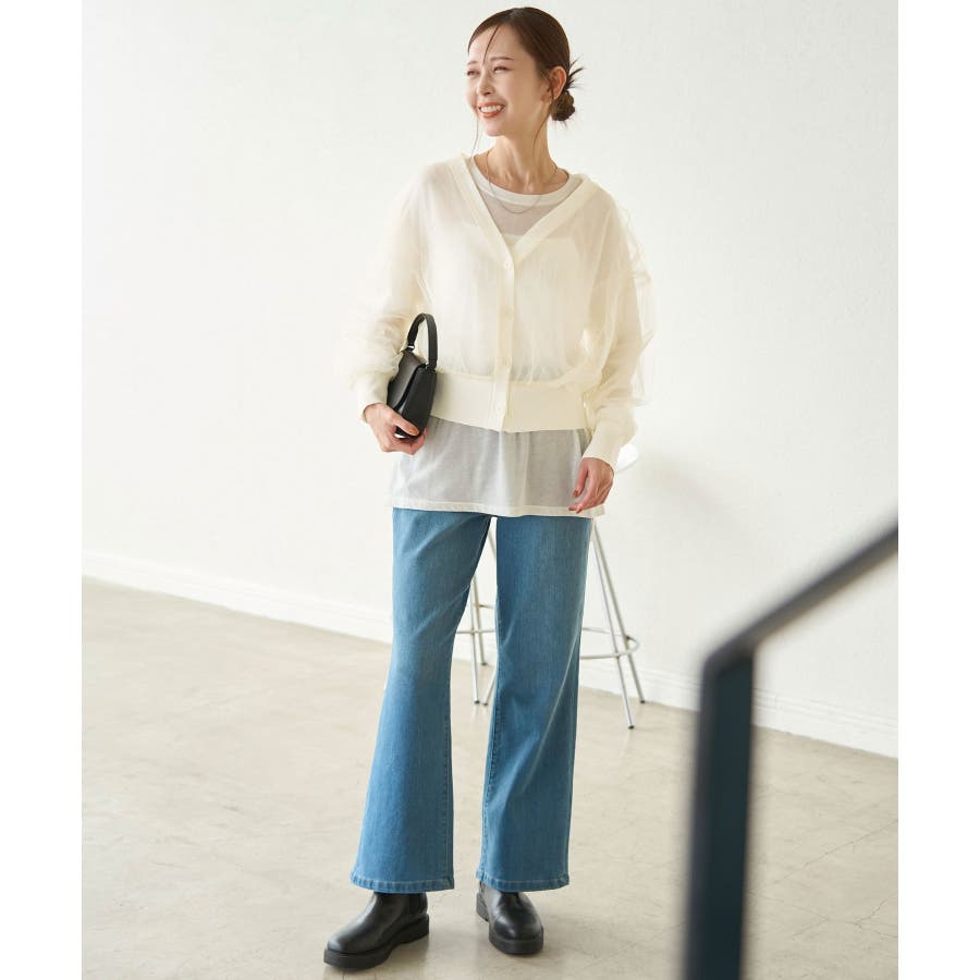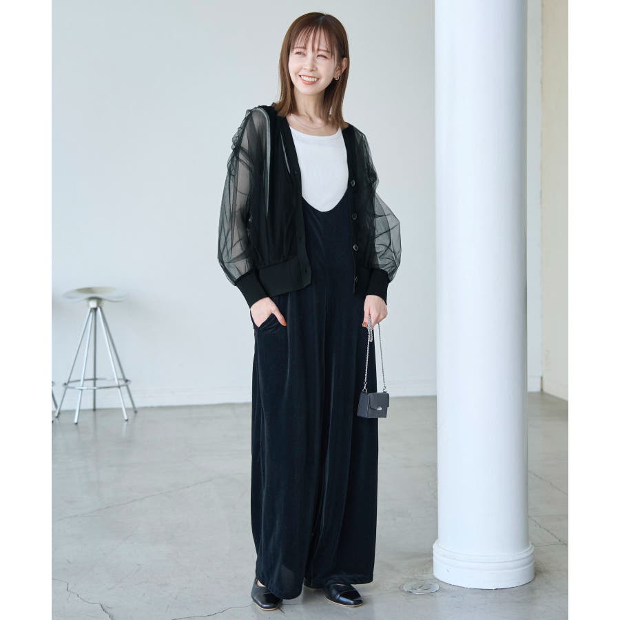 【素材感】 ・シアーなチュール素材の長袖Vネックカーディガン。 【デザイン・シルエット】 ・ふんわりとしたボリュームシルエット。 ・重ね着のしやすいVネックデザイン。 ・袖口、裾のリブ切り替えですっきり。 【カラー】 ・ブラック、アイボリーのモノクロカラーを2色展開。 【スタイリングポイント】 ・タンクトップやキャミソールにさらりと羽織って大人見え。 ・柄物ワンピースの羽織にもおすすめ。 ・カジュアルなロゴTシャツもベストマッチ。 ----------------------------- 裏地:なし 透け感:あり 伸縮性:なし 生地感・厚さ:やや薄手 ポケット:なし 季節:秋・春 ----------------------------- ※撮影時の光、お使いのモニター環境によって色の見え方が違う場合がございます。 ※モデル身長:165cm 着用サイズ:38