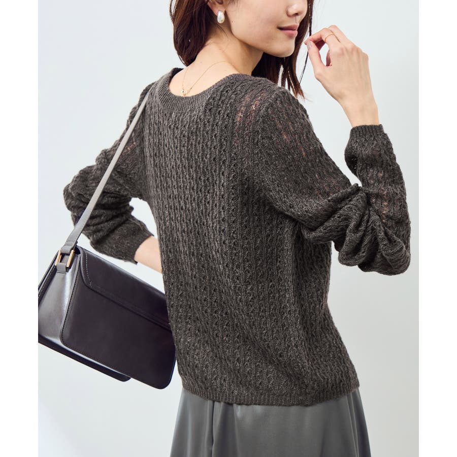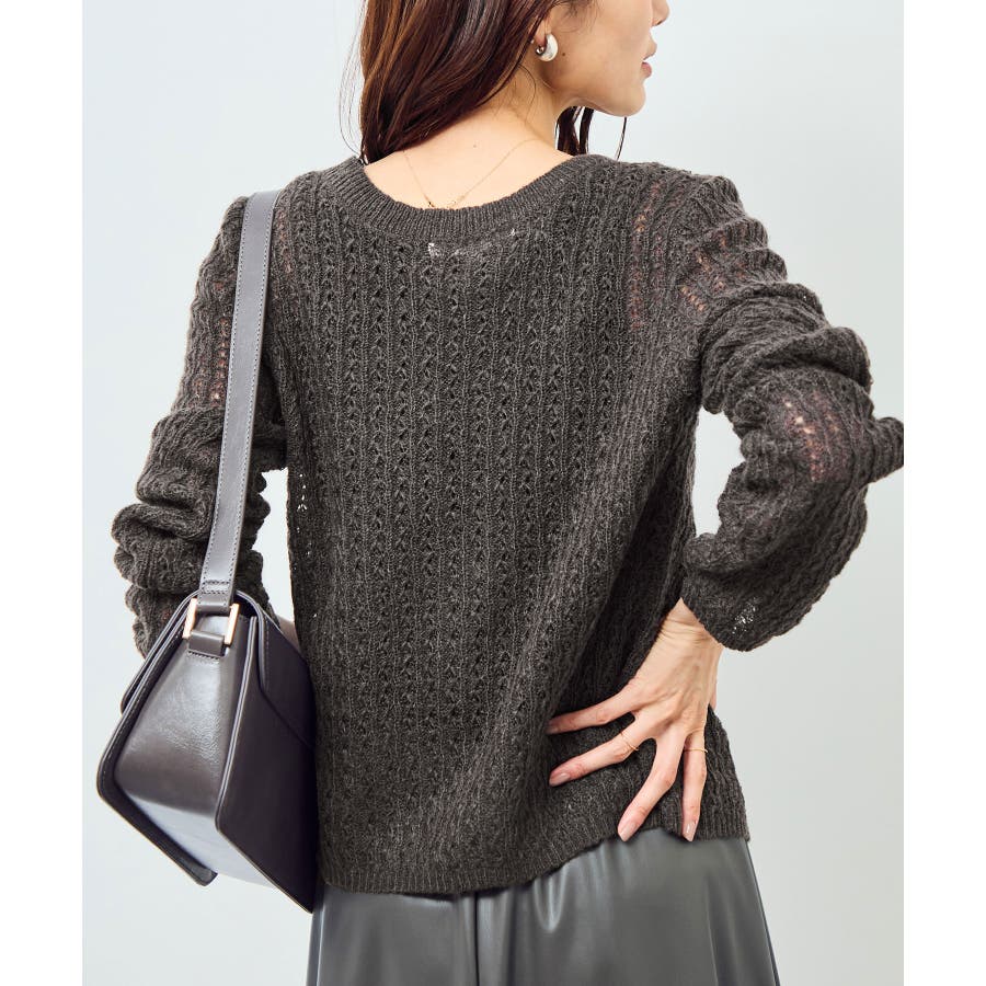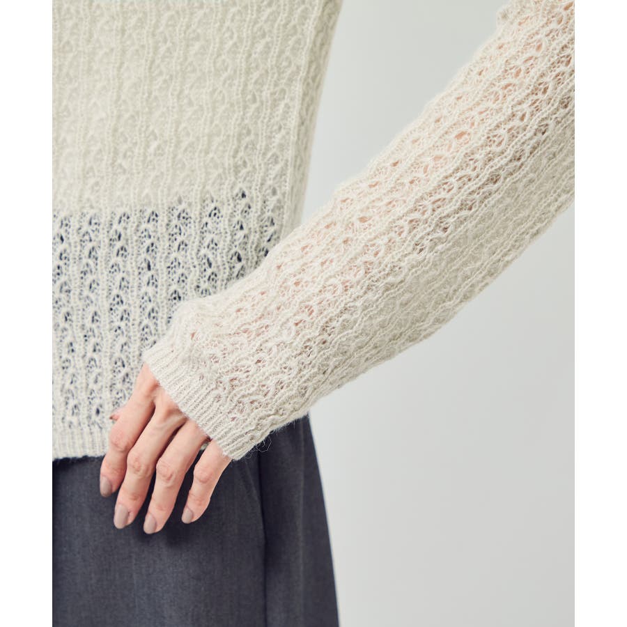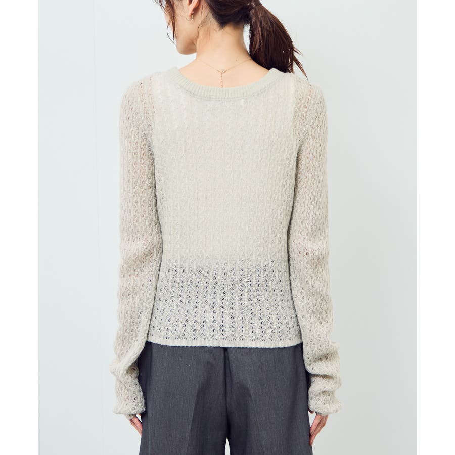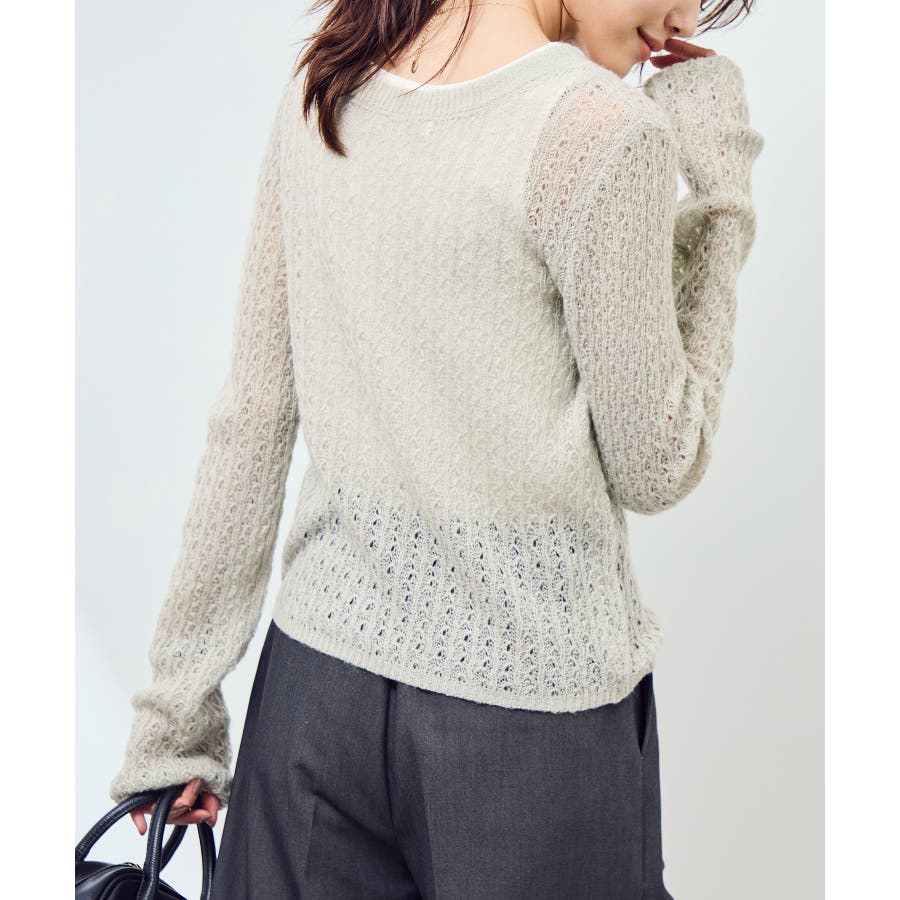レース編みメッシュニットカーディガン