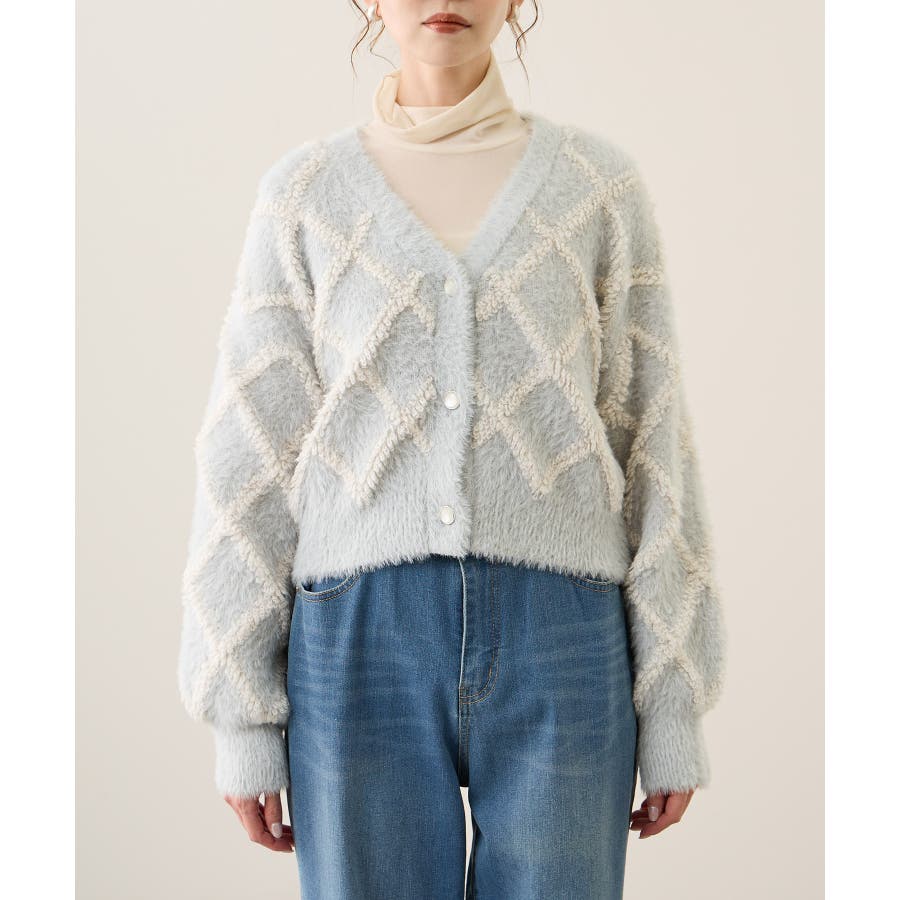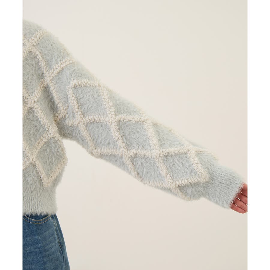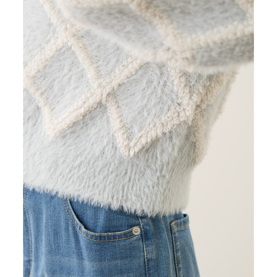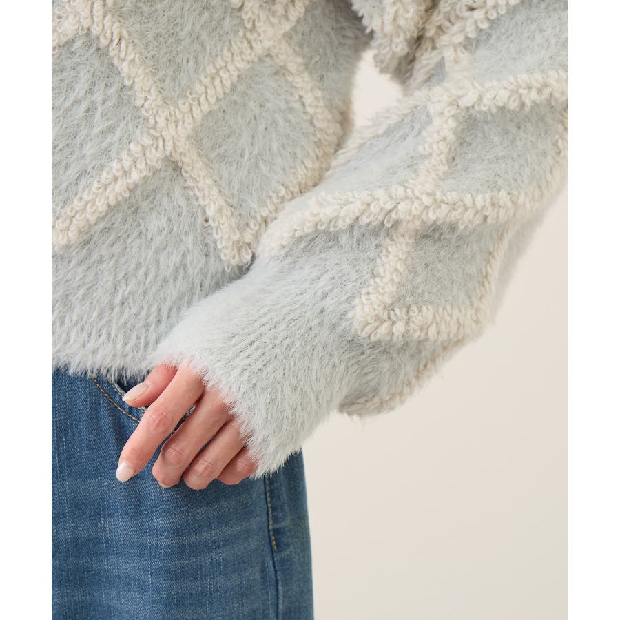 ・ダイヤ柄部分には凹凸感のあるループヤーンを使用し、立体感を演出。