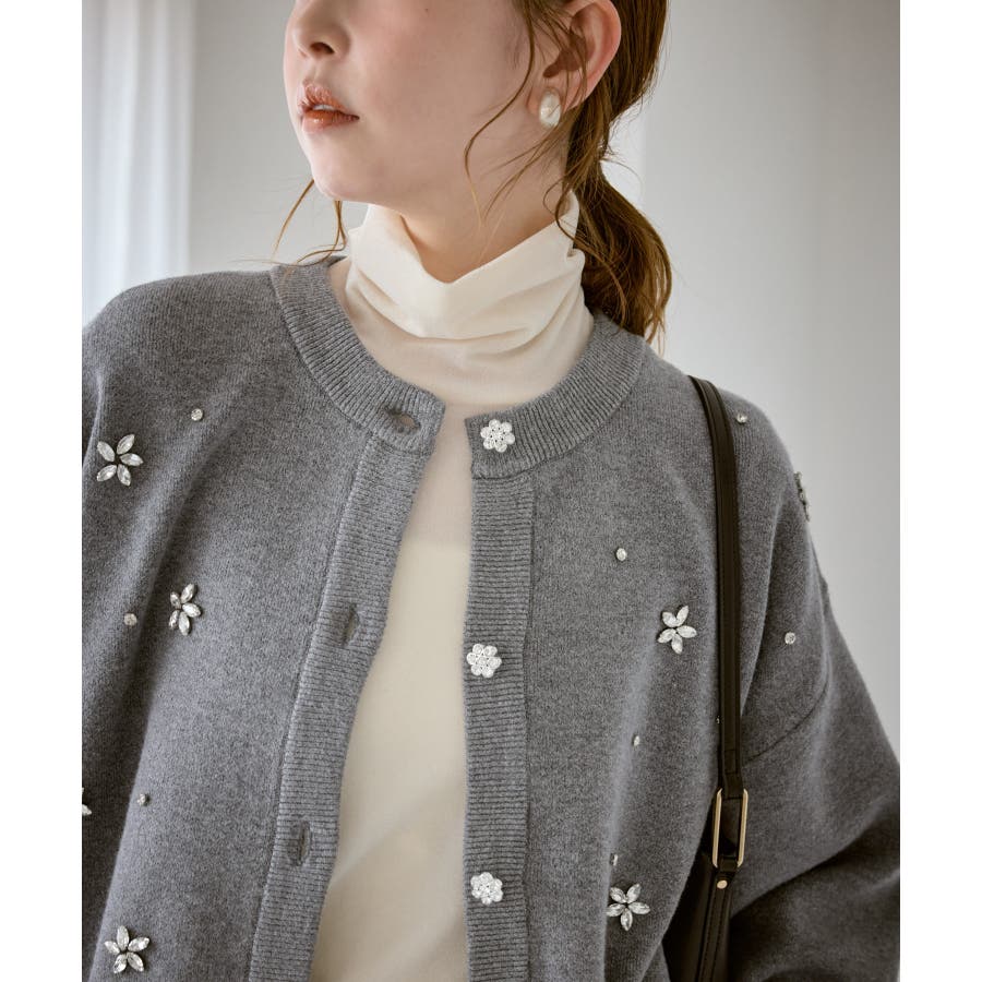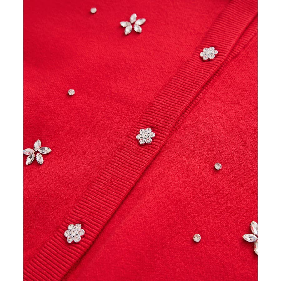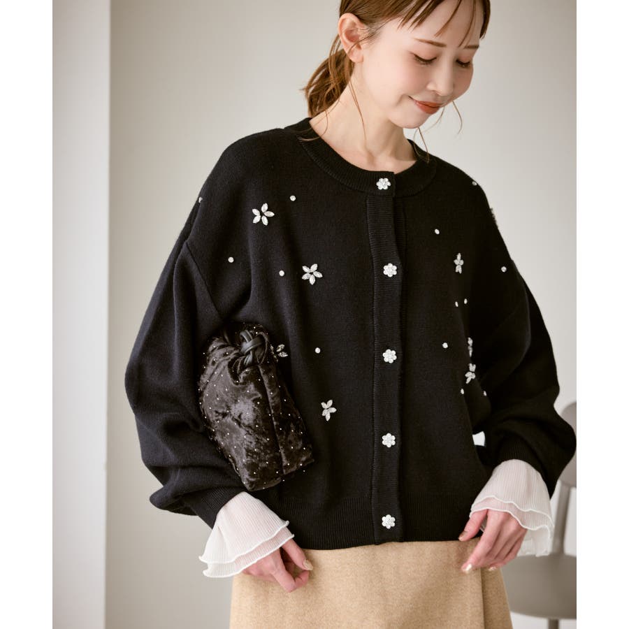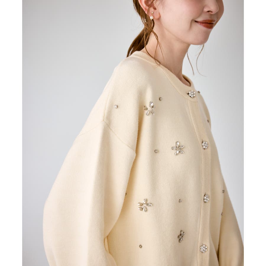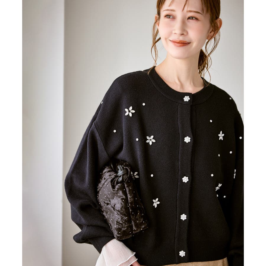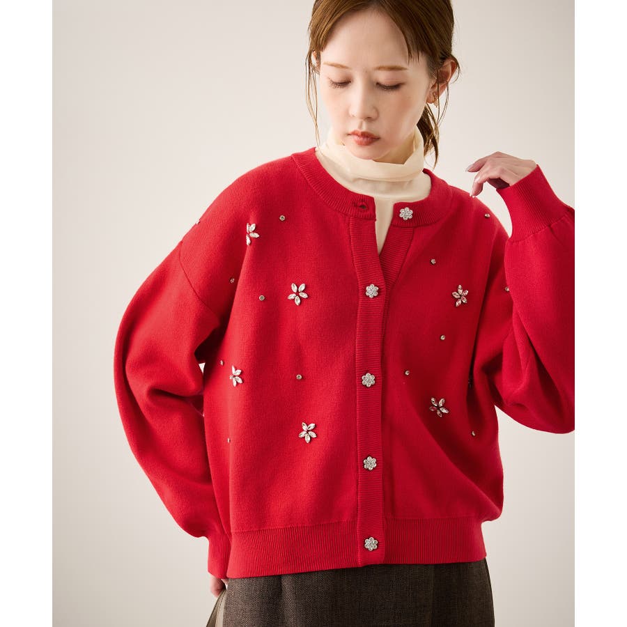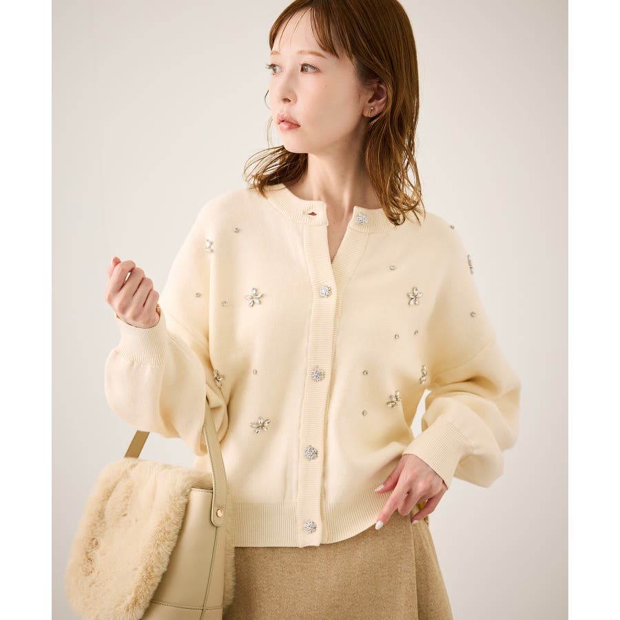 ・ボディ部分にビジューモチーフをつけることにより、とても華やかでホリデイムードなカーディガン。