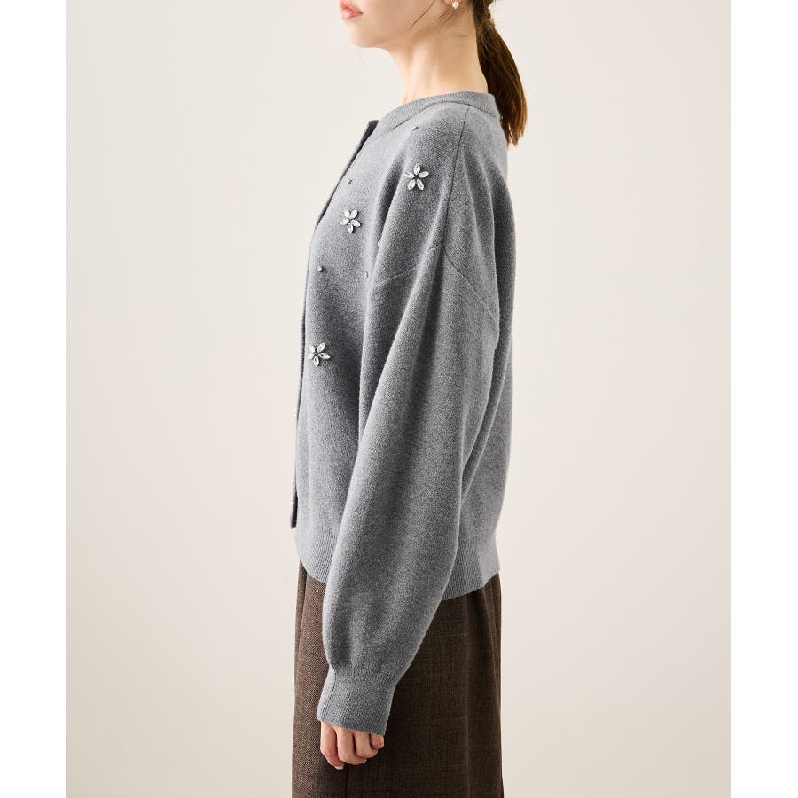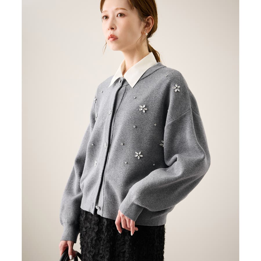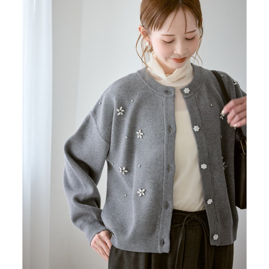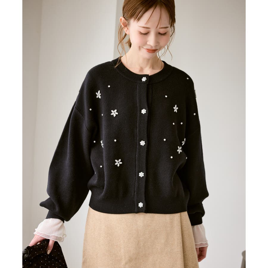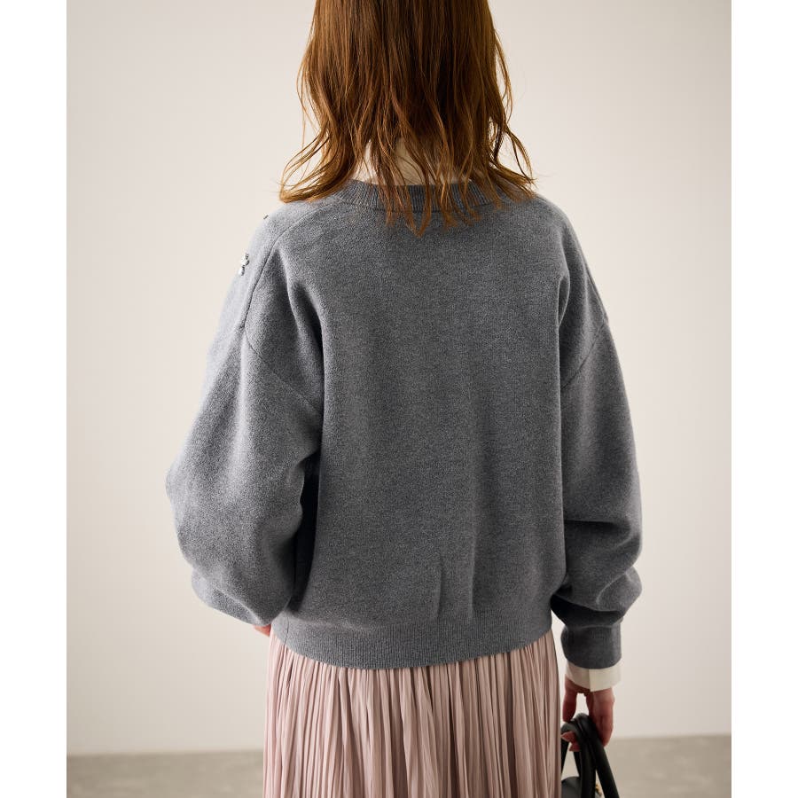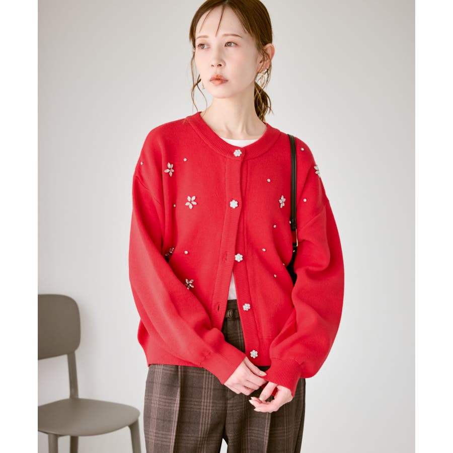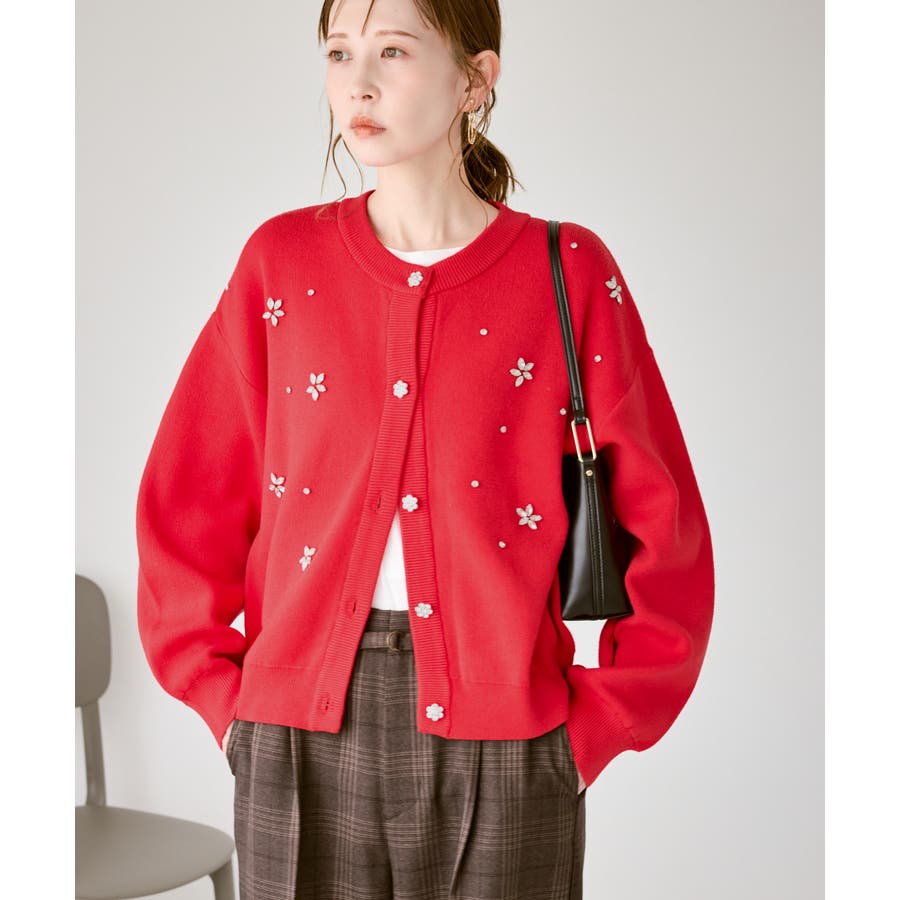 ・ボディ部分にビジューモチーフをつけることにより、とても華やかでホリデイムードなカーディガン。