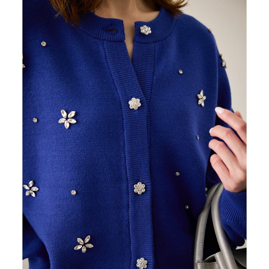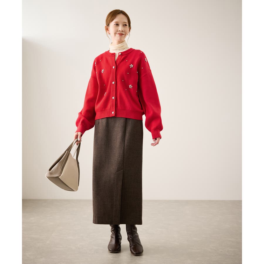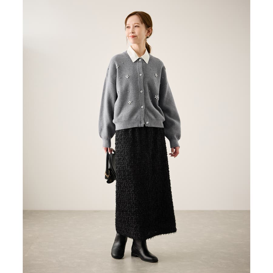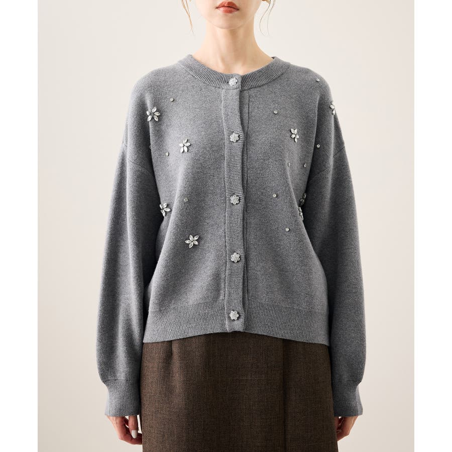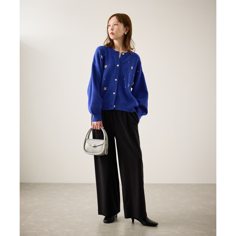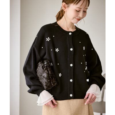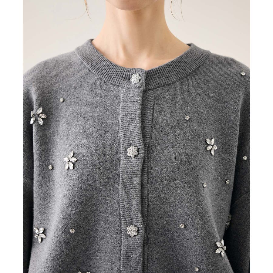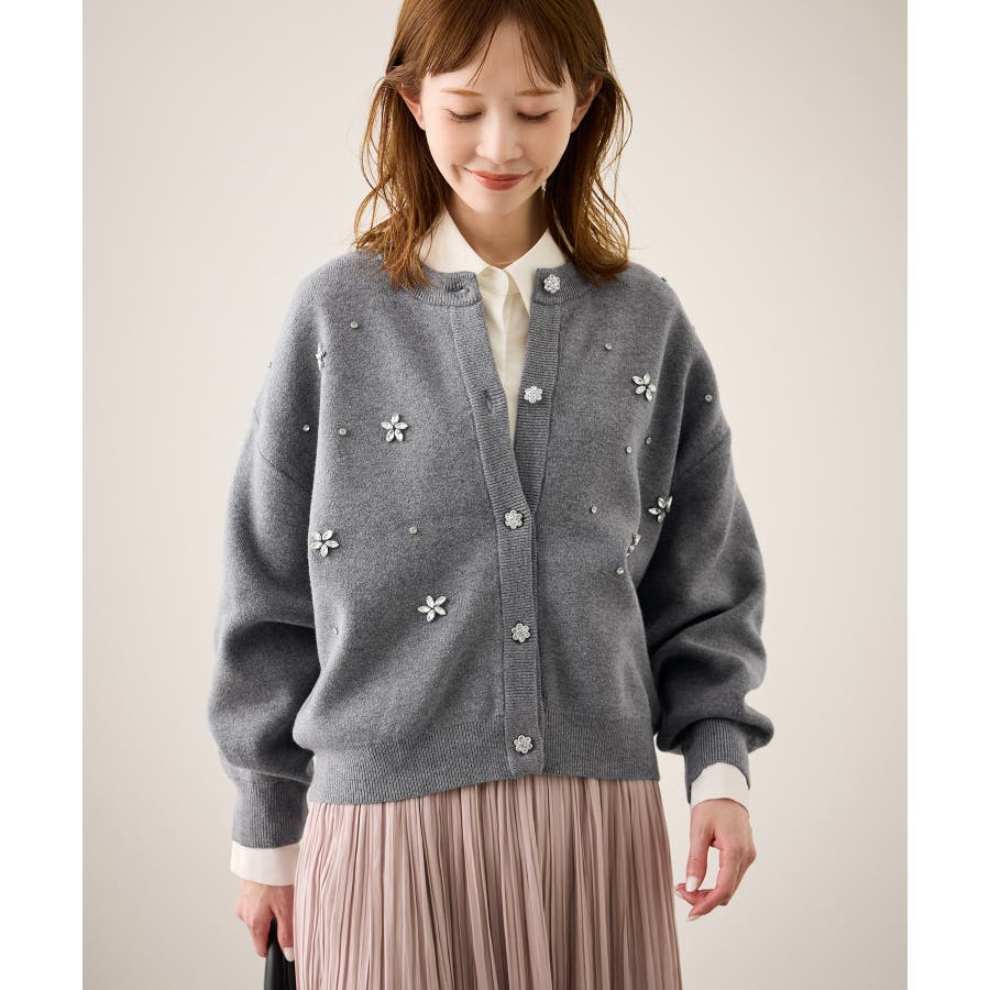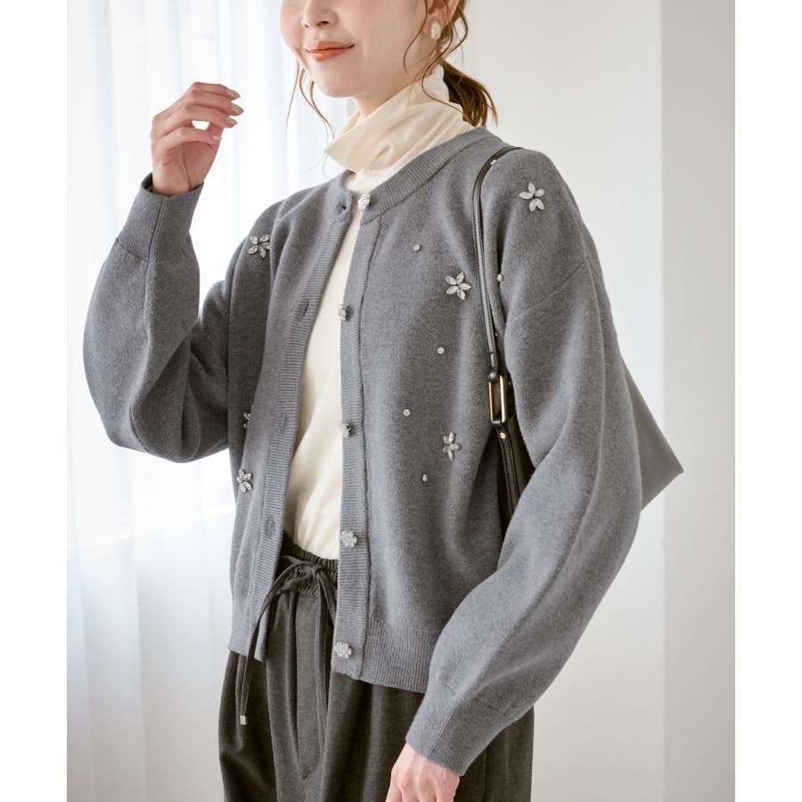 ・ボディ部分にビジューモチーフをつけることにより、とても華やかでホリデイムードなカーディガン。