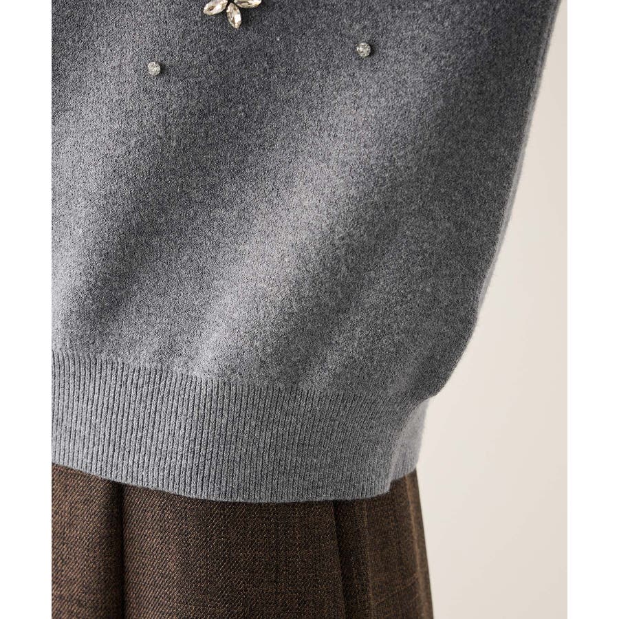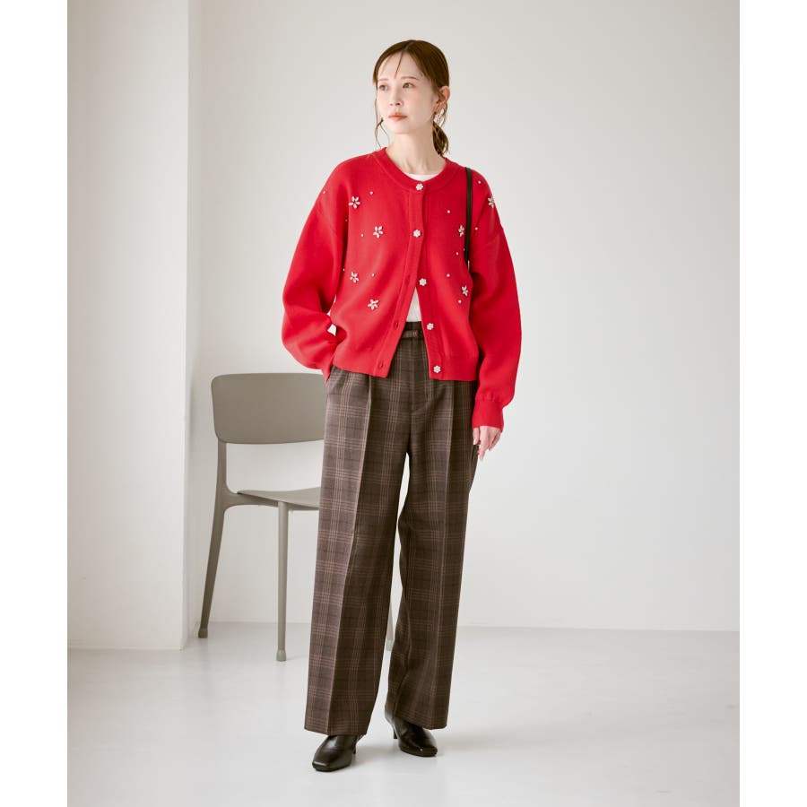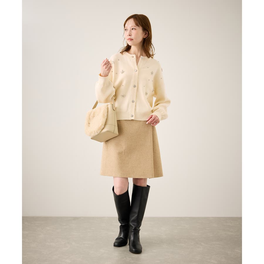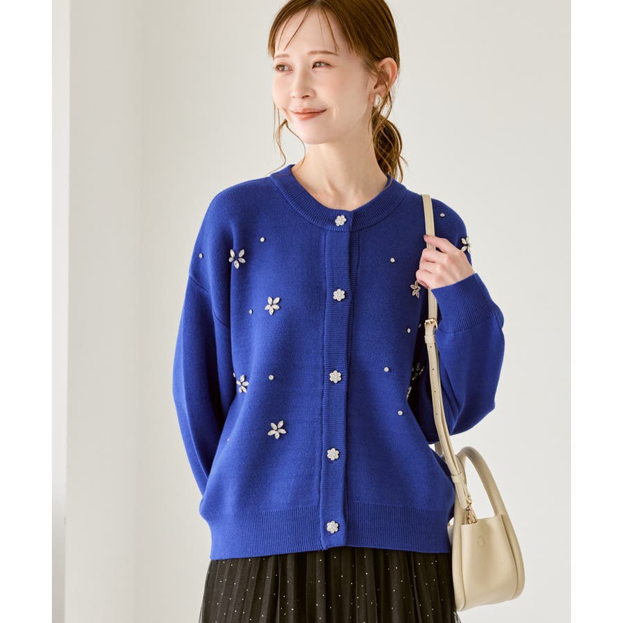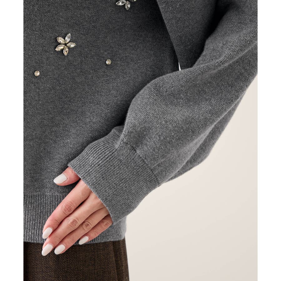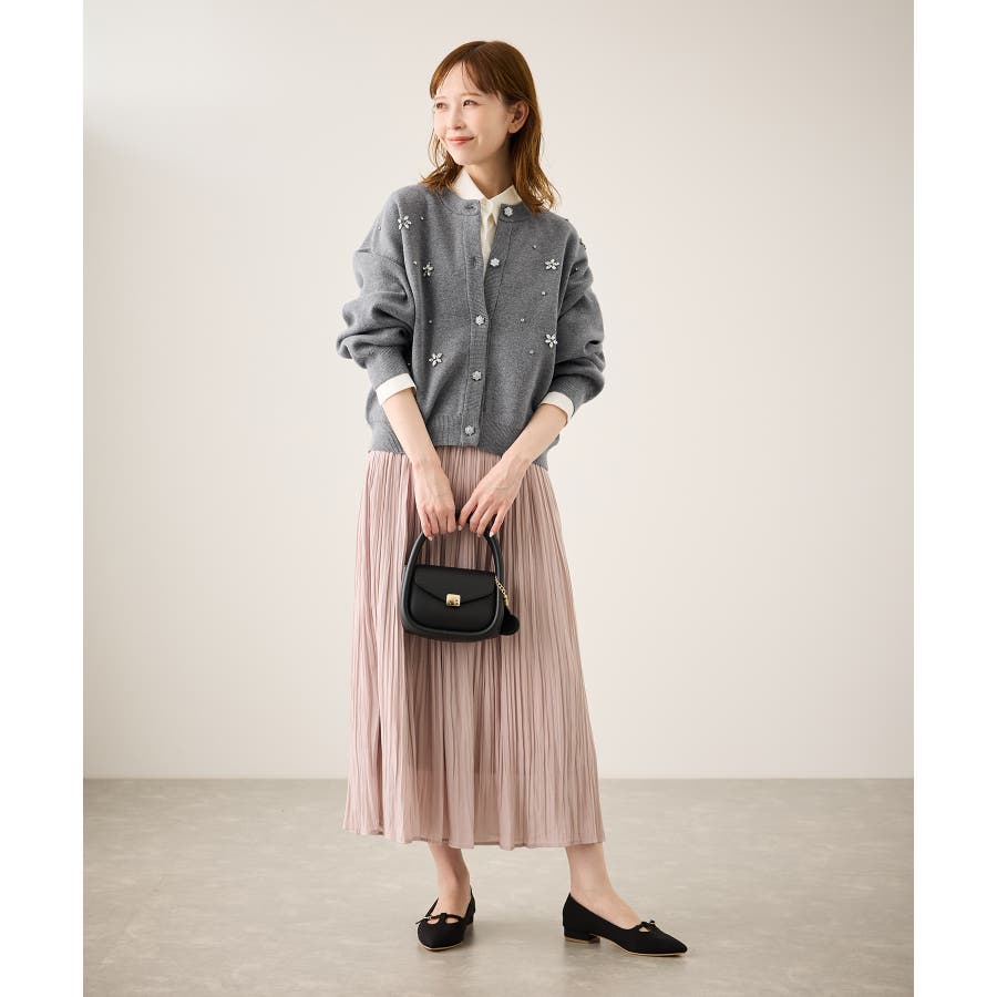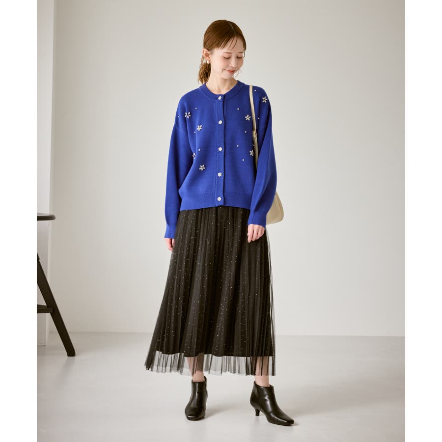 ・ボディ部分にビジューモチーフをつけることにより、とても華やかでホリデイムードなカーディガン。