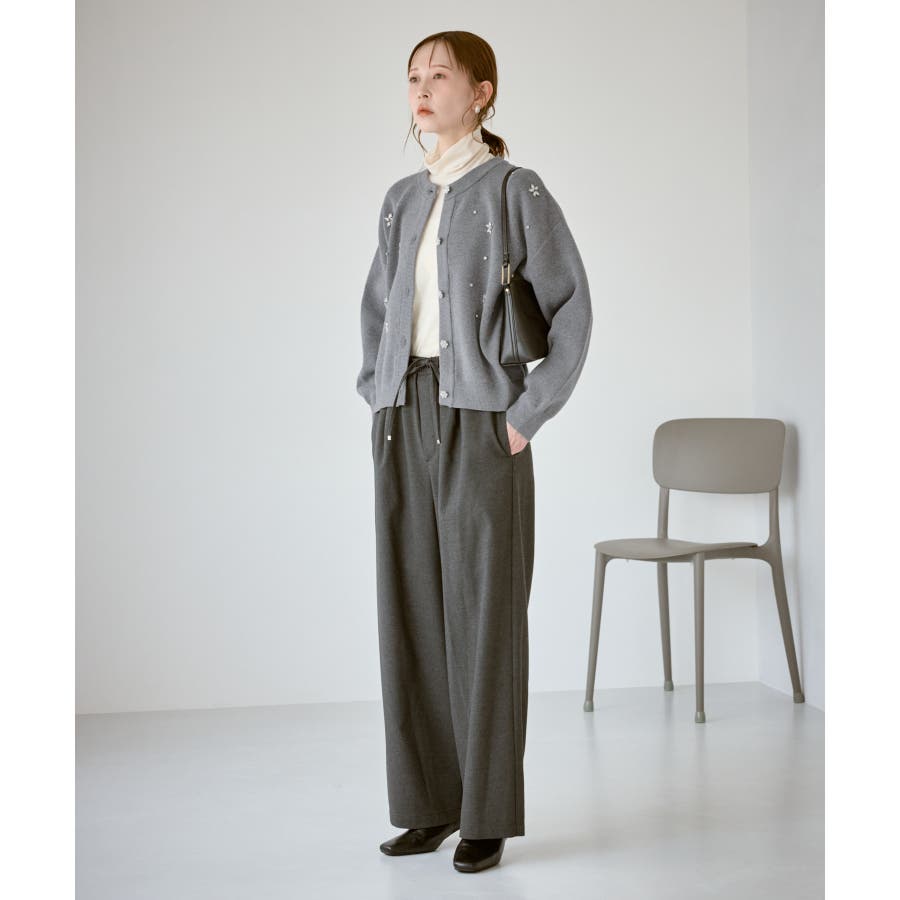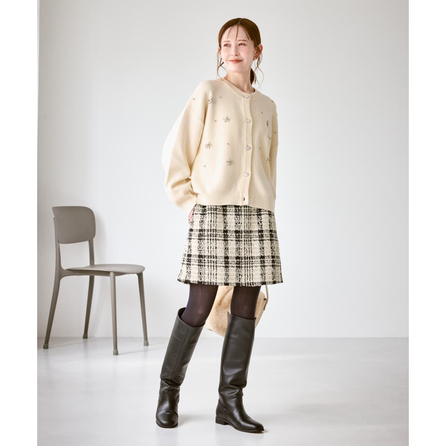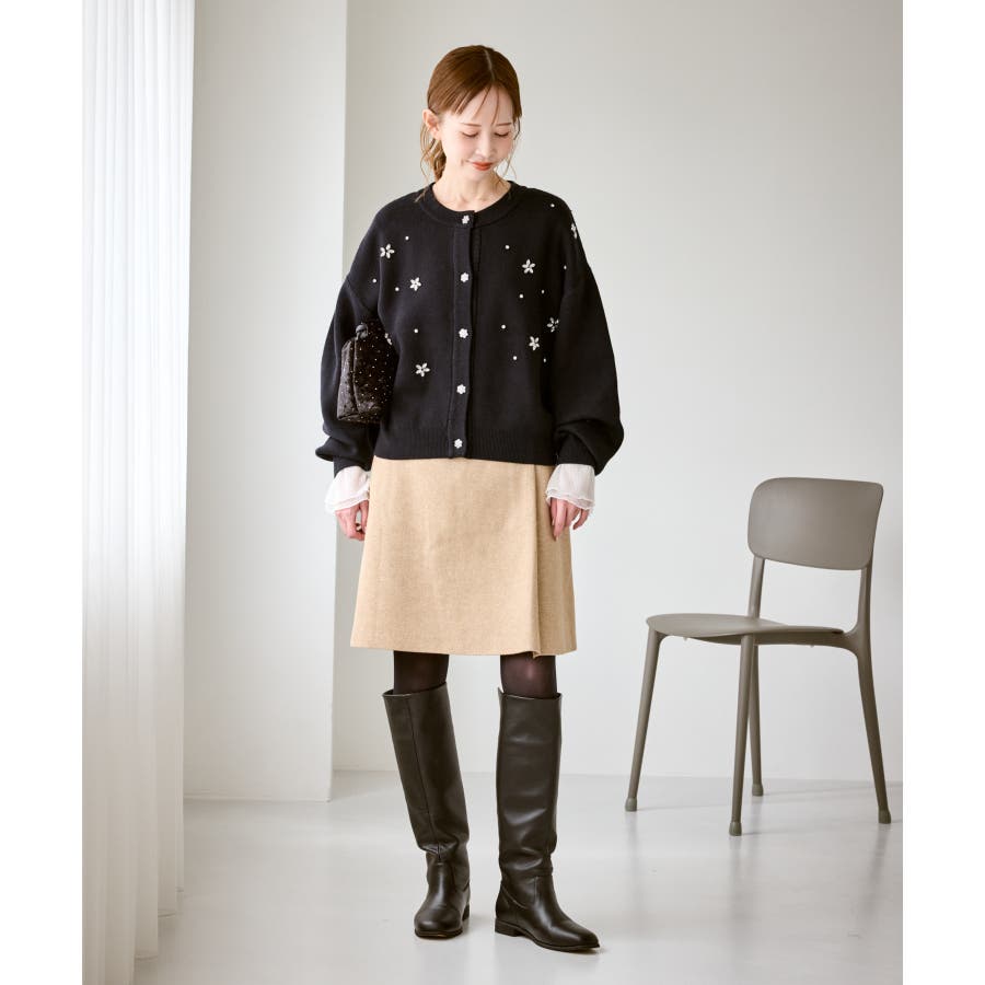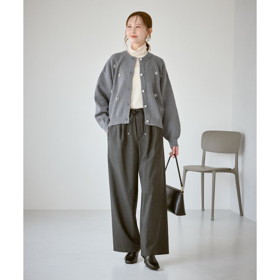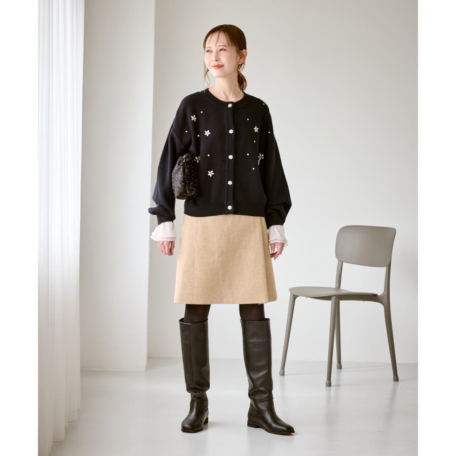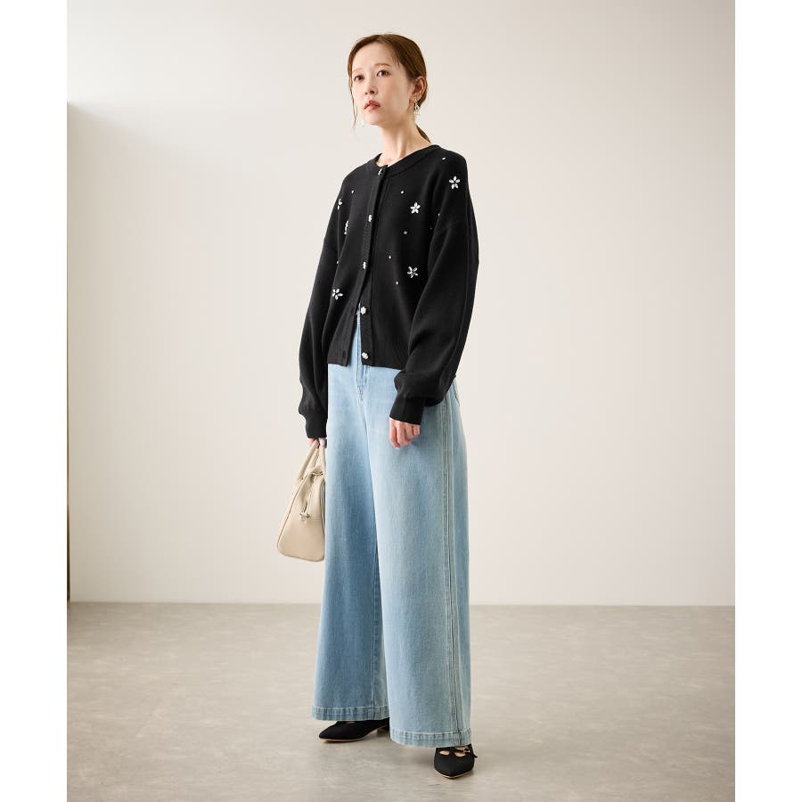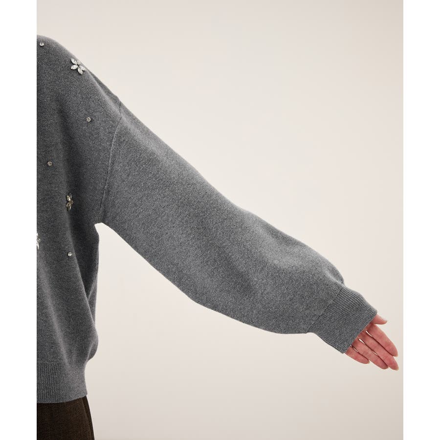 ・ボディ部分にビジューモチーフをつけることにより、とても華やかでホリデイムードなカーディガン。
