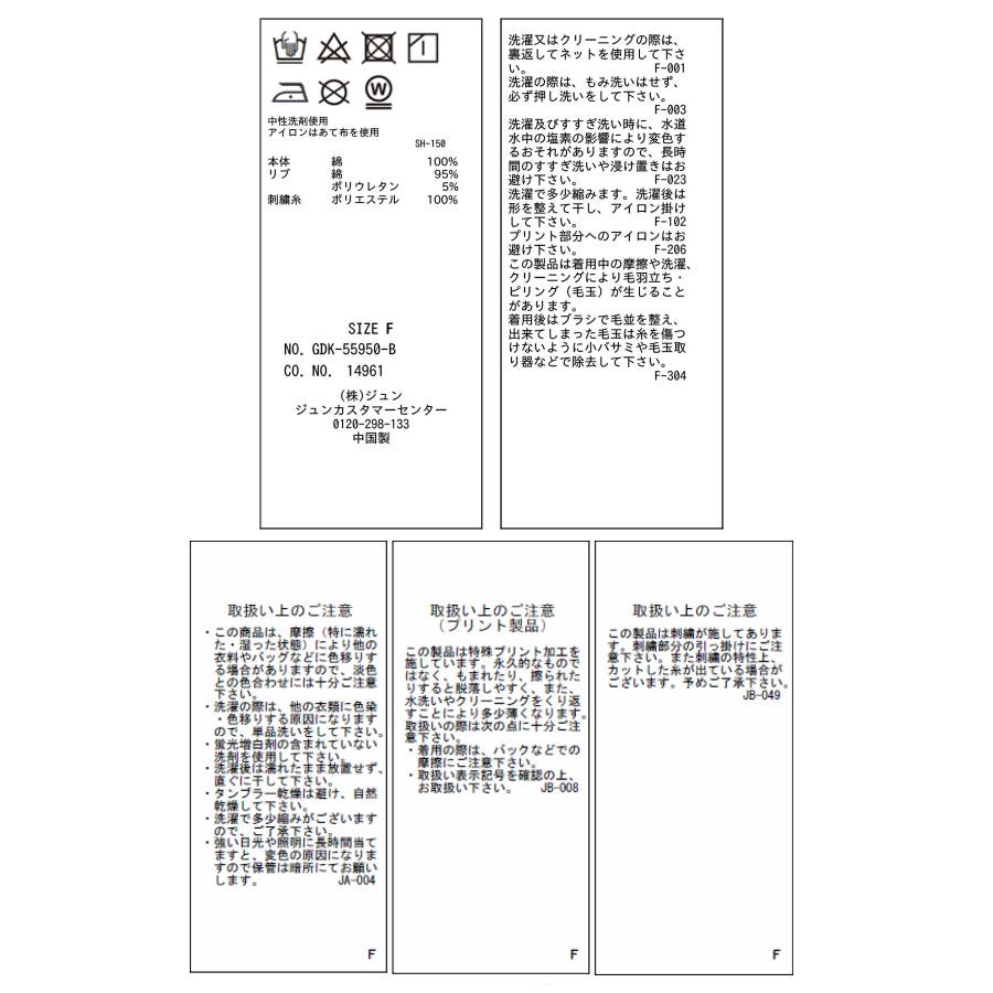 | 素材 | (本体)綿 100% (リブ)綿 95% ポリウレタン 5% (刺繍糸)ポリエステル 100% |