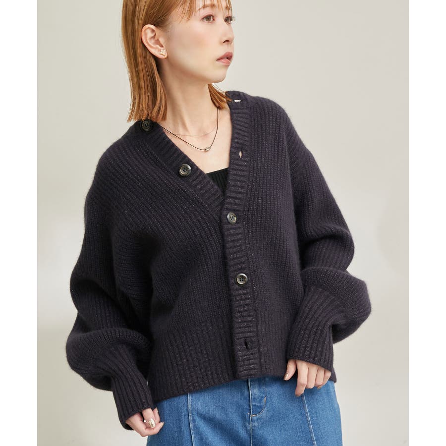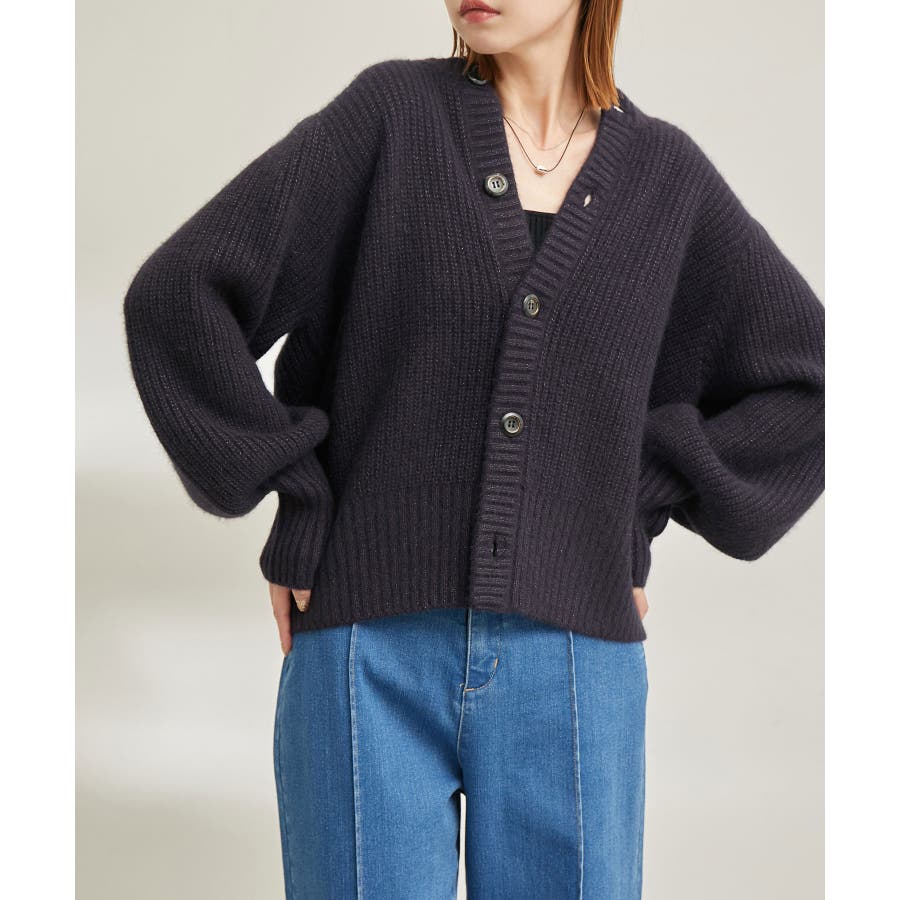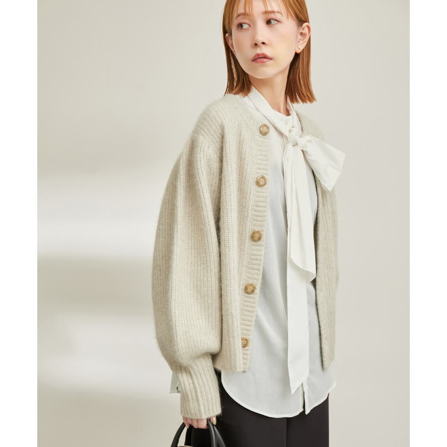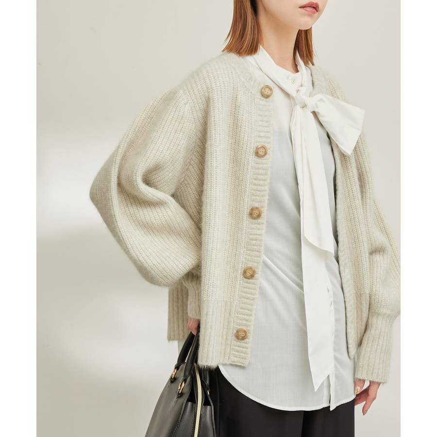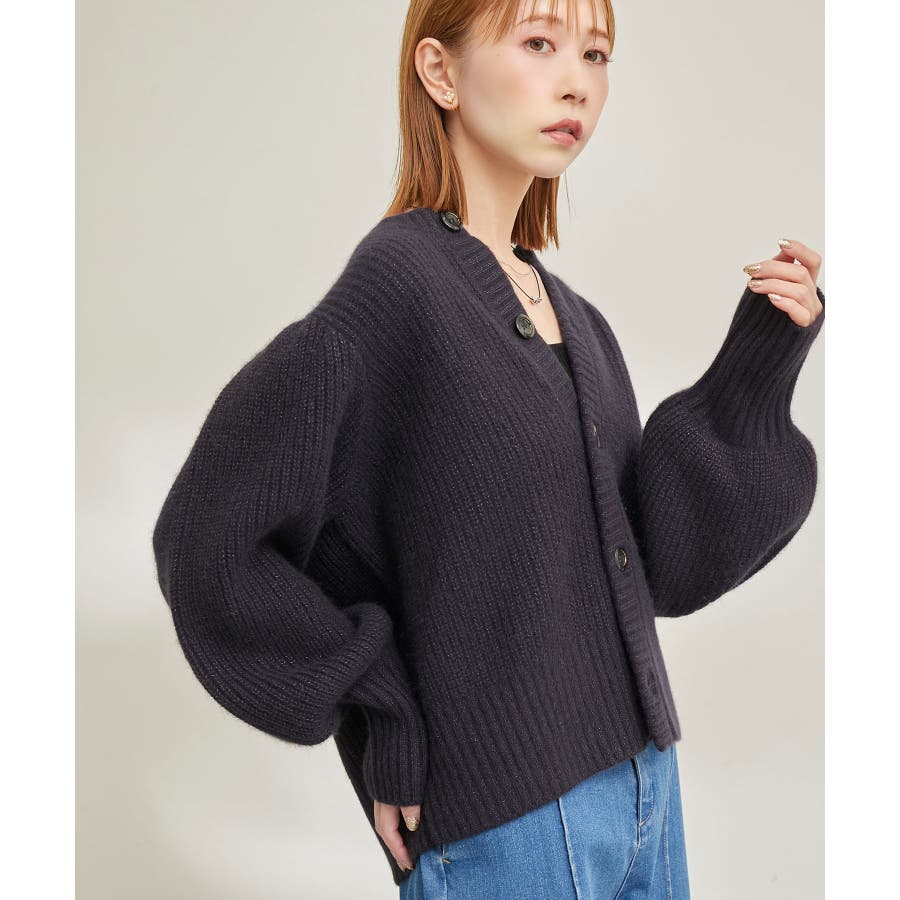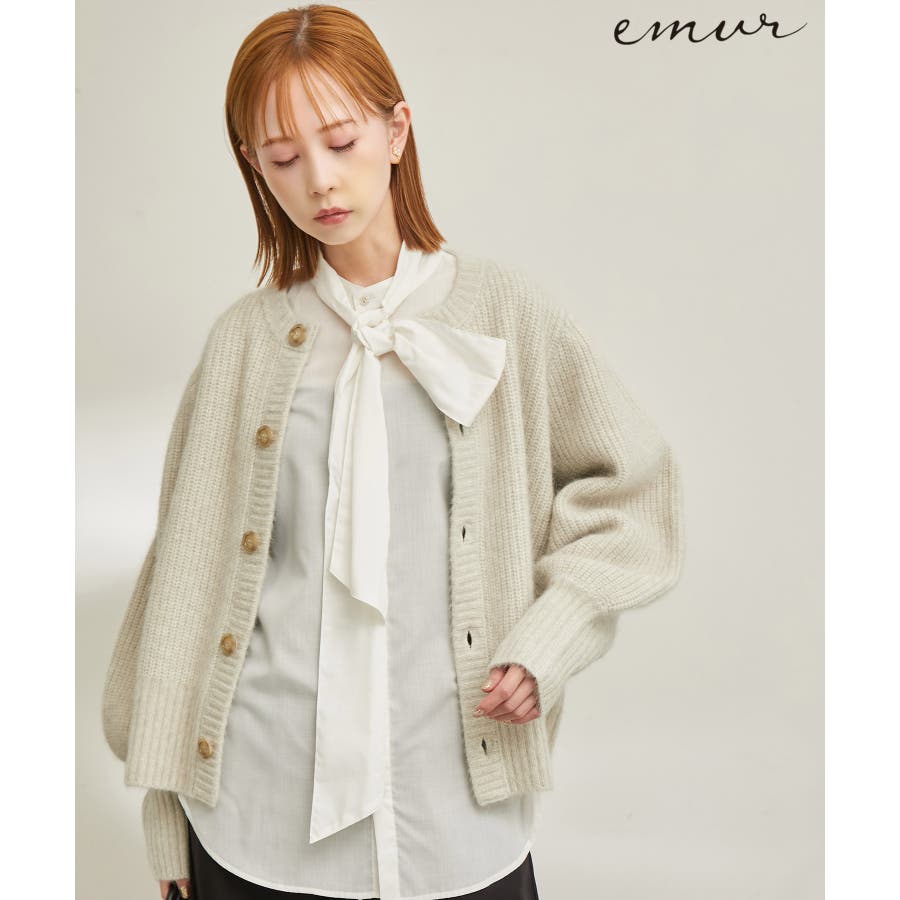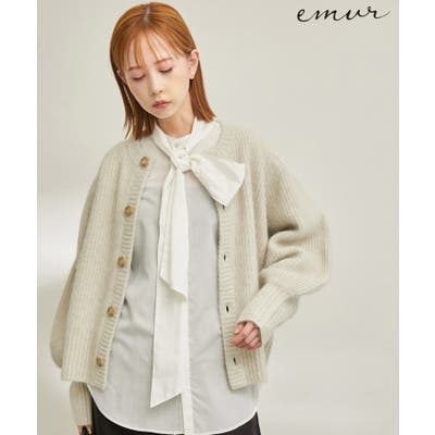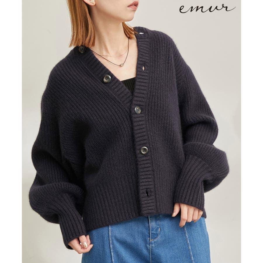 【emur/エミュール】FOX混アゼ編ボリューム袖カーディガン