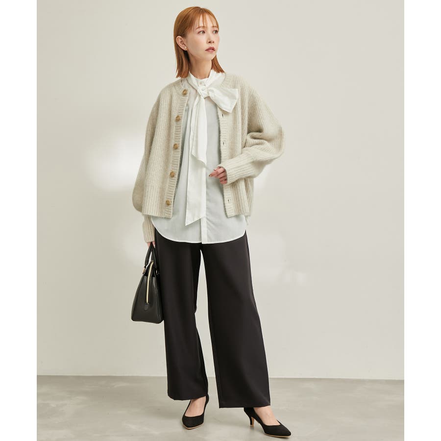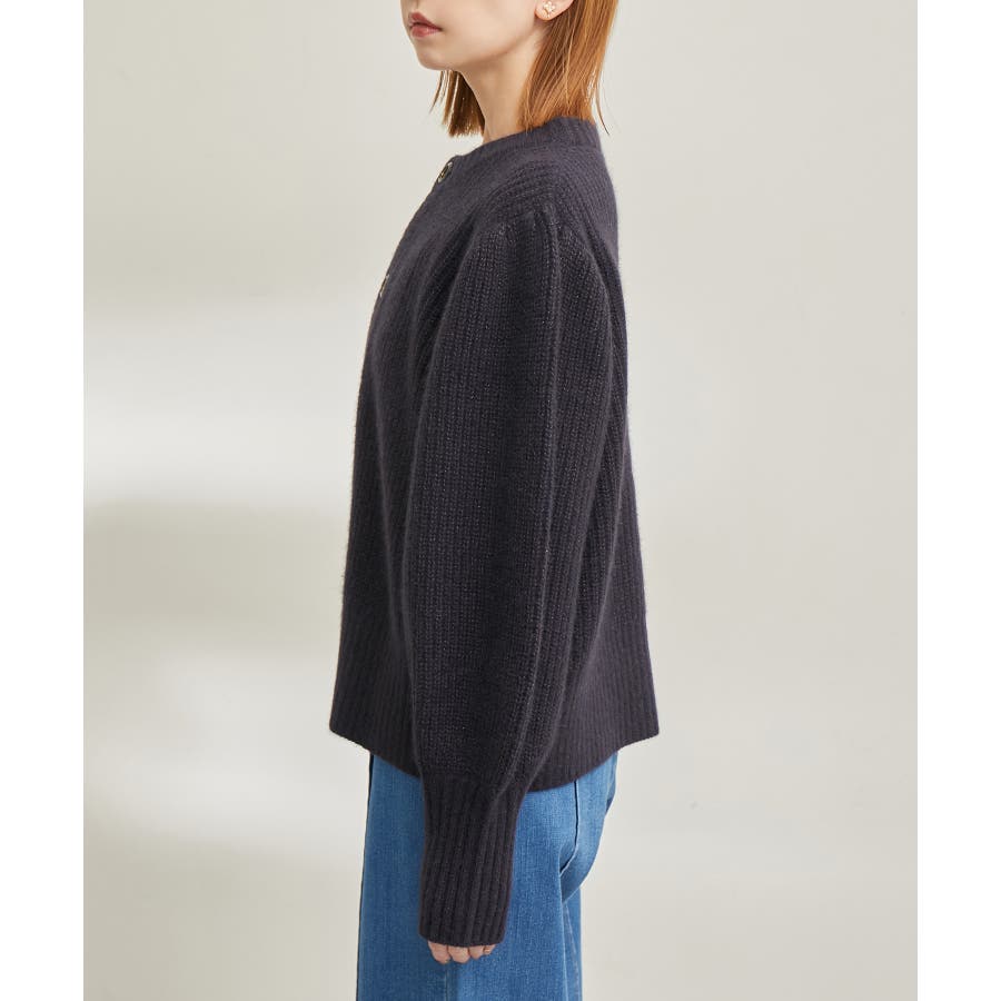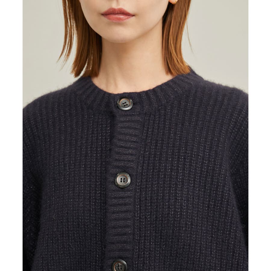 【素材感】 ・FOX混紡で繊細な毛足あり。 ・さりげなく入ったラメ糸が上品なムードのカーディガン。 【デザイン・シルエット】 ・ざっくりとした畦編みのクルーネックカーディガン。 ・ボリュームスリーブがフェミニンな一枚。 ・袖をたくし上げるとふんわりと広がるボリューム袖がポイント。 【カラー】 ・チャコール、ベージュの2色展開。 ・チャコール(06)はネイビーのような色味になります。 【スタイリングポイント】 ・フリルブラウスやボウタイブラウスに羽織ってエレガントなコーデが完成。 ・普段使いならジーンズでラフに着こなして。 ----------------------------- 裏地:なし 透け感:なし 伸縮性:ややあり 生地感・厚さ:厚手 ポケット:なし ボタン:全て開閉可能 季節:秋・冬 ----------------------------- ※撮影時の光、お使いのモニター環境によって色の見え方が違う場合がございます。 ※重量:590g 重量は、サンプルの38サイズでの計測になります。 実際の商品と多少異なる場合がございます。 ※モデル身長:165cm 着用サイズ:38 : 【emur(エミュール)】 ロペピクニックが展開する大人ライン。 目まぐるしい時代を強く艶(あで)やかに生きる、大人の女性のためのタイムレス・リュクスなニュースタンダードウェア。 ファッション経験値のある女性に提案できる上質な品質と素材感のアイテムを、手に入りやすいプレミアムプライスで提供します。 WEBサイト/一部店舗限定になります。