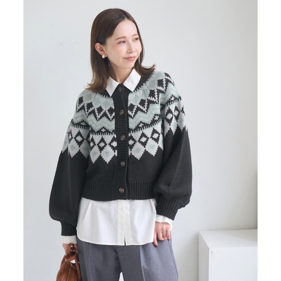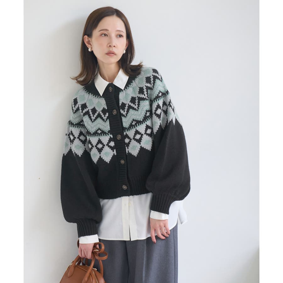 求心柄ボリュームスリーブカーディガン/イージーケア