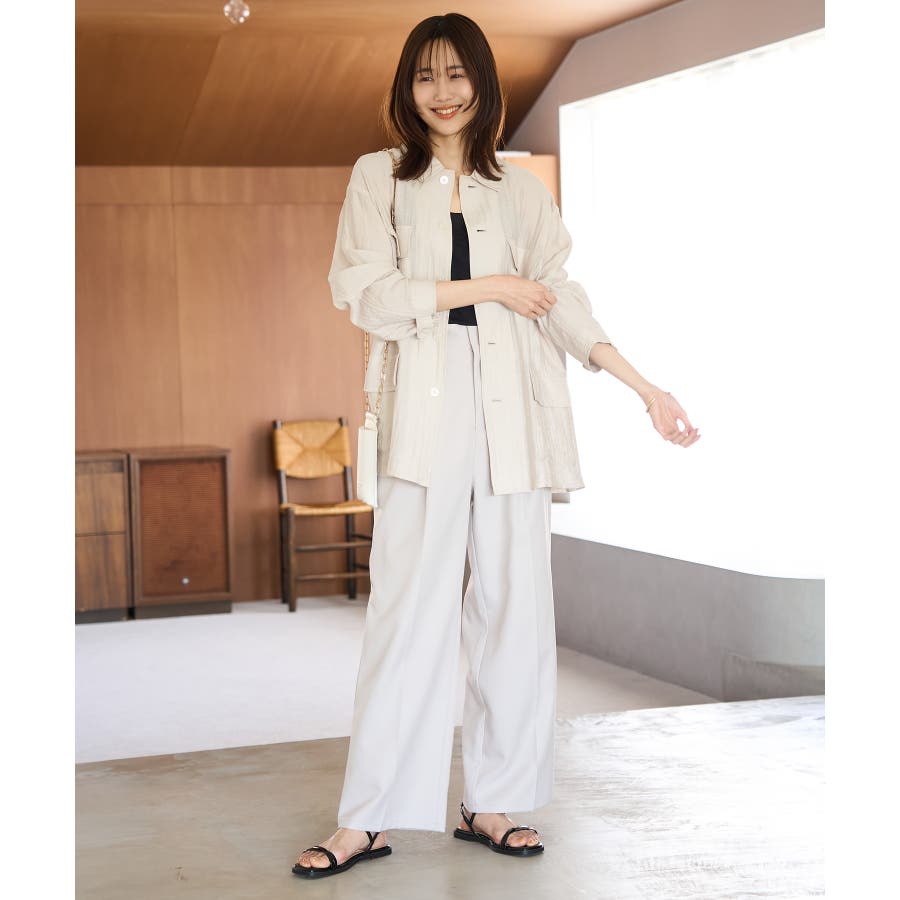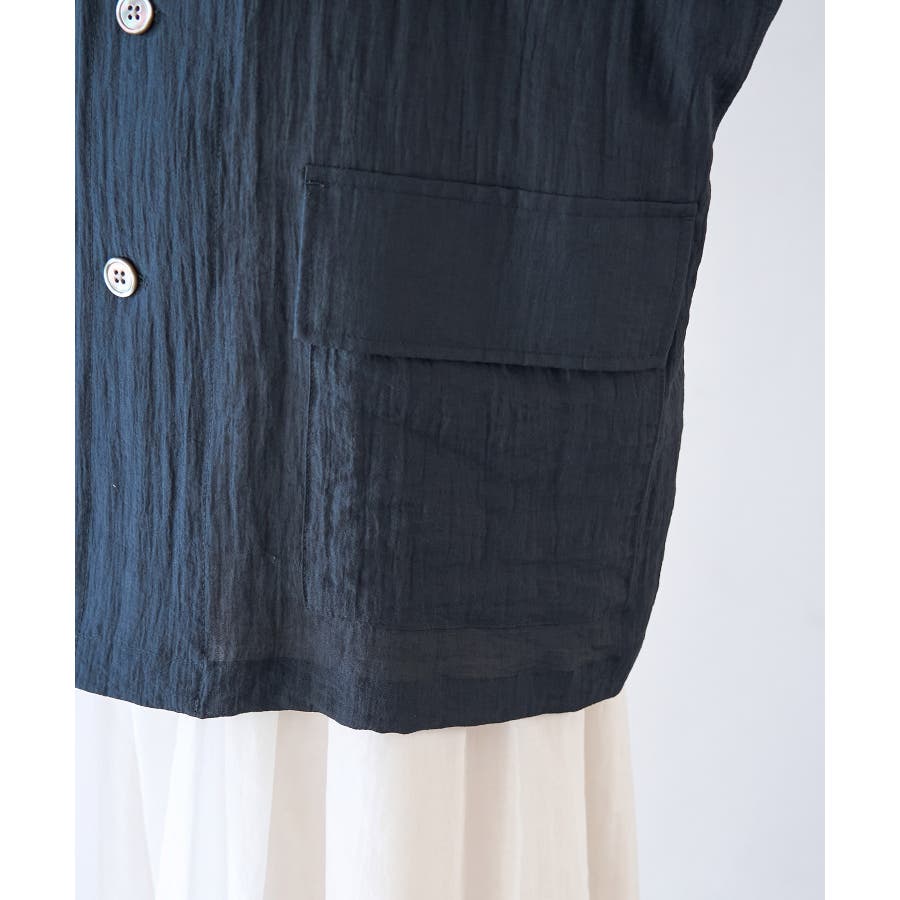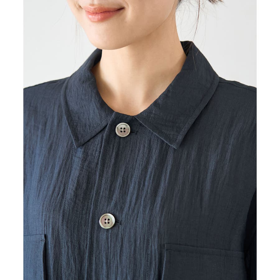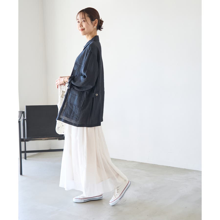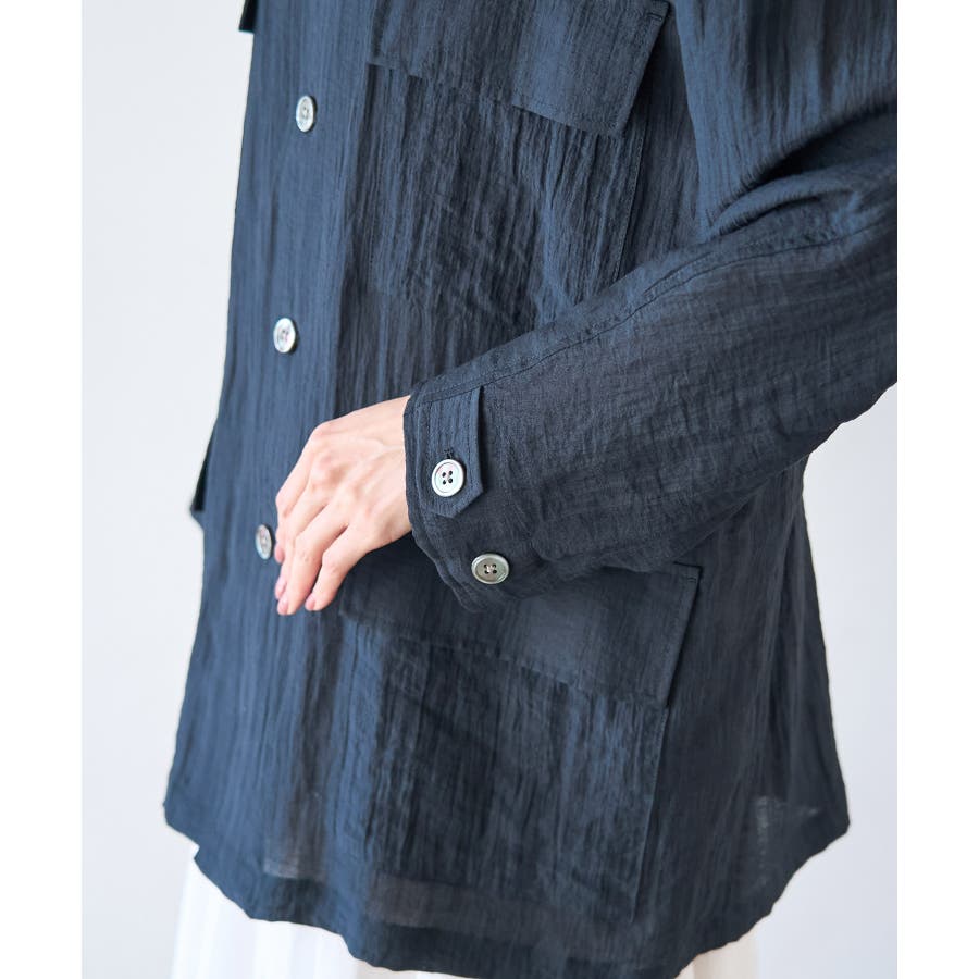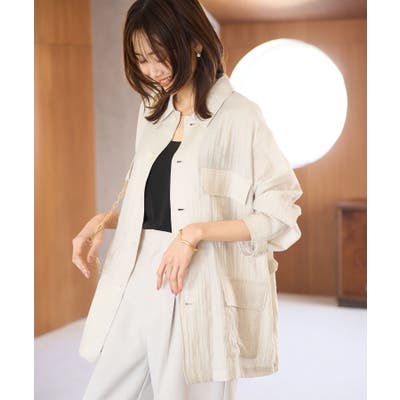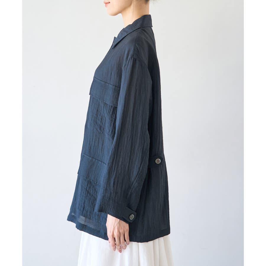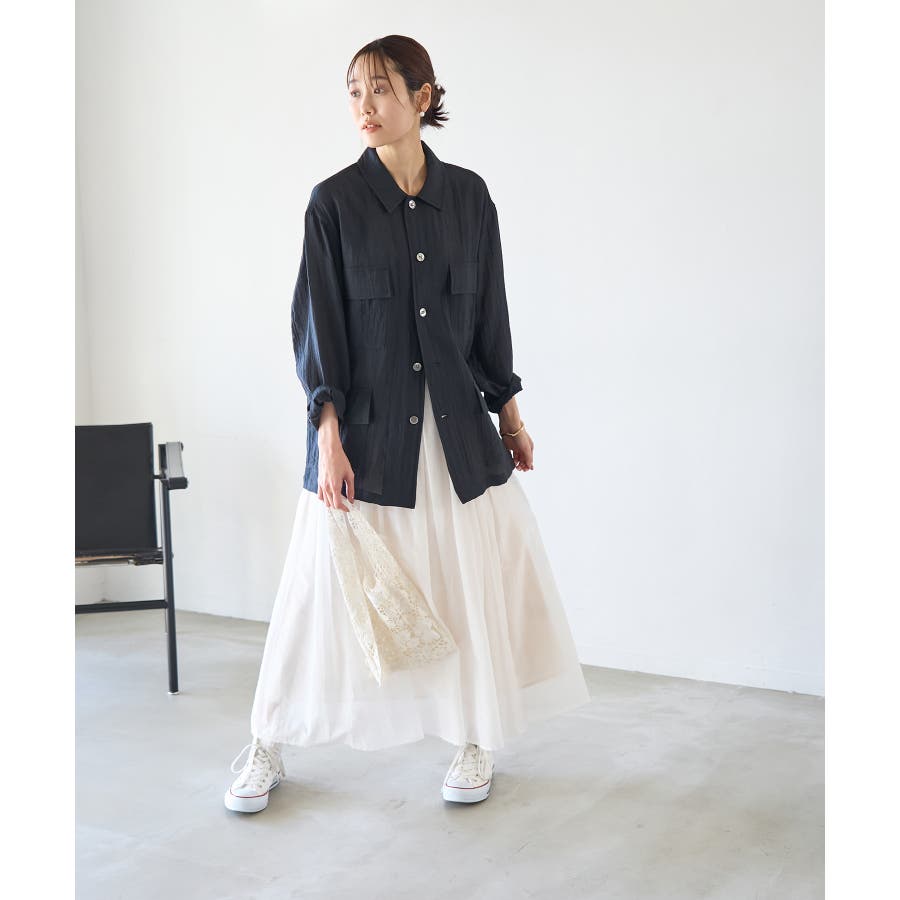 【素材感】 ・ナチュラルな光沢感、シアー感、ワッシャー感が今年っぽいミリタリーデザイン。 【デザイン・シルエット】 ・縦に2つ並んだ、4つのフラップポケットがポイント。 ・ミリタリーエッセンスが手軽に楽しめるライトブルゾン。 ・ウエストと袖口はボタンでアジャスト可能。 ・肩の切り替えを落としたリラックスフォルム。 【カラー】 ・ブラック、オフホワイト、ベージュのベーシックカラー3色展開。 【スタイリングポイント】 ・レースブラウスや、フラワープリントワンピースなど、甘めなウェアに羽織ってもおしゃれ。 ・オフホワイトは、カーキのボトムを合わせるとメリハリが出る。 ----------------------------- 裏地:なし 透け感:オフホワイト(15)、ベージュ(27)はややあり 伸縮性:なし 生地感・厚さ:やや薄手 ポケット:あり 季節:春・秋 ----------------------------- ※撮影時の光、お使いのモニター環境によって色の見え方が違う場合がございます。 ※モデル身長:165cm 着用サイズ:38
