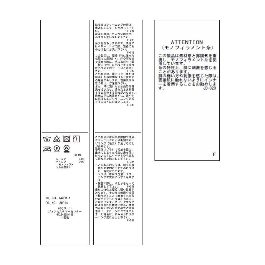 | 素材 | ブラック(01):レーヨン 74% ナイロン 26%|オフホワイト(15):レーヨン 74% ナイロン 26%|ベージュ(27):レーヨン 74% ナイロン 26% |