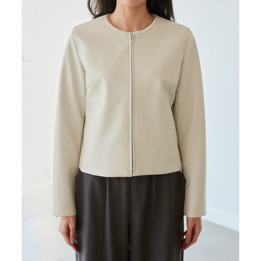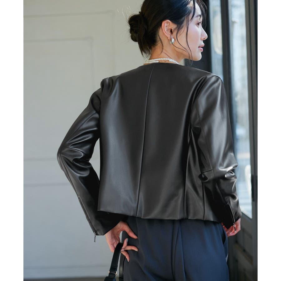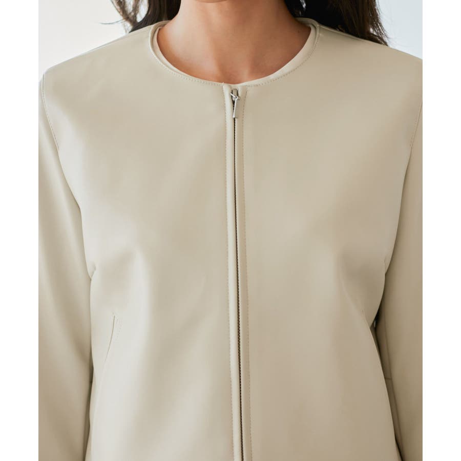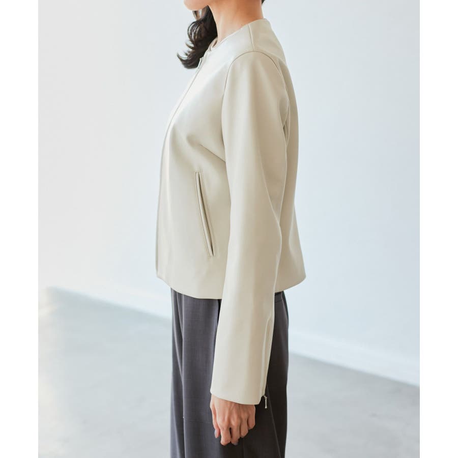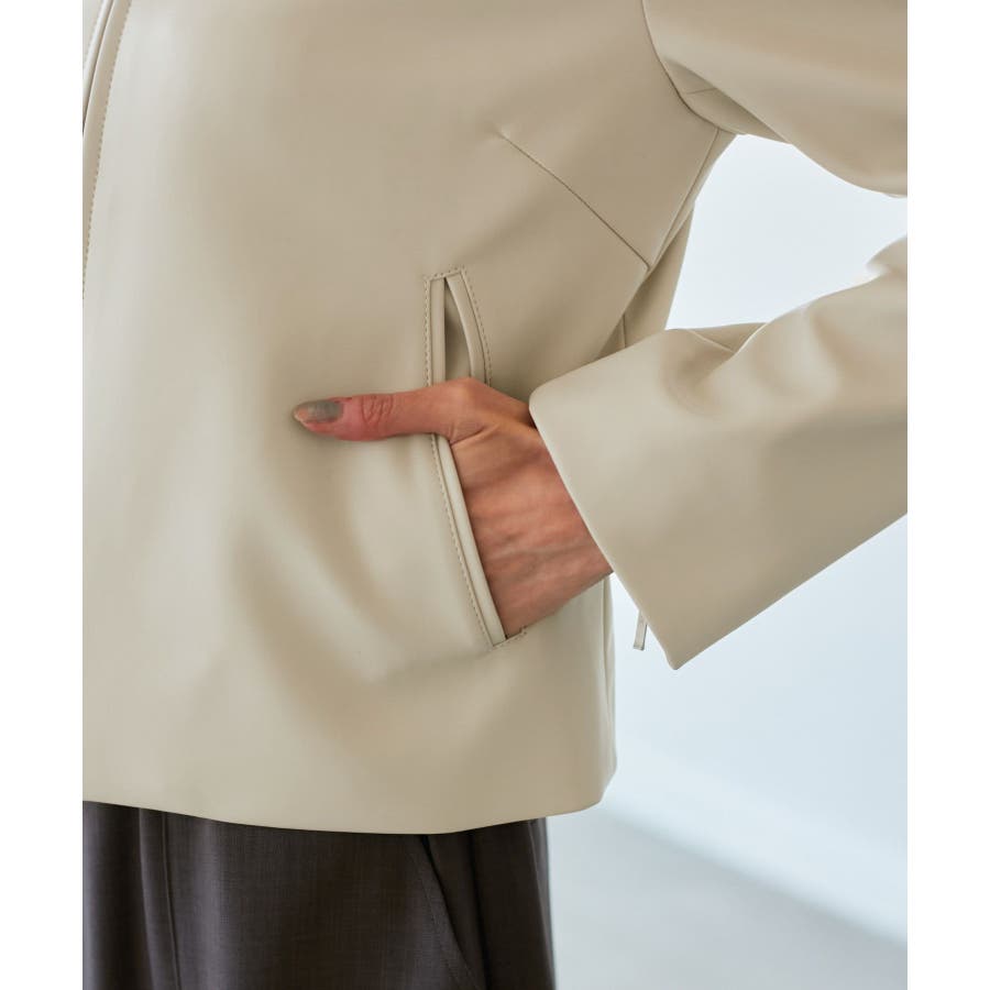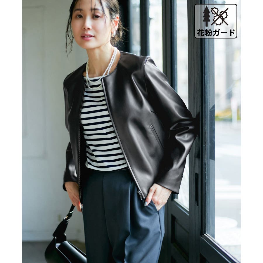 【花粉ガード】シンセティックレザーノーカラージャケット