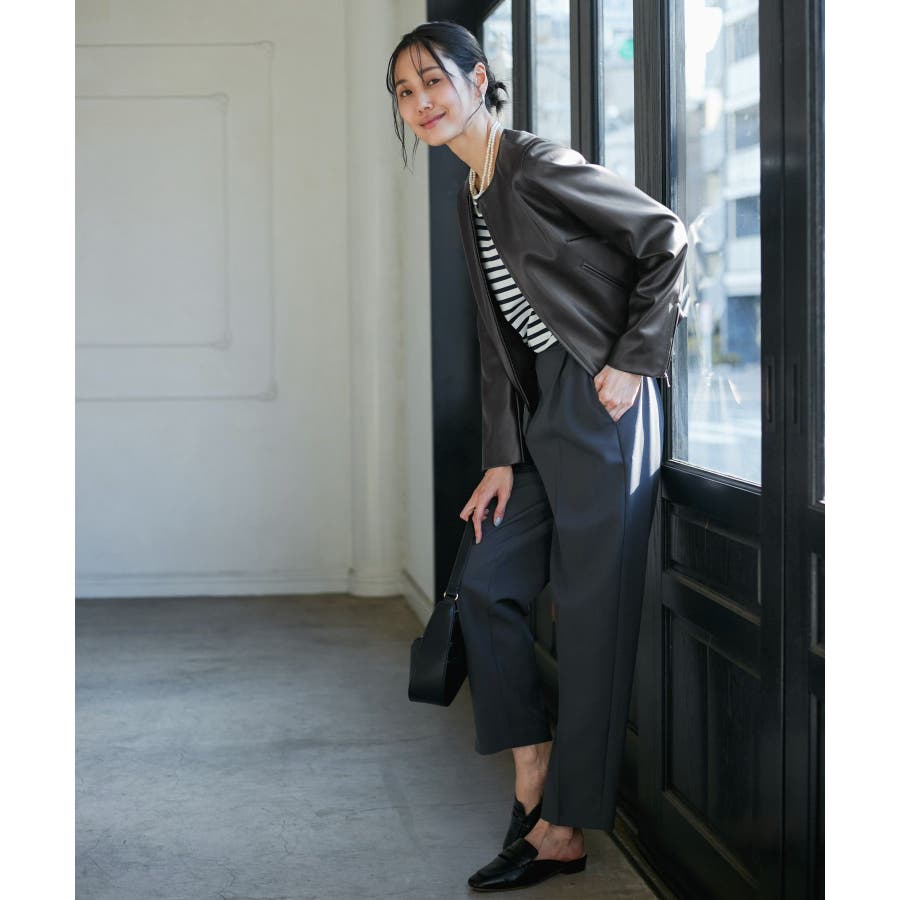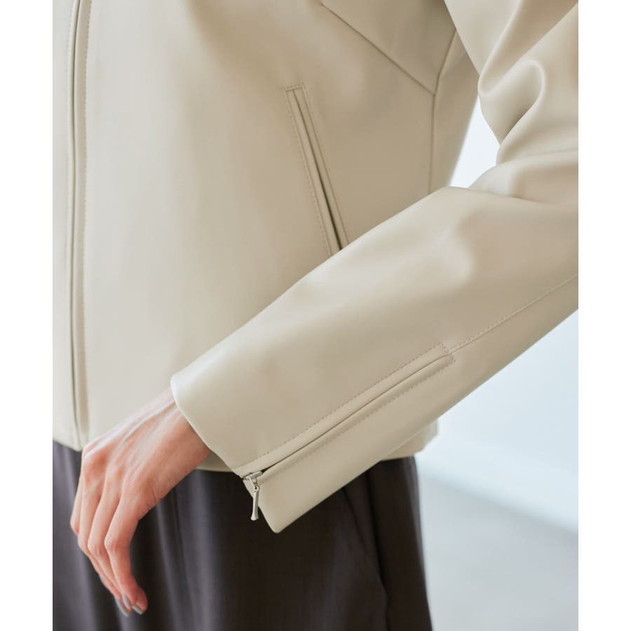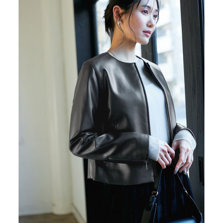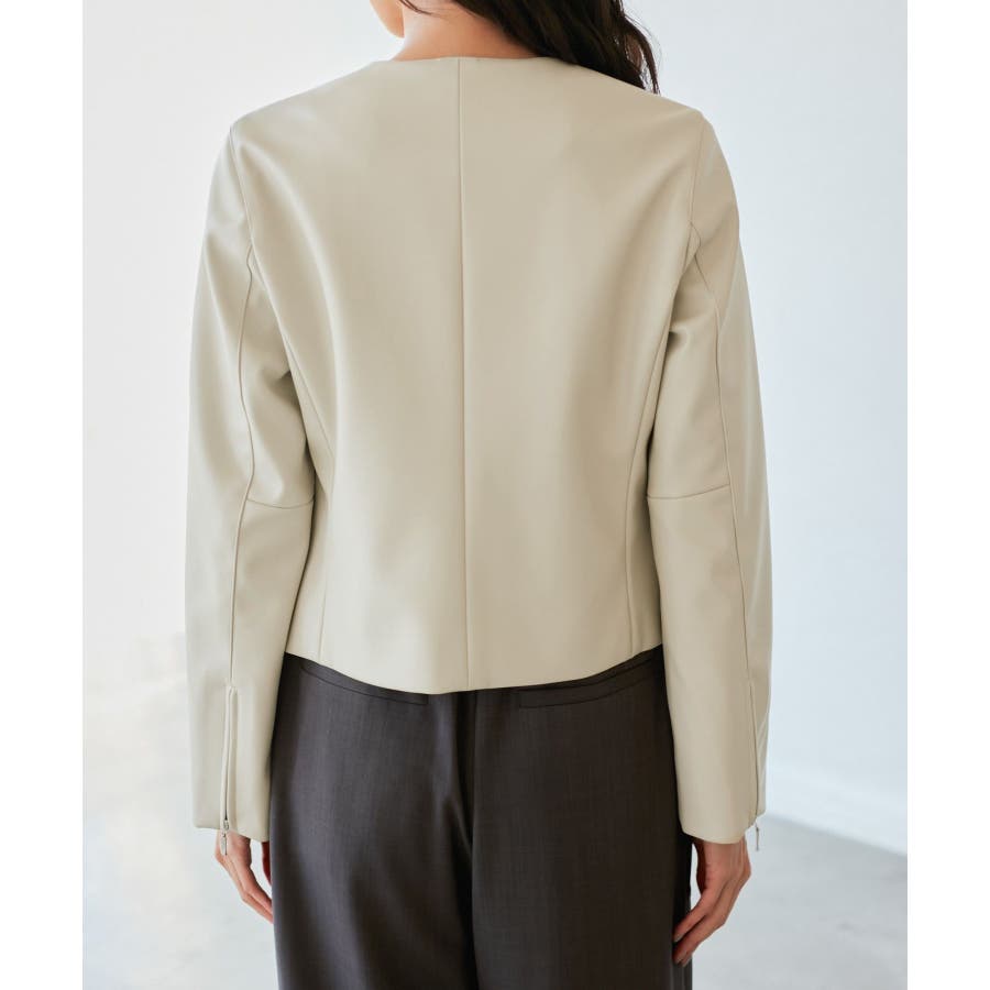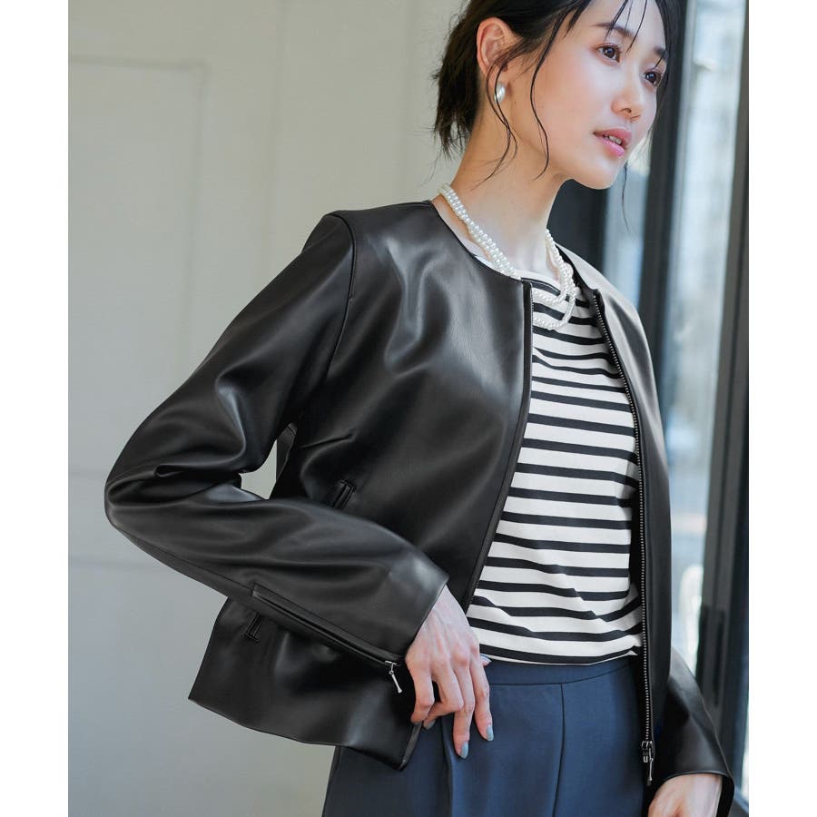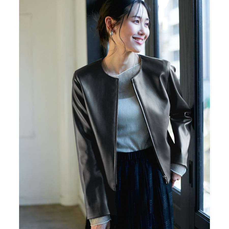 【花粉ガード】シンセティックレザーノーカラージャケット