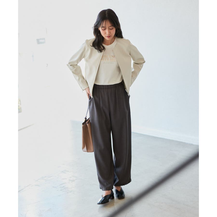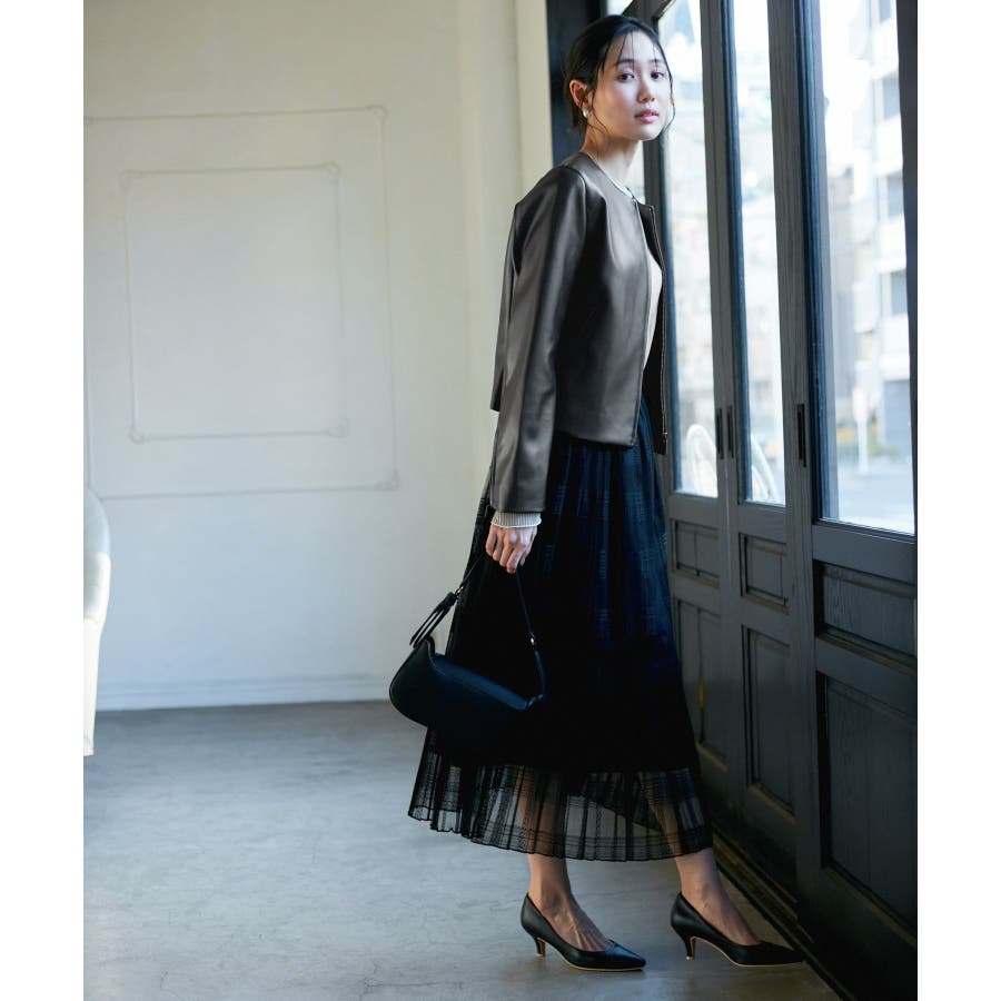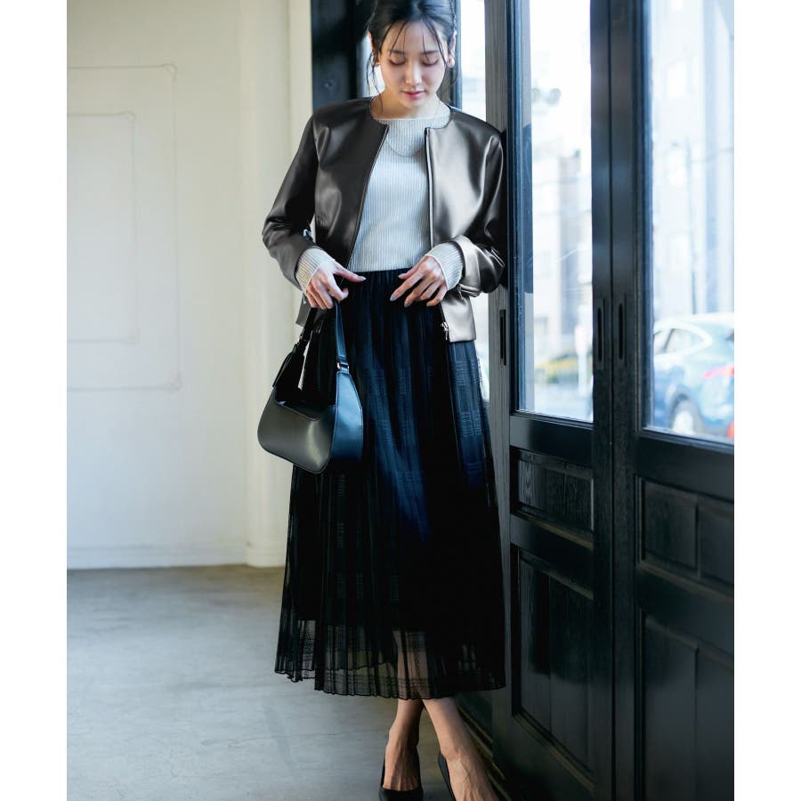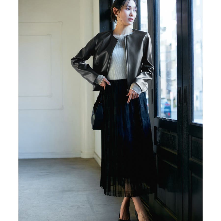 【素材感】 ・本革のようなナチュラルなツヤ感と柔らかな風合いの素材。 ・表地裏側は再生ポリエステルを使用。 ・花粉が付着しにくく、落としやすい。 【デザイン・シルエット】 ・シンプルで汎用性の高いノーカラーデザイン。 ・身頃は切り替えで、余りのでないすっきりシルエットに。 ・袖先はファスナー開閉でアレンジ可能。 【カラー】 ・ブラック、ベージュのベーシックカラー3色展開。 【スタイリングポイント】 ・寒い春先にはタートルネックニットを重ねて。 ・きれいめスカートに合わせると、お出かけや通勤にも活躍。 ・プリントスカーフを首もとに巻くとおしゃれ感がアップ。 ----------------------------- 裏地:あり 透け感:なし 伸縮性:なし 生地感・厚さ:やや厚手 ポケット:あり その他仕様:,袖口ファスナー 季節:春・秋 ----------------------------- ※撮影時の光、お使いのモニター環境によって色の見え方が違う場合がございます。 ※前回好評だったノーカラージャケット(品番:GDL54050)と同型ですが、花粉ガード素材に変更しています。 ※モデル身長:165cm 着用サイズ:38
