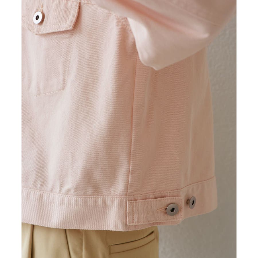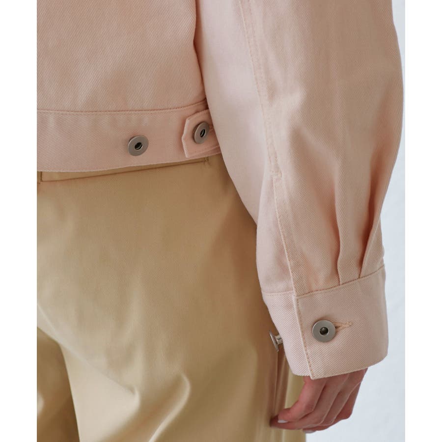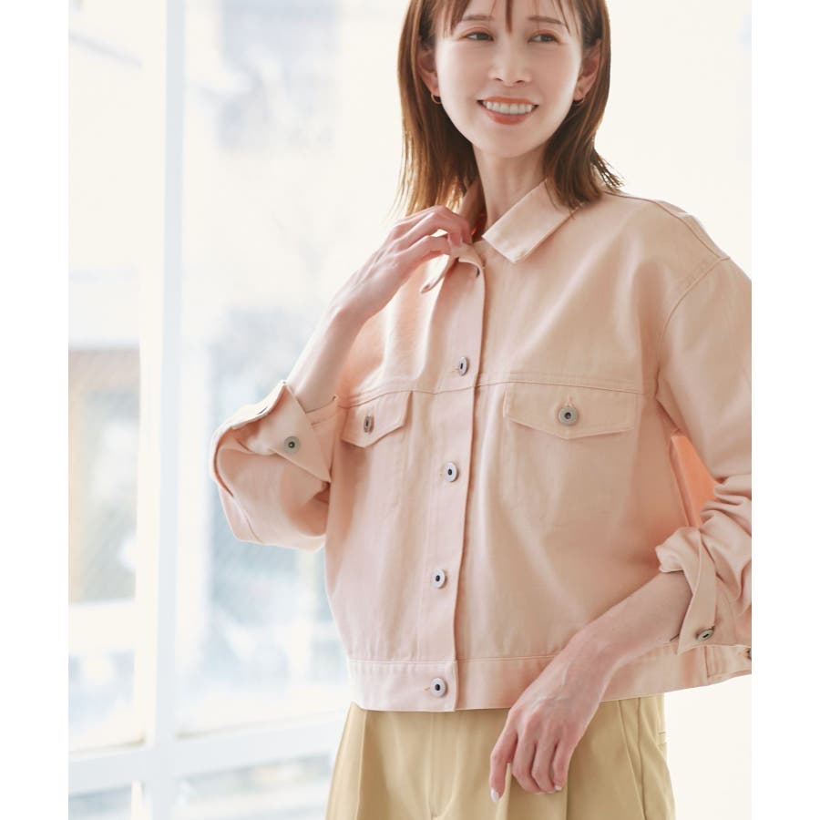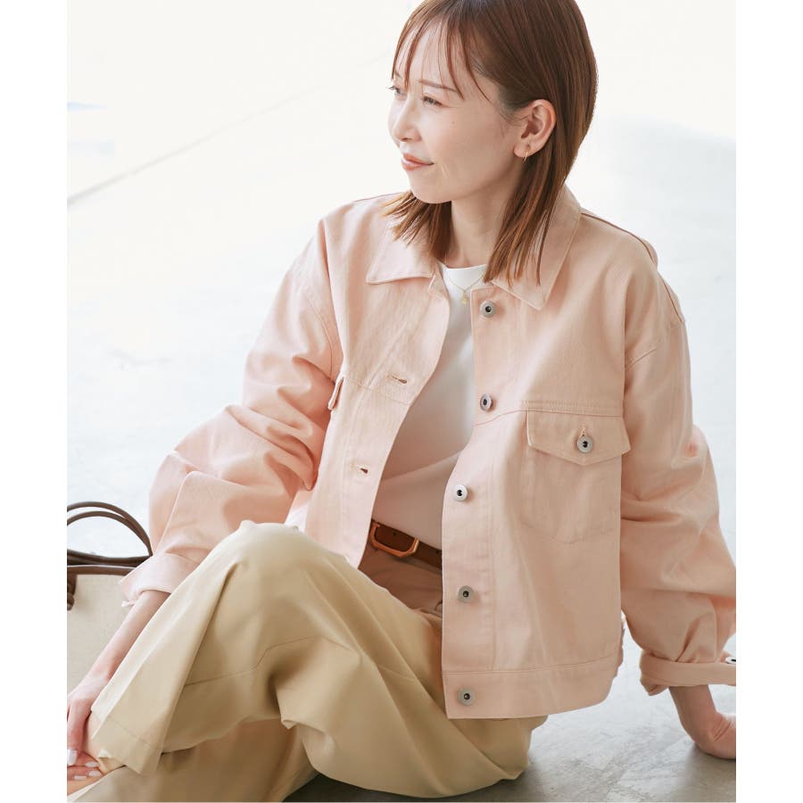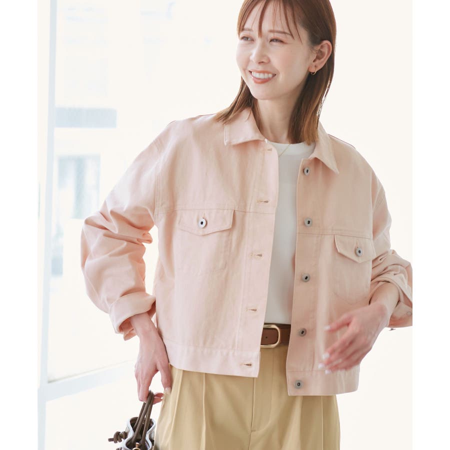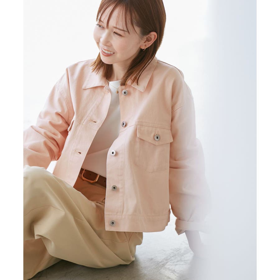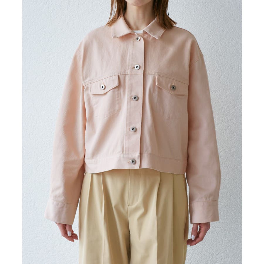 【素材感】 ・柔らかい素材感のカツラギを使用。 ・硬すぎることなく、フェミニンスタイルにも使えるように生地選びにもこだわりを。 【デザイン・シルエット】 ・スウィートで春らしいピンク色のデニムジャケット。 ・モダンなスタイルに導くリラックスフォルム。 ・袖口にはタックボタンを2つ付けているので袖口の太さを調整可能。 ・後ろ身頃もタックボタンを2つ付けているので裾幅の調整も可能。 ・ボックスシルエットと、少し丸みのあるシルエットでスタイリングに合わせてアレンジが楽しめる。 【カラー】 ・ピンクのみの展開。 ・同型でブルー系(品番:GDL15060)も展開。 【スタイリングポイント】 ・カーキ系の色と相性が良く、カジュアルなカーゴパンツやベイカーパンツなどを合わせると◎。 ・シンプルなタンクトップに羽織ると女性らしい着こなしに。 ----------------------------- 裏地:なし 透け感:なし 伸縮性:なし 生地感・厚さ:普通 ポケット:あり 季節:春・秋 ----------------------------- ※撮影時の光、お使いのモニター環境によって色の見え方が違う場合がございます。 ※モデル身長:165cm 着用サイズ:38