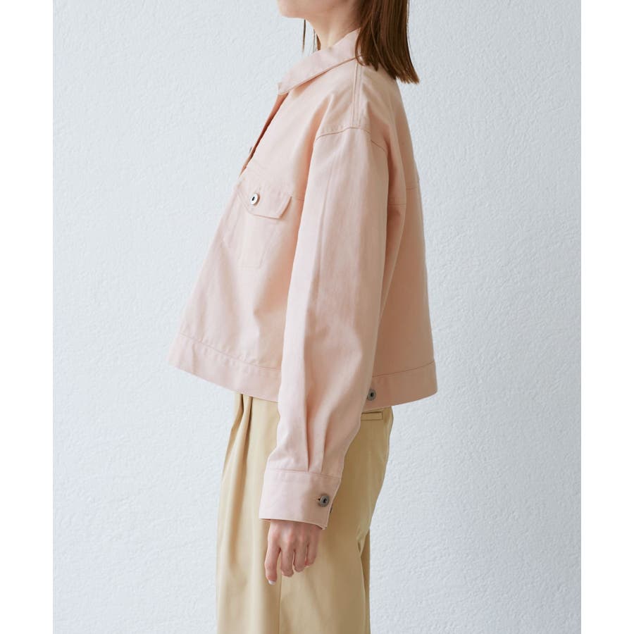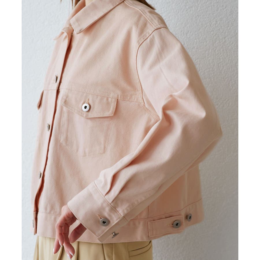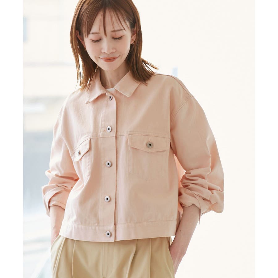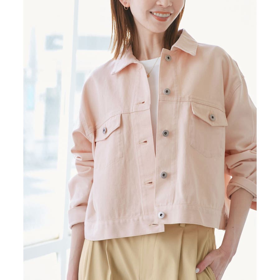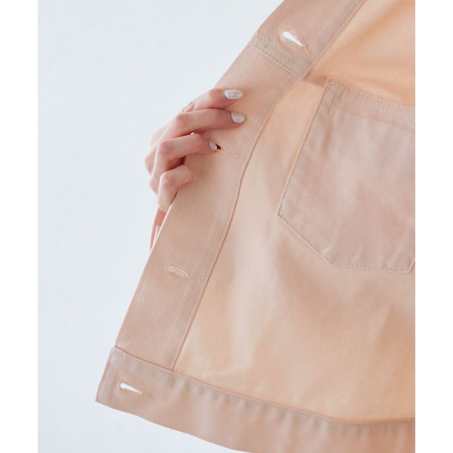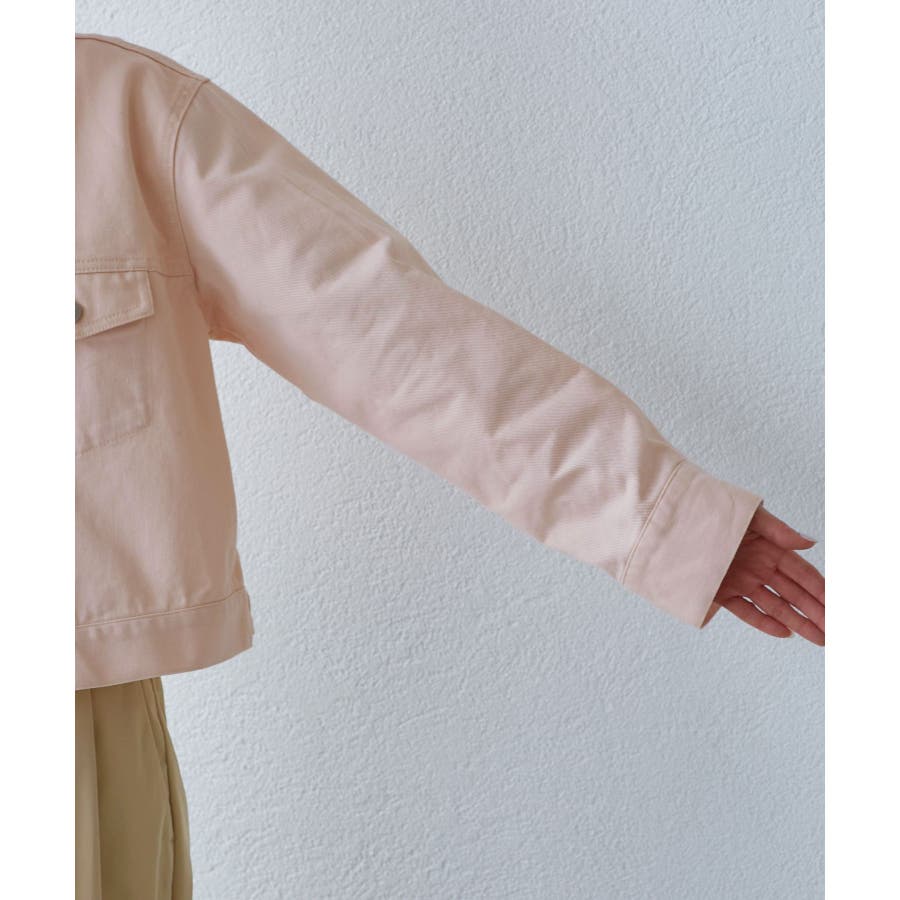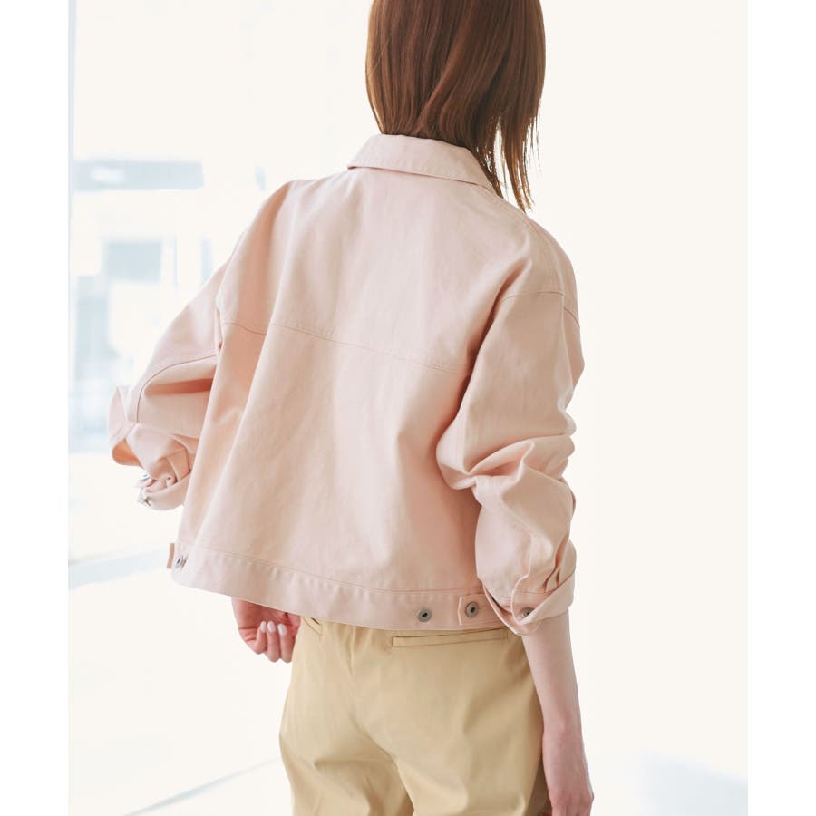 【素材感】 ・柔らかい素材感のカツラギを使用。 ・硬すぎることなく、フェミニンスタイルにも使えるように生地選びにもこだわりを。 【デザイン・シルエット】 ・スウィートで春らしいピンク色のデニムジャケット。 ・モダンなスタイルに導くリラックスフォルム。 ・袖口にはタックボタンを2つ付けているので袖口の太さを調整可能。 ・後ろ身頃もタックボタンを2つ付けているので裾幅の調整も可能。 ・ボックスシルエットと、少し丸みのあるシルエットでスタイリングに合わせてアレンジが楽しめる。 【カラー】 ・ピンクのみの展開。 ・同型でブルー系(品番:GDL15060)も展開。 【スタイリングポイント】 ・カーキ系の色と相性が良く、カジュアルなカーゴパンツやベイカーパンツなどを合わせると◎。 ・シンプルなタンクトップに羽織ると女性らしい着こなしに。 ----------------------------- 裏地:なし 透け感:なし 伸縮性:なし 生地感・厚さ:普通 ポケット:あり 季節:春・秋 ----------------------------- ※撮影時の光、お使いのモニター環境によって色の見え方が違う場合がございます。 ※モデル身長:165cm 着用サイズ:38
