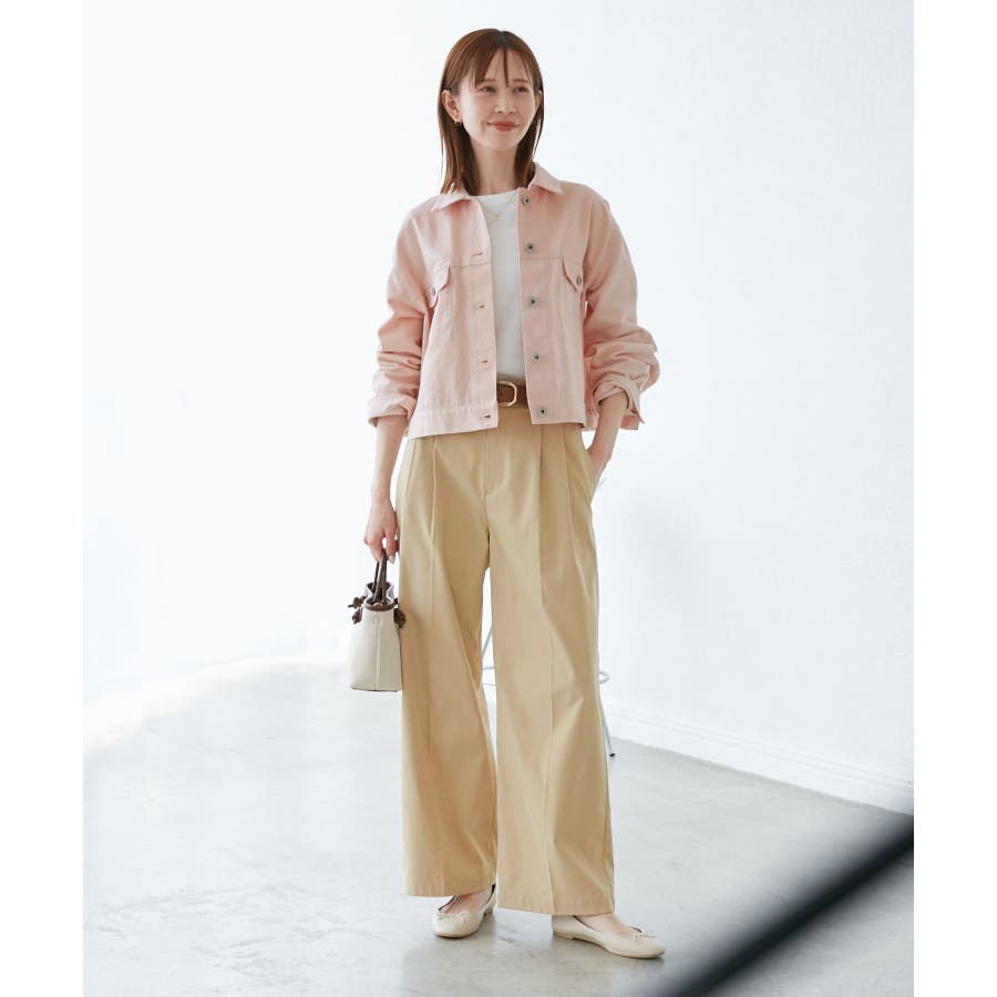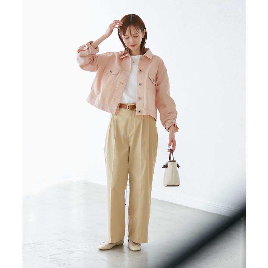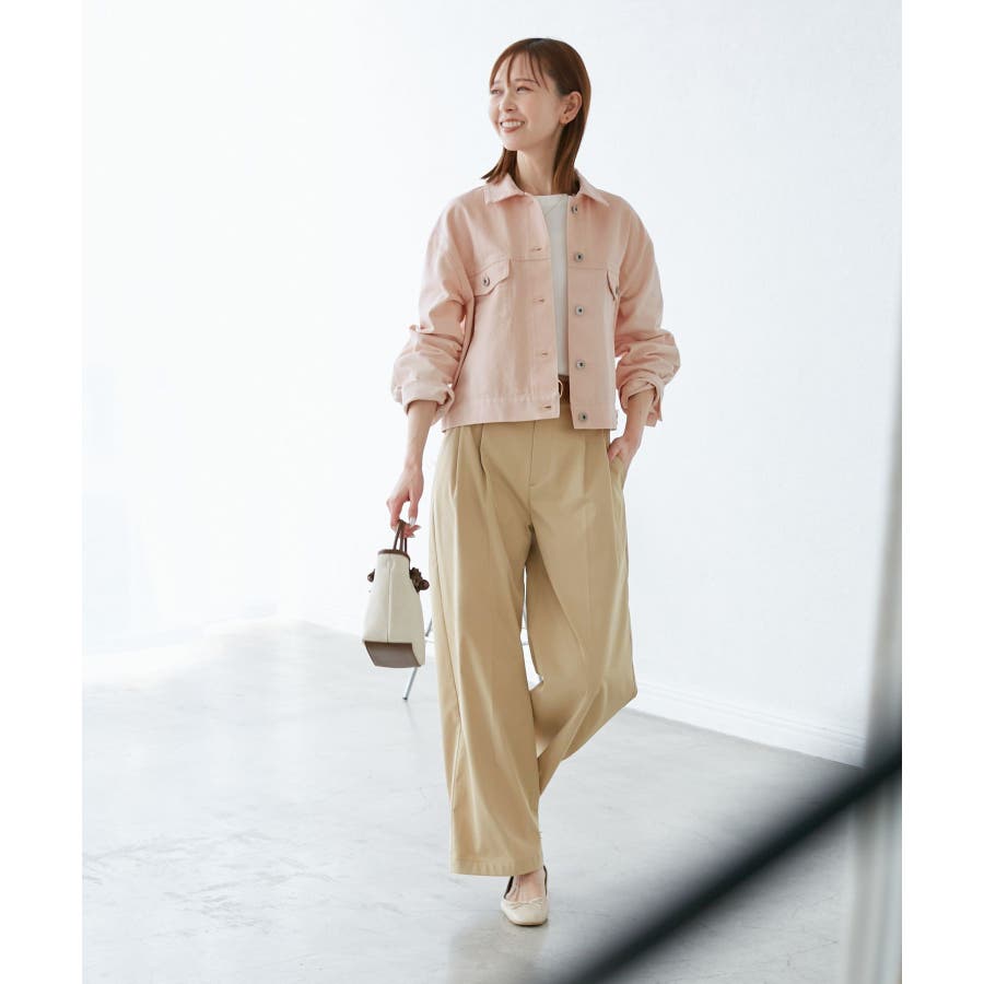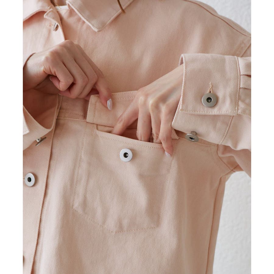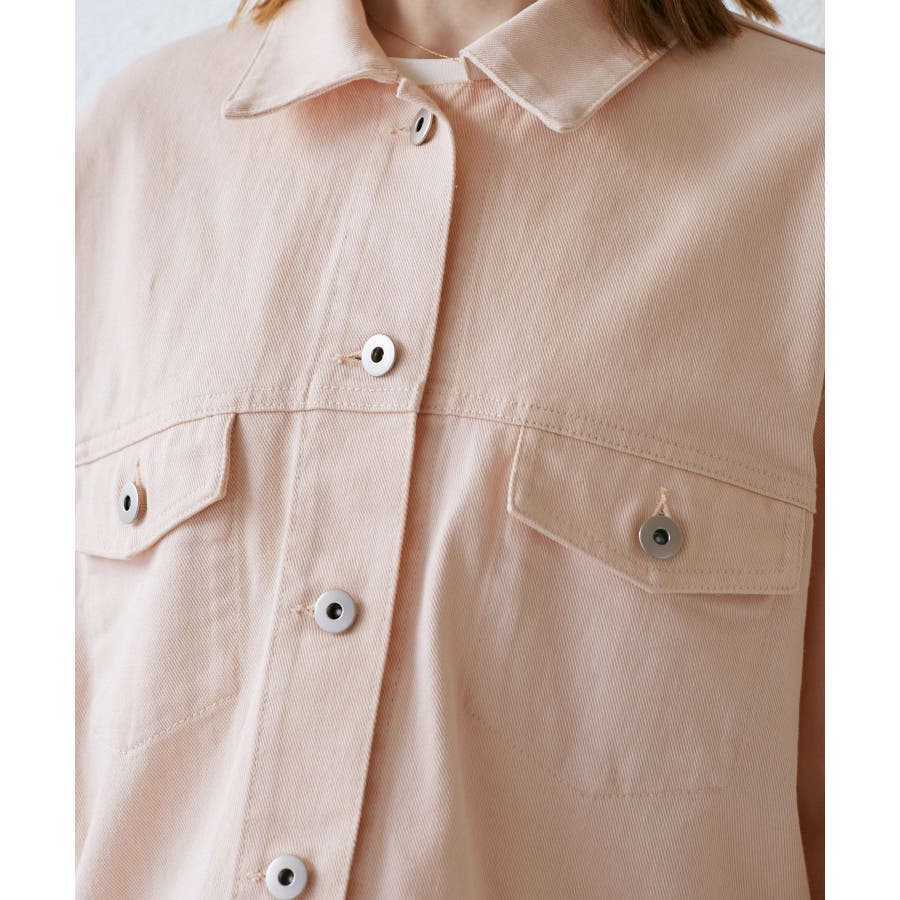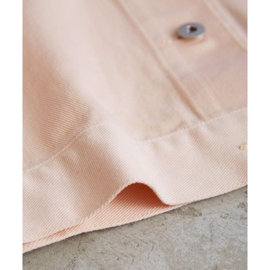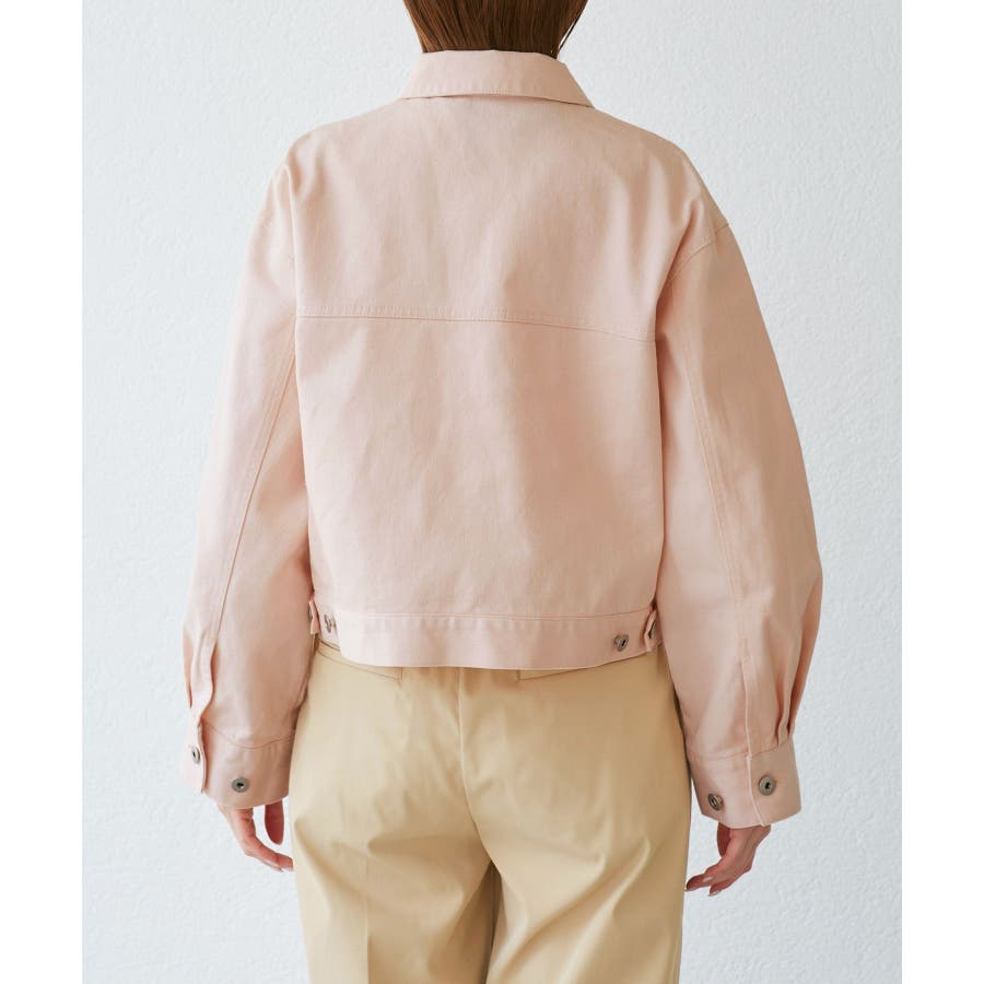 【素材感】 ・柔らかい素材感のカツラギを使用。 ・硬すぎることなく、フェミニンスタイルにも使えるように生地選びにもこだわりを。 【デザイン・シルエット】 ・スウィートで春らしいピンク色のデニムジャケット。 ・モダンなスタイルに導くリラックスフォルム。 ・袖口にはタックボタンを2つ付けているので袖口の太さを調整可能。 ・後ろ身頃もタックボタンを2つ付けているので裾幅の調整も可能。 ・ボックスシルエットと、少し丸みのあるシルエットでスタイリングに合わせてアレンジが楽しめる。 【カラー】 ・ピンクのみの展開。 ・同型でブルー系(品番:GDL15060)も展開。 【スタイリングポイント】 ・カーキ系の色と相性が良く、カジュアルなカーゴパンツやベイカーパンツなどを合わせると◎。 ・シンプルなタンクトップに羽織ると女性らしい着こなしに。 ----------------------------- 裏地:なし 透け感:なし 伸縮性:なし 生地感・厚さ:普通 ポケット:あり 季節:春・秋 ----------------------------- ※撮影時の光、お使いのモニター環境によって色の見え方が違う場合がございます。 ※モデル身長:165cm 着用サイズ:38