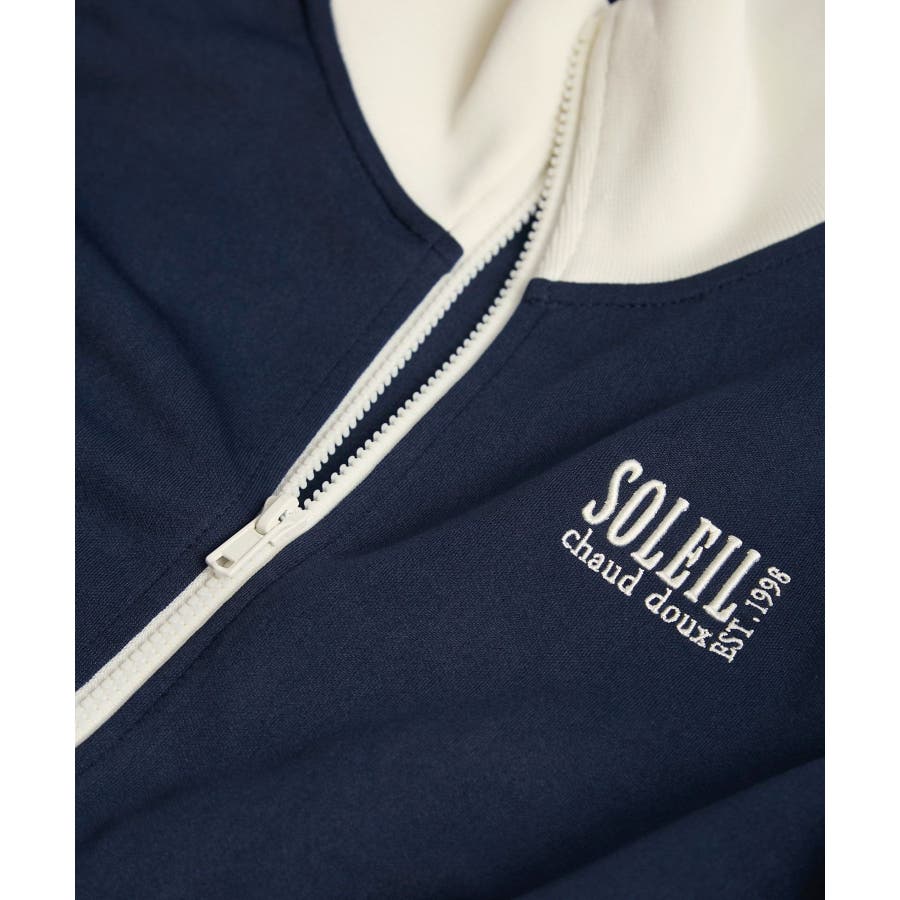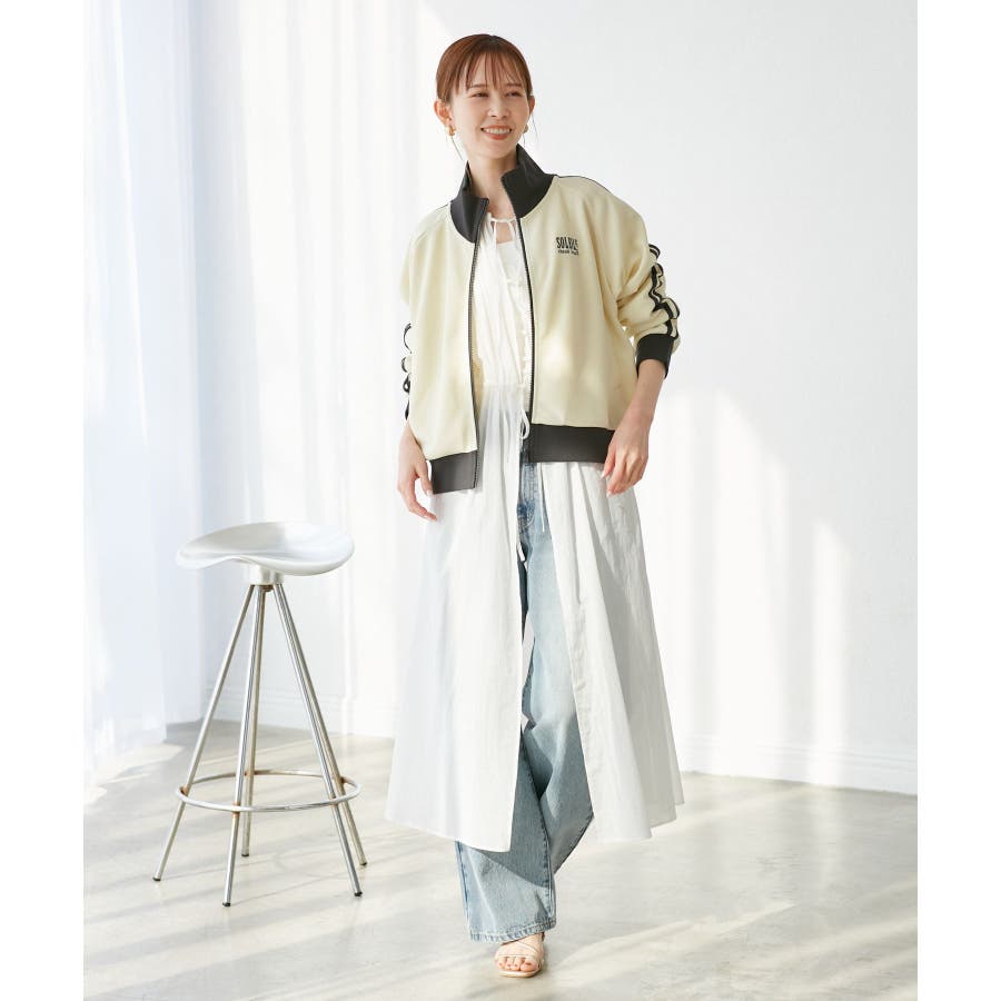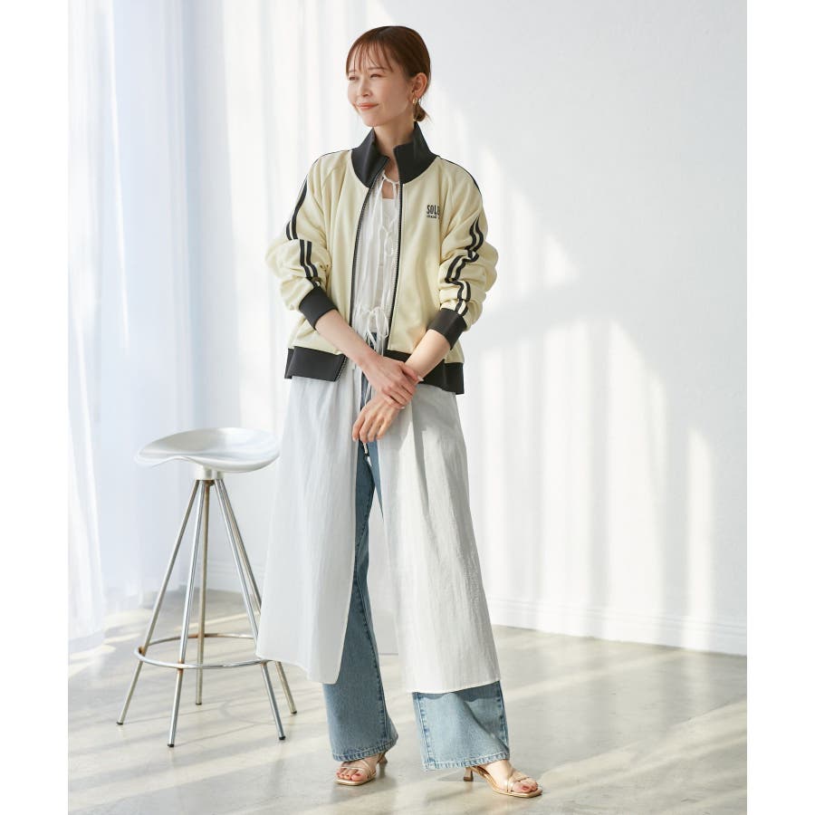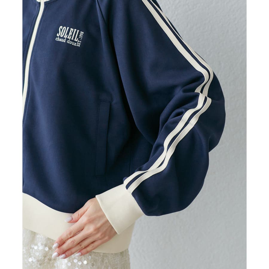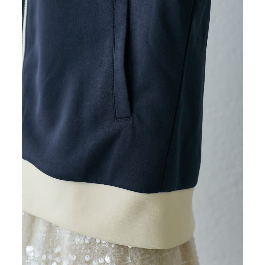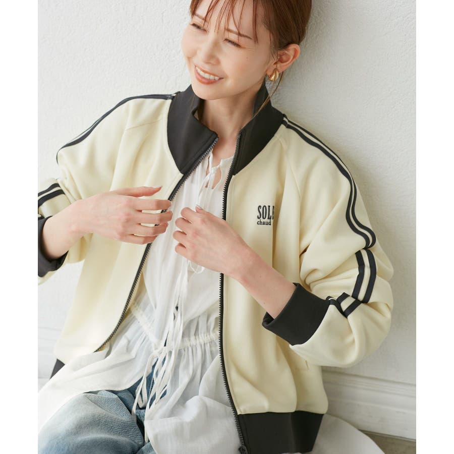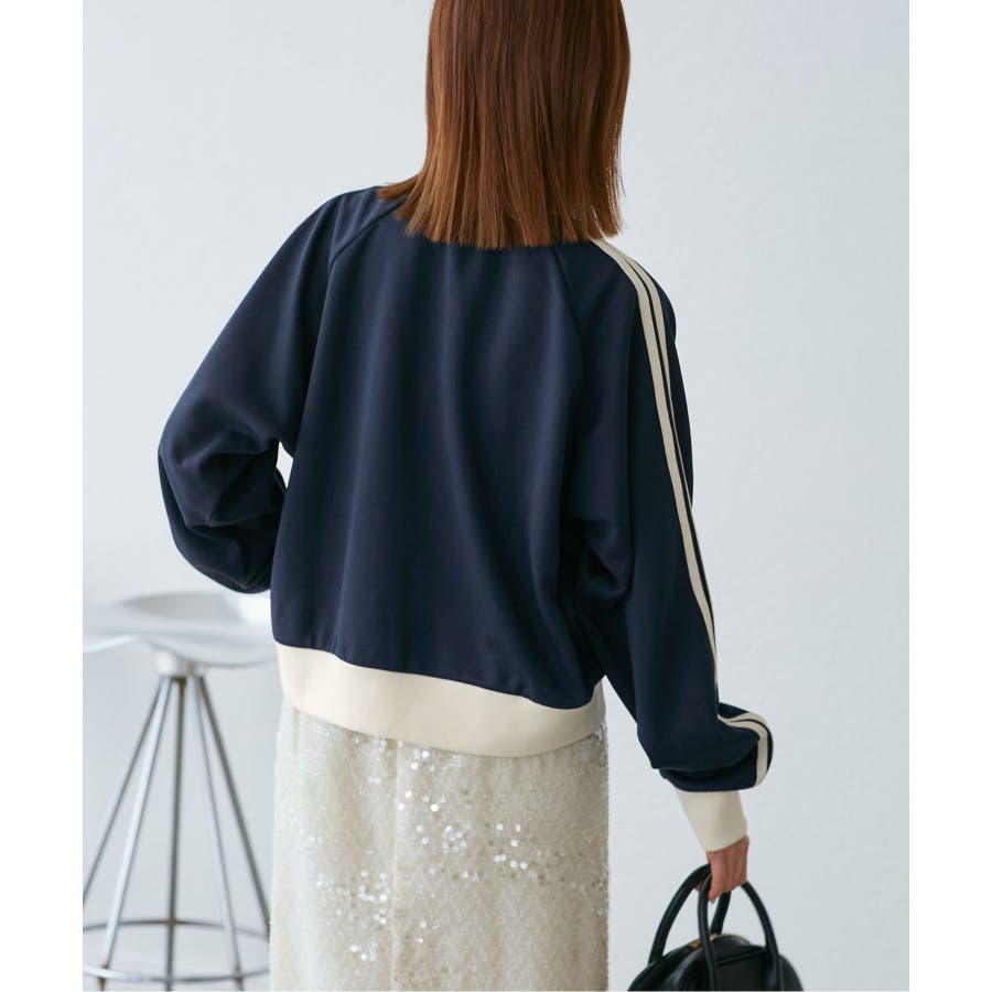 【デザイン・シルエット】 ・スポーティーなトラックジャケット。 ・袖のラインとカラーをリンクした、ネック、裾、袖のリブがポイント。 ・バイカラーデザインですっきりとした仕上がり。 ・腕の可動域が広いラグランスリーブ切り替え。 ・フロントポケット付き。 ・左胸にワンポイント入り。 【カラー】 ・アイボリー、ネイビーの落ち着いた2色展開。 【スタイリングポイント】 ・チェックシャツやダメージジーンズに合わせて、英国のグランジファッションにトライ。 ・シンプルなロングスカート合わせで、大人のカジュアルコーデに。 ----------------------------- 裏地:なし 透け感:なし 伸縮性:ややあり 生地感・厚さ:普通 ポケット:あり 季節:春・秋 ----------------------------- ※撮影時の光、お使いのモニター環境によって色の見え方が違う場合がございます。 ※モデル身長:165cm 着用サイズ:38
