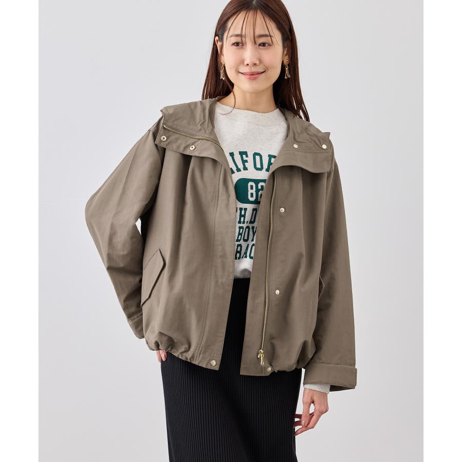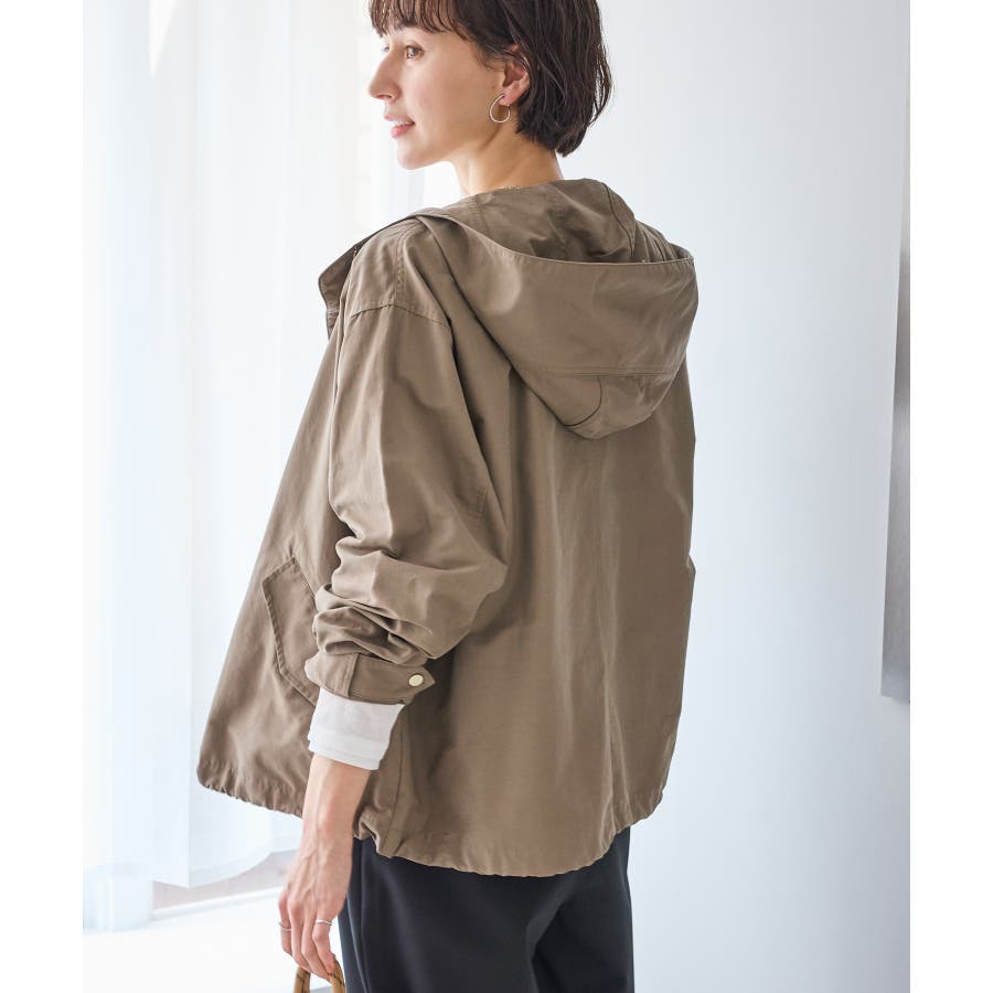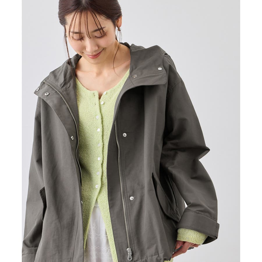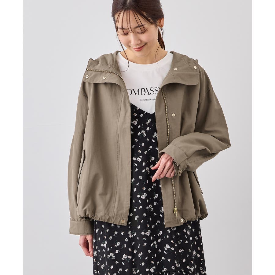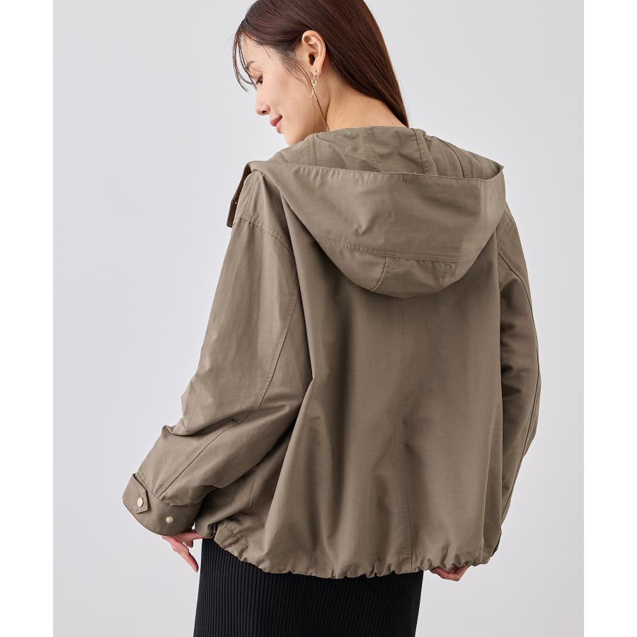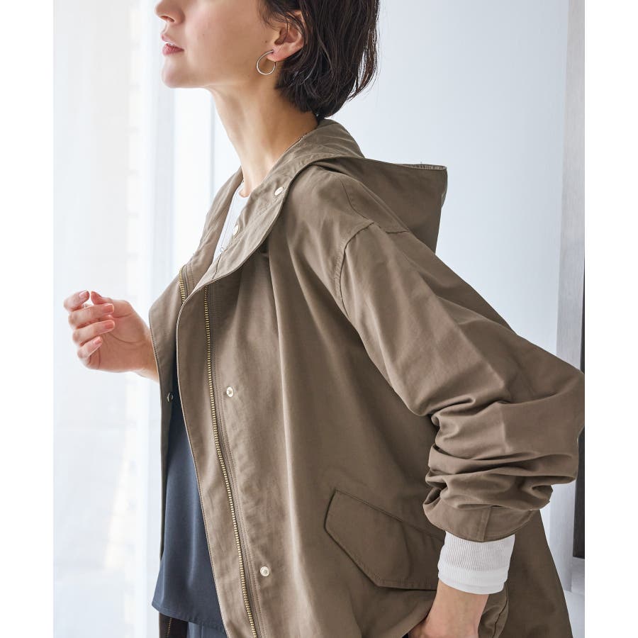 ・高めの衿からつながるフードデザインで、顔まわりをすっきりと見せる効果も期待できる。