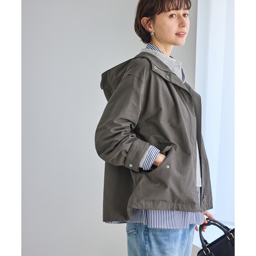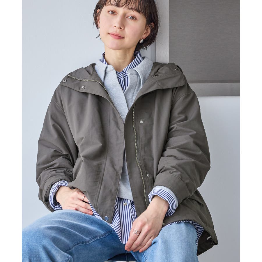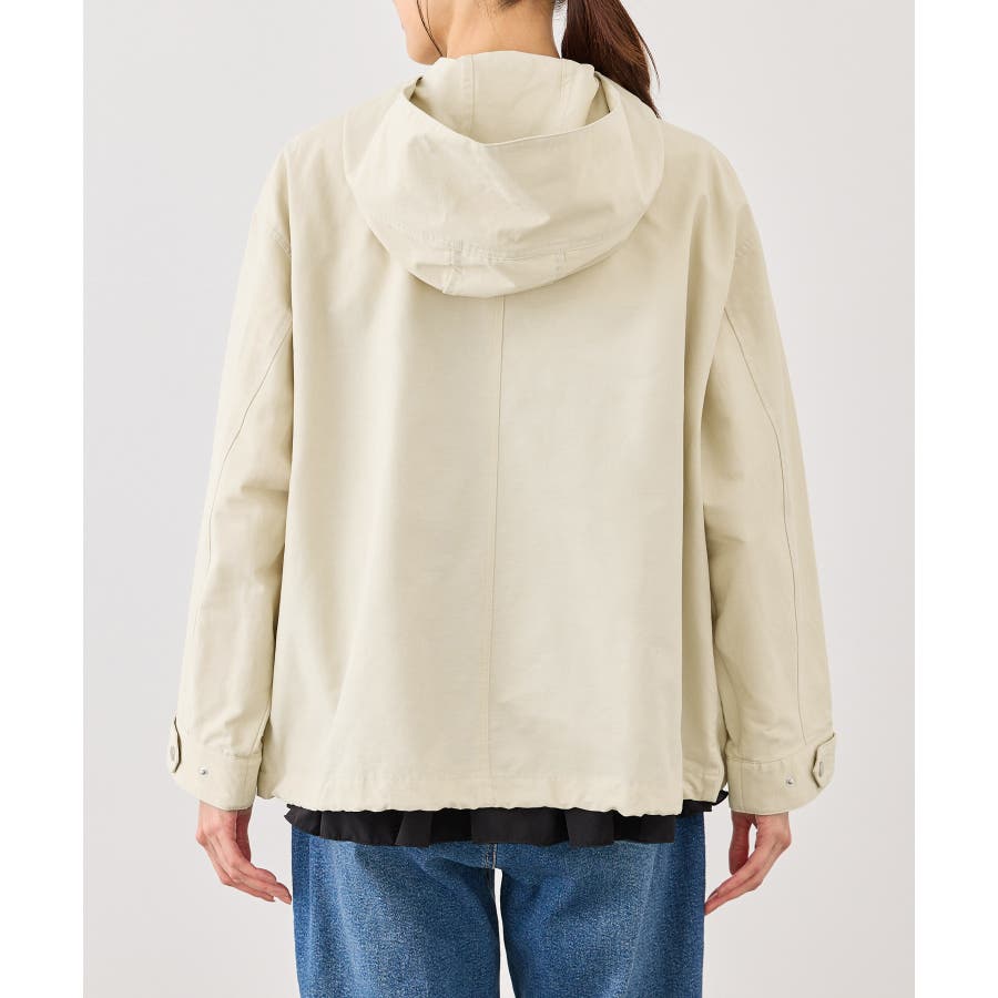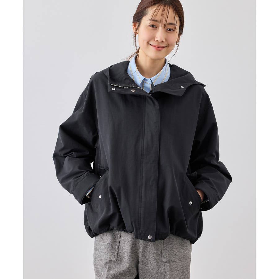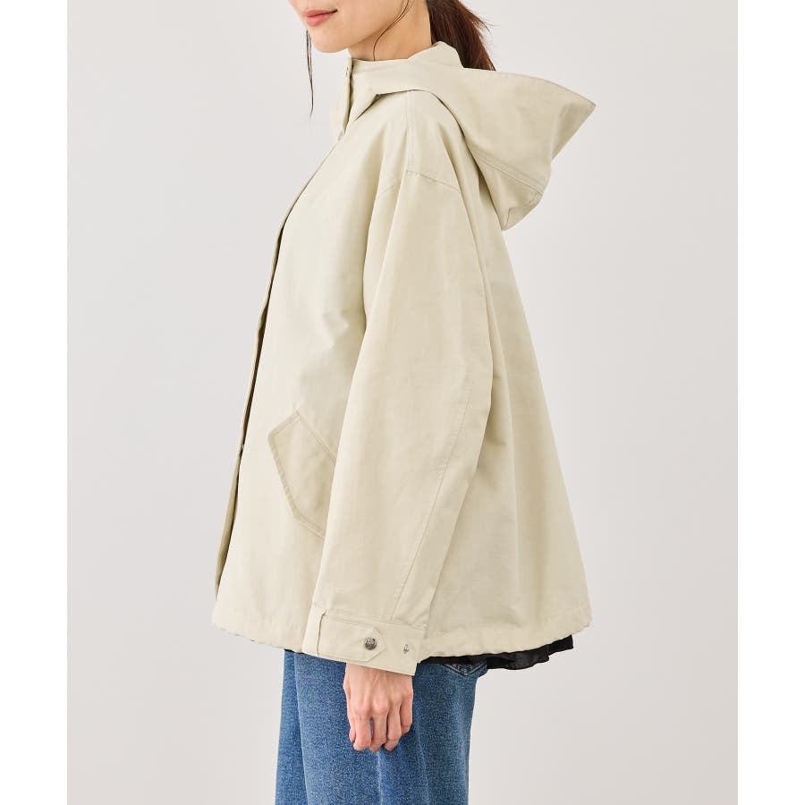 ・高めの衿からつながるフードデザインで、顔まわりをすっきりと見せる効果も期待できる。