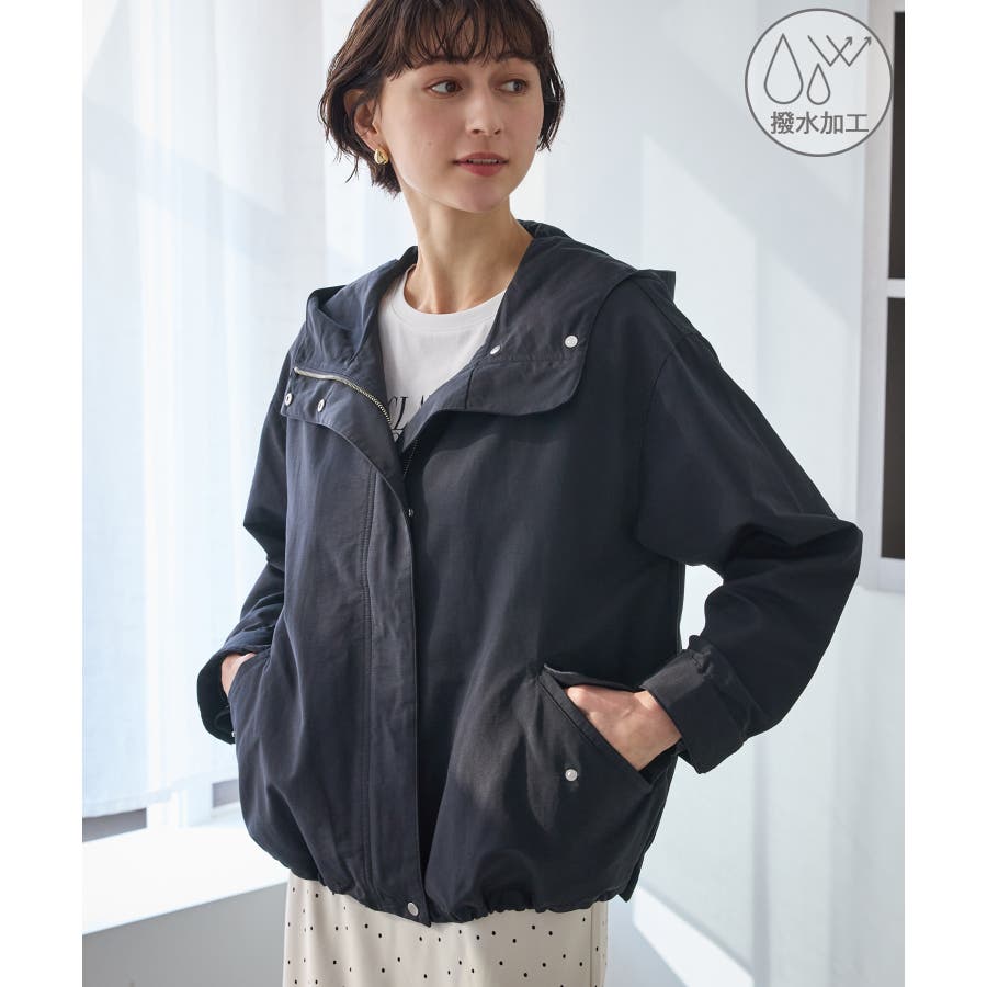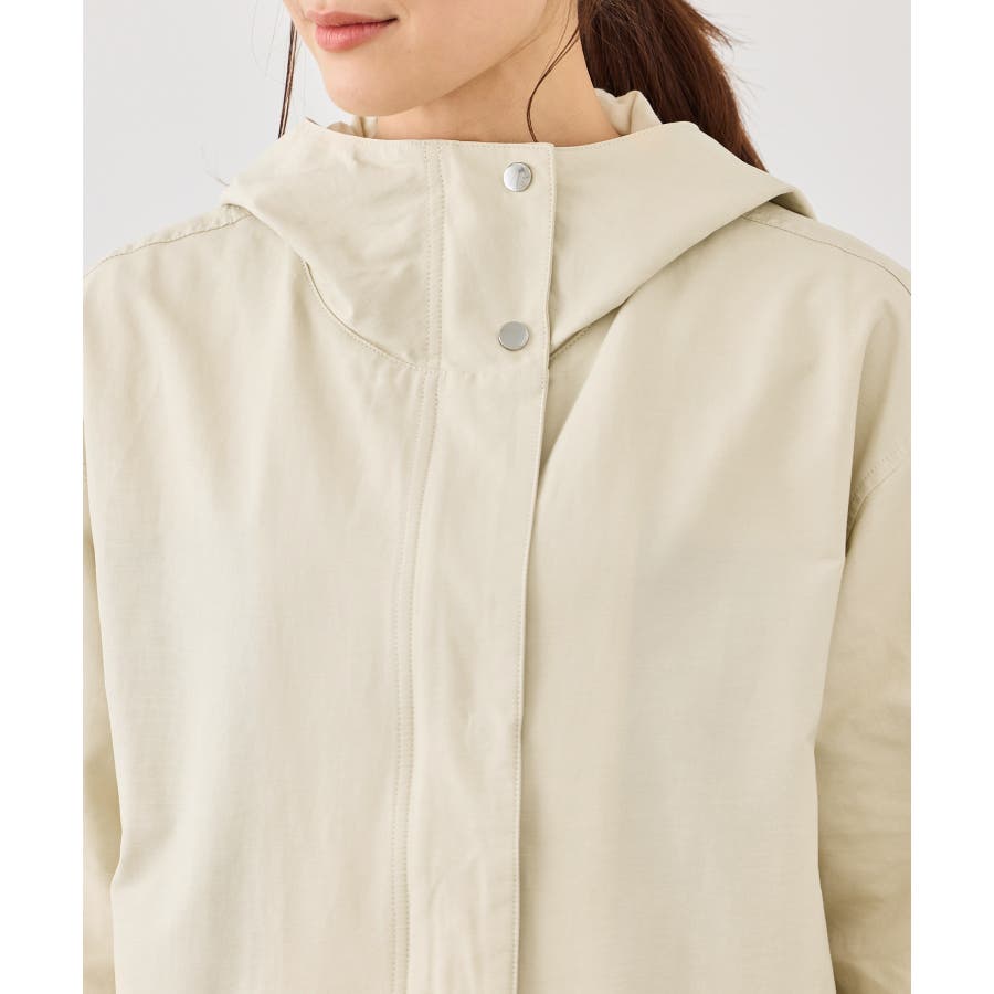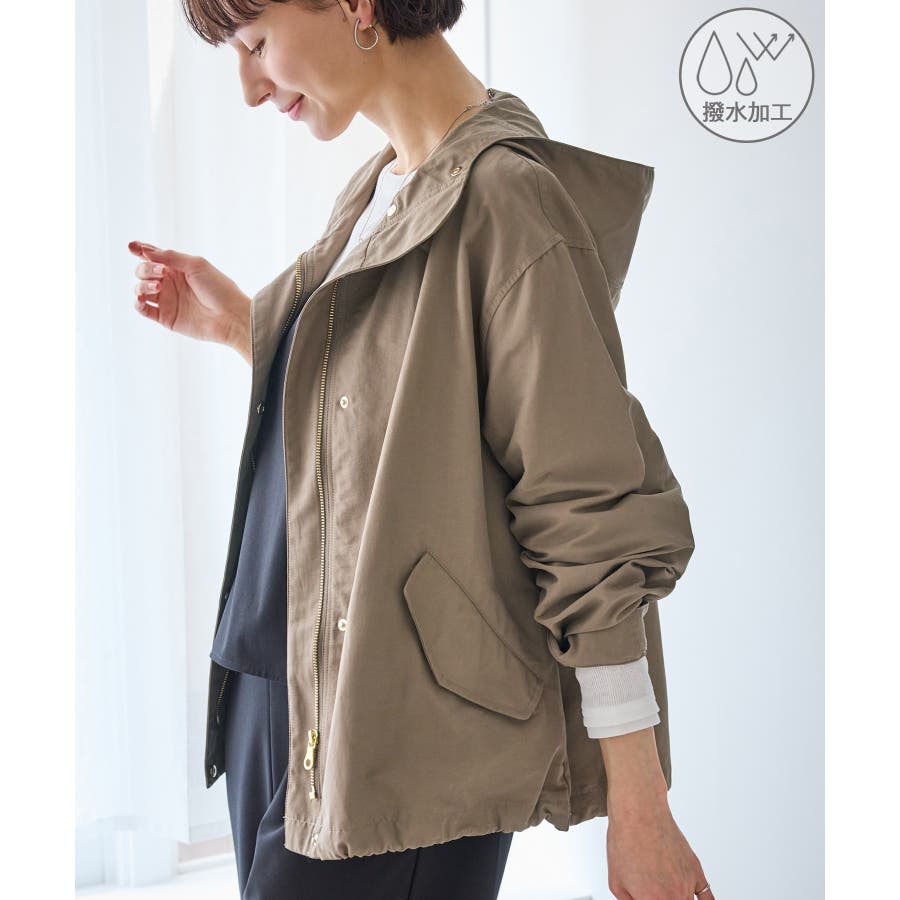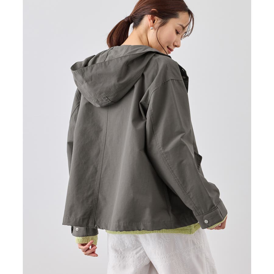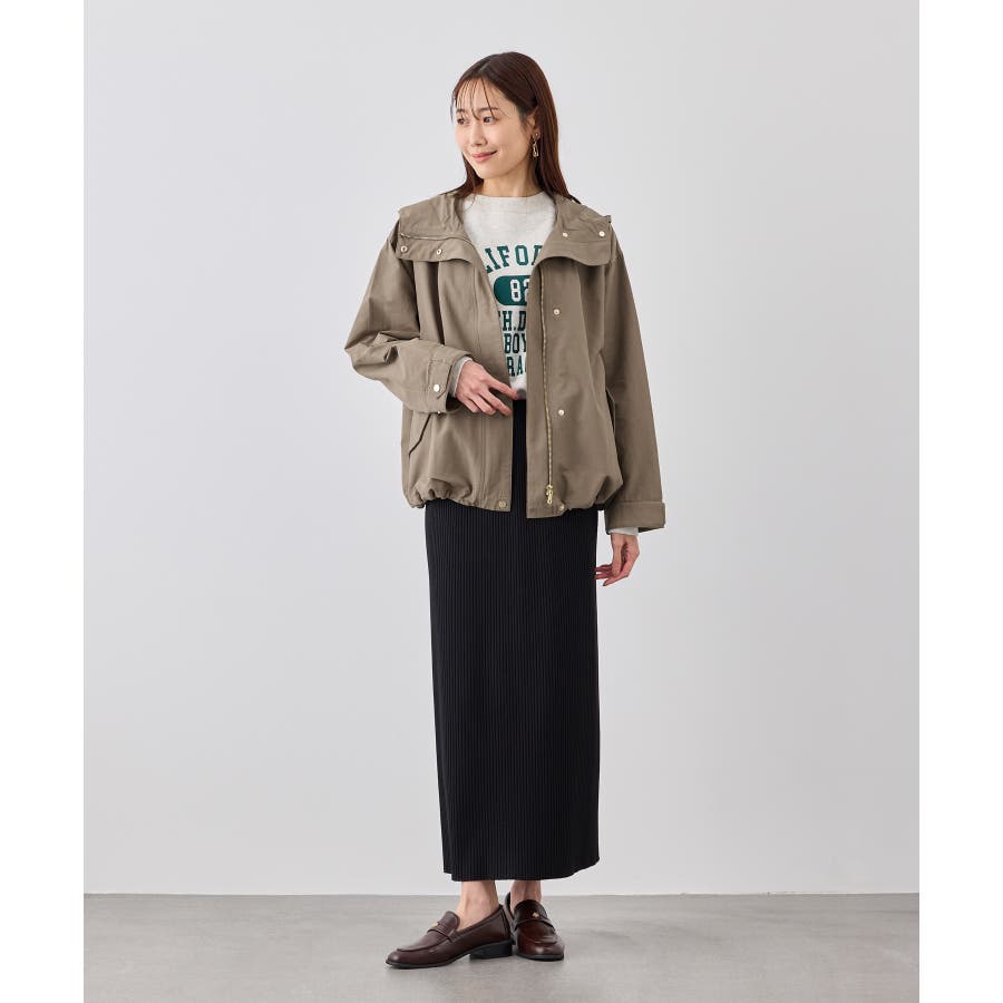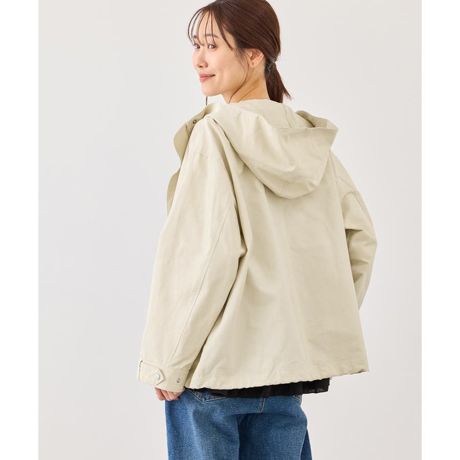 ・高めの衿からつながるフードデザインで、顔まわりをすっきりと見せる効果も期待できる。