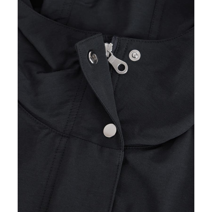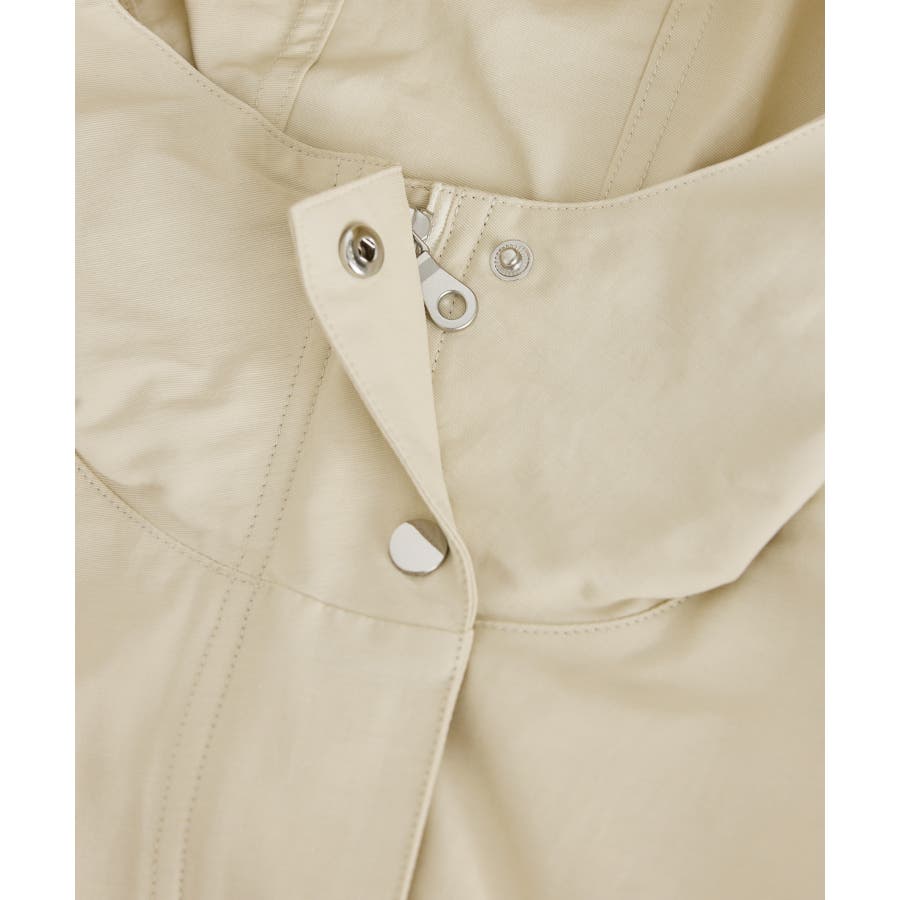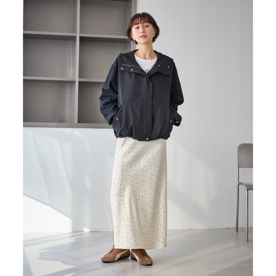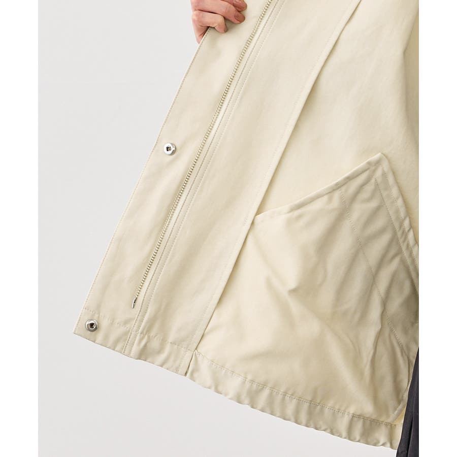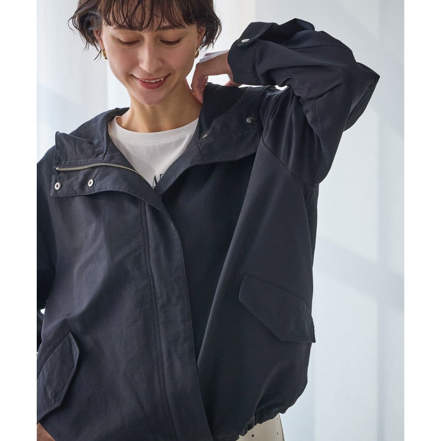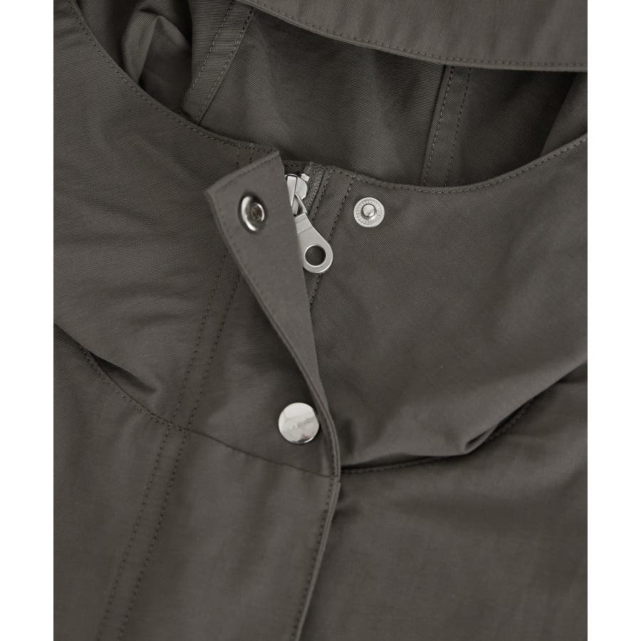 ・高めの衿からつながるフードデザインで、顔まわりをすっきりと見せる効果も期待できる。