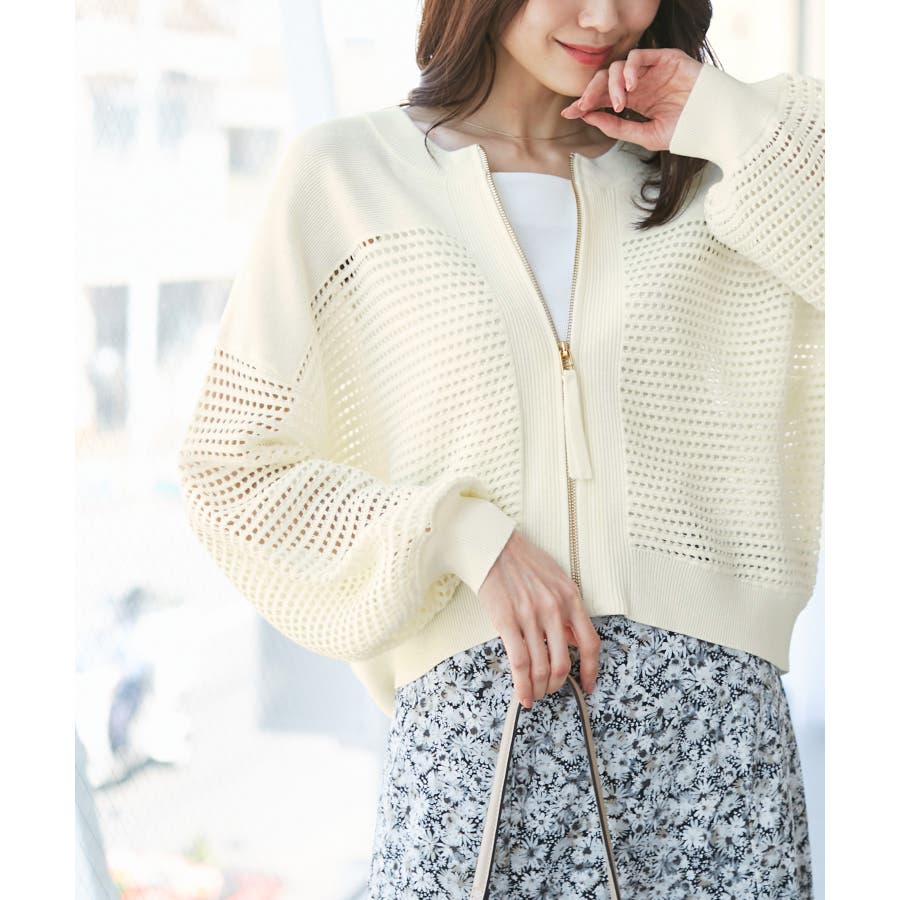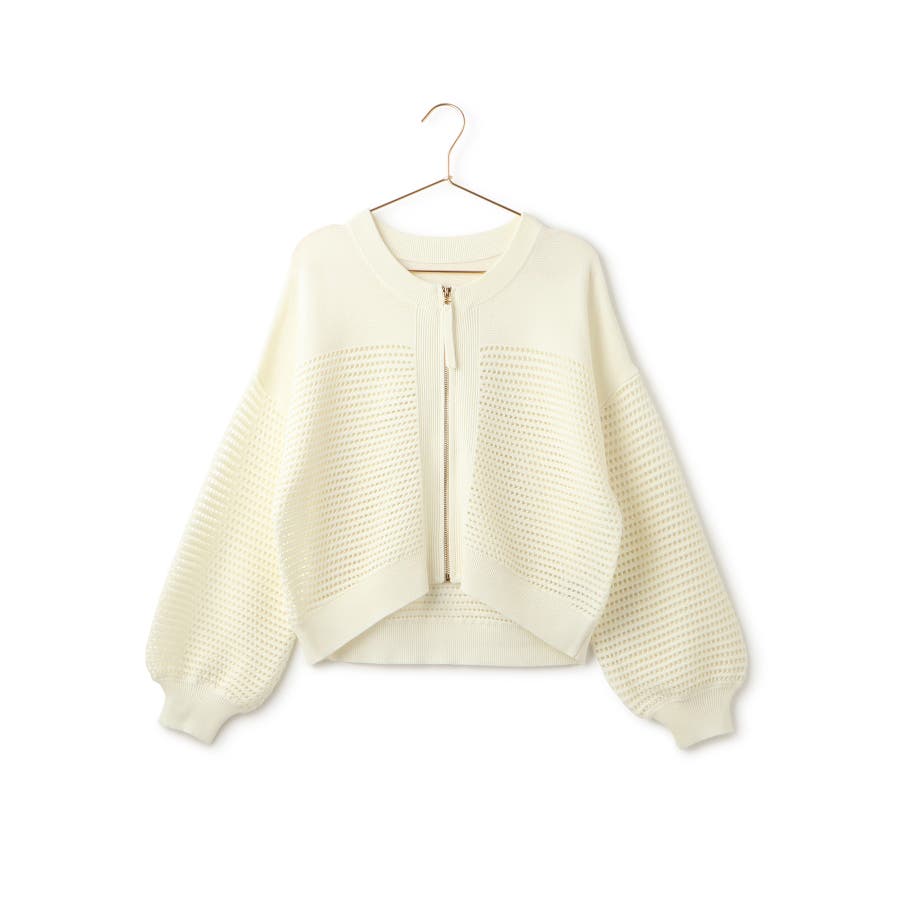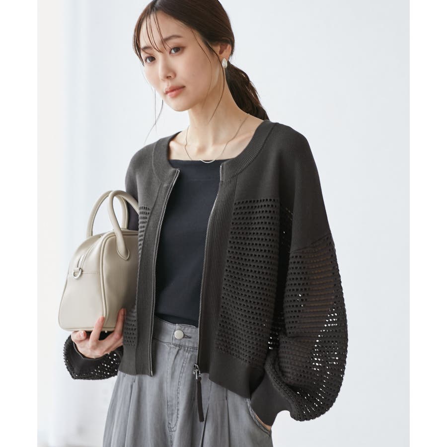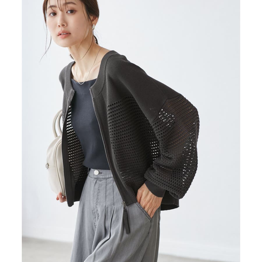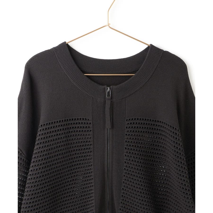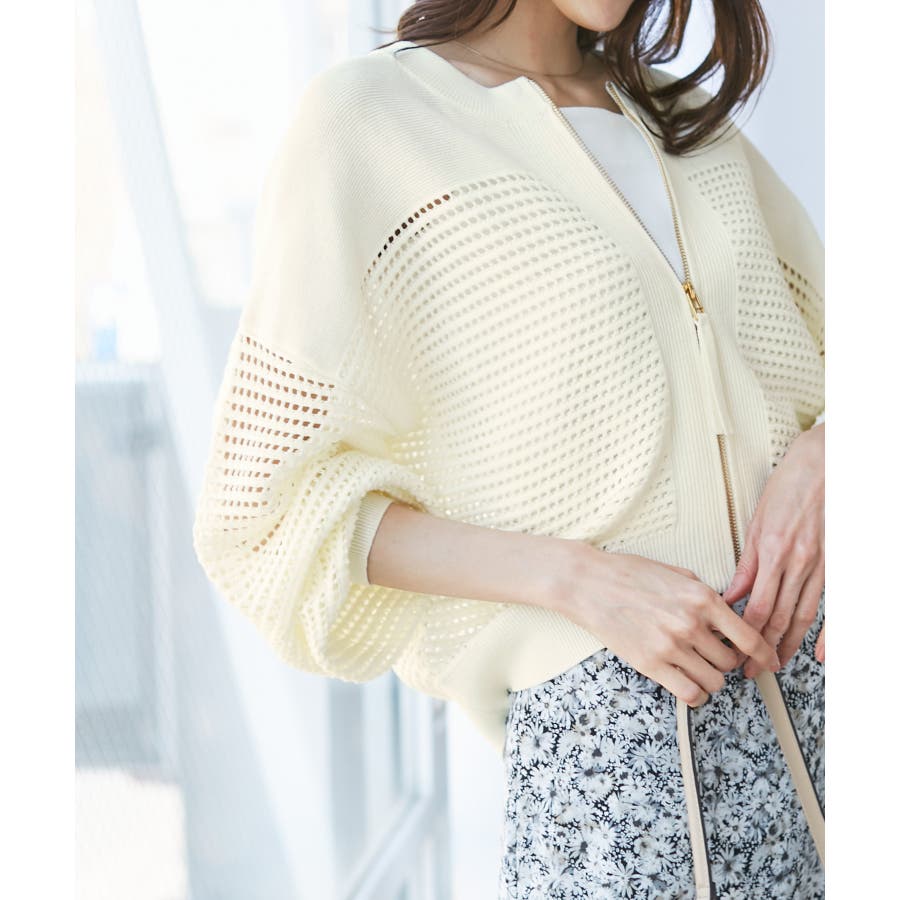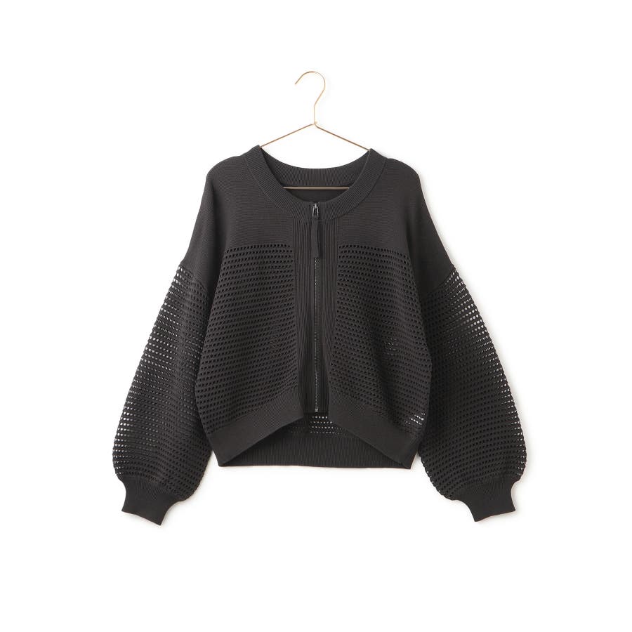 ・ボリュームのある編み地と、透け感のあるメッシュ編みのコントラストが魅力のニットブルゾン。