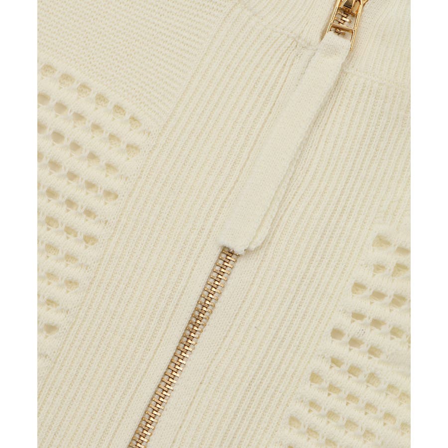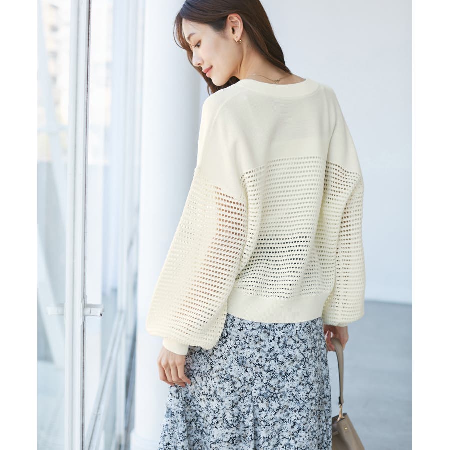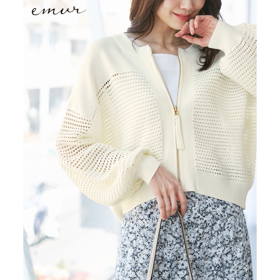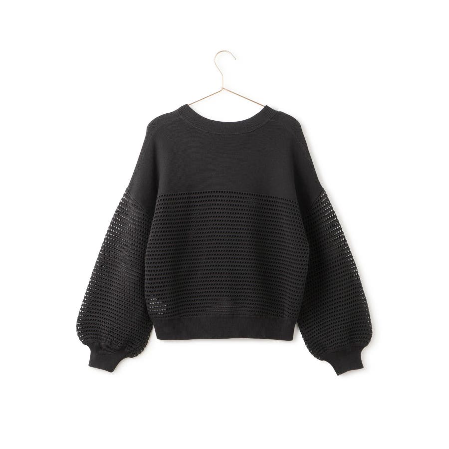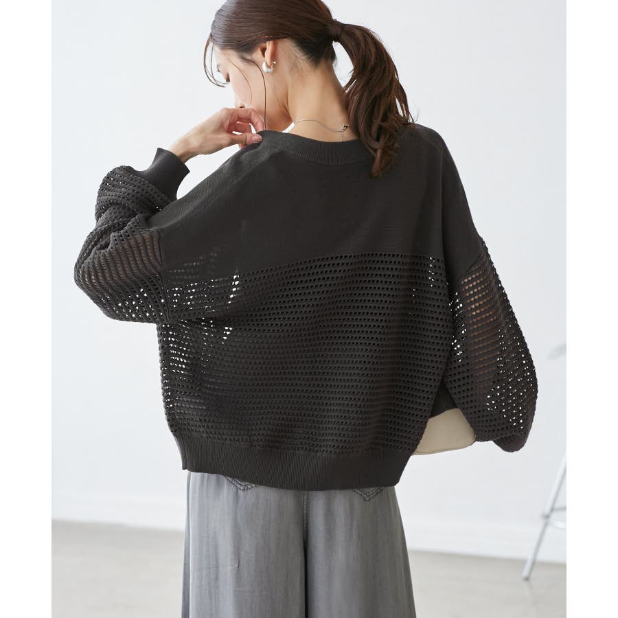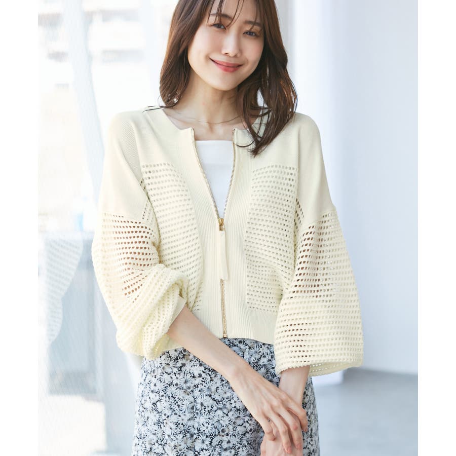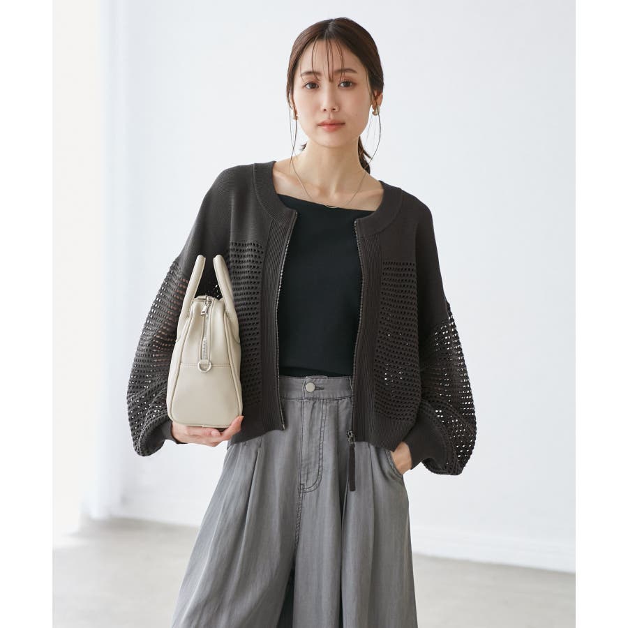 ・ボリュームのある編み地と、透け感のあるメッシュ編みのコントラストが魅力のニットブルゾン。