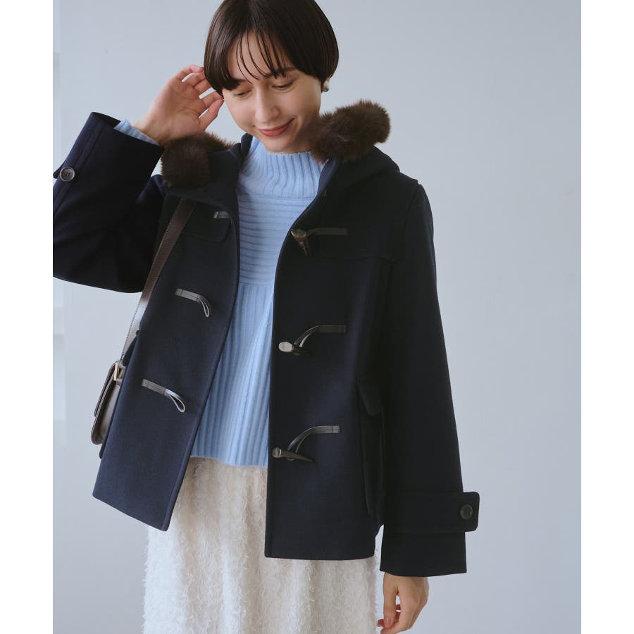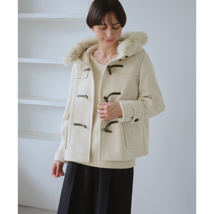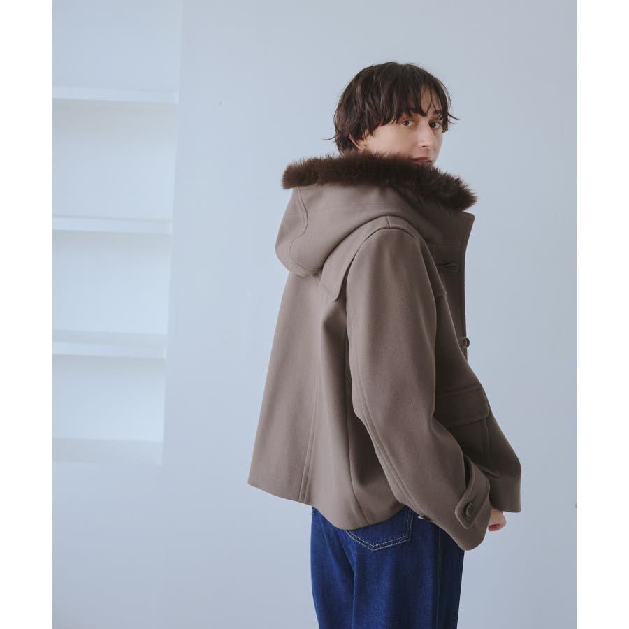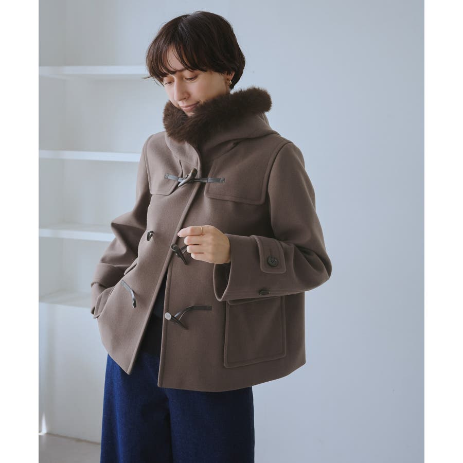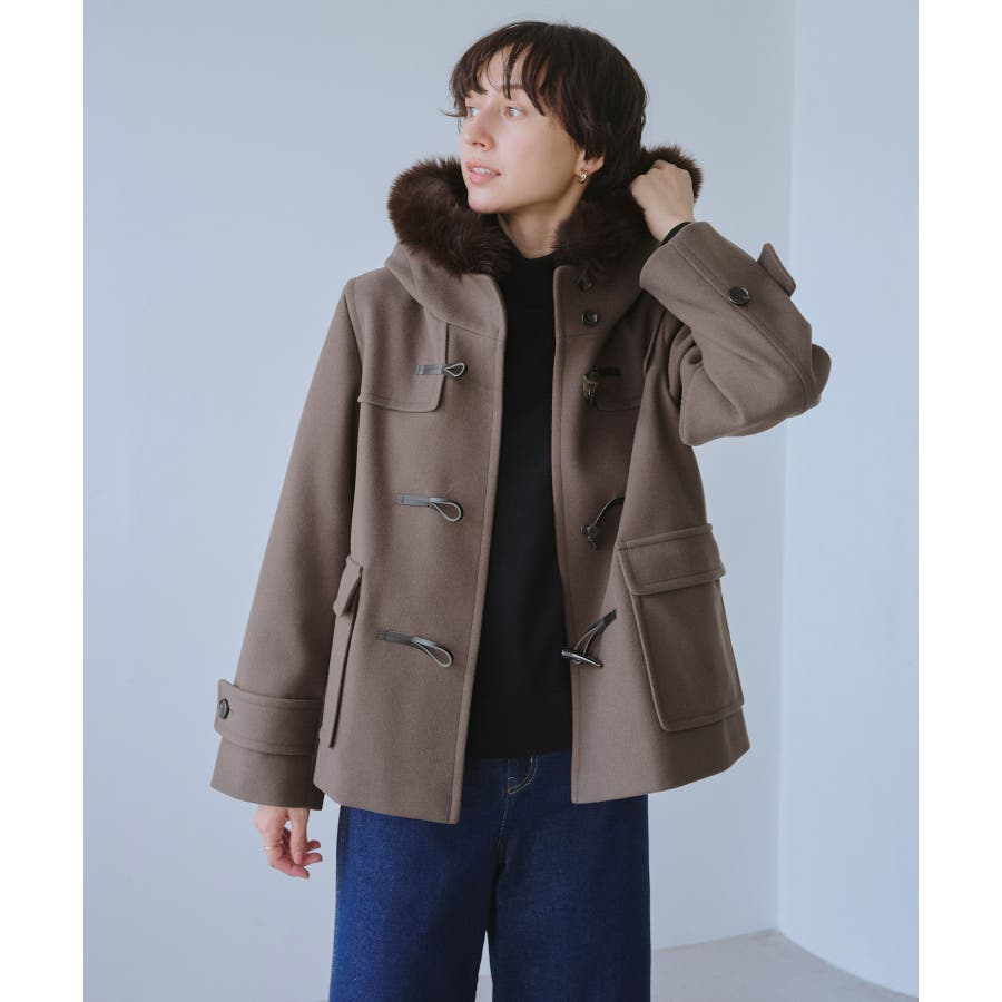 ジャージーメルトンシリーズ ファー付きショートダッフルコート/リンクコーデ
