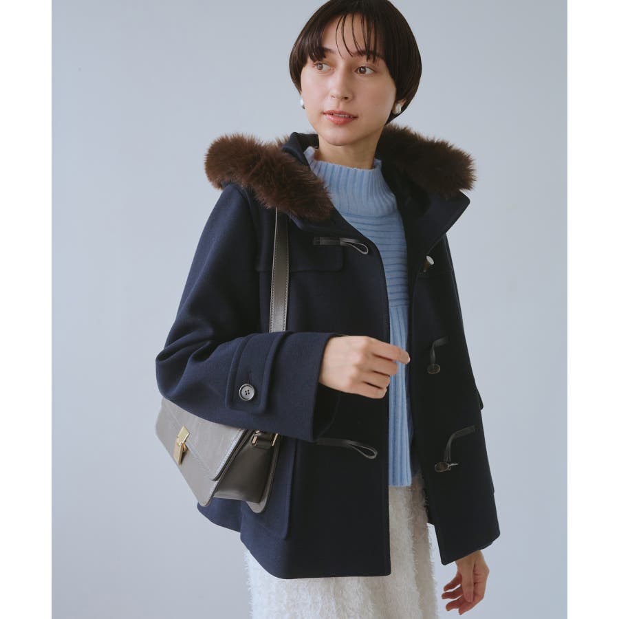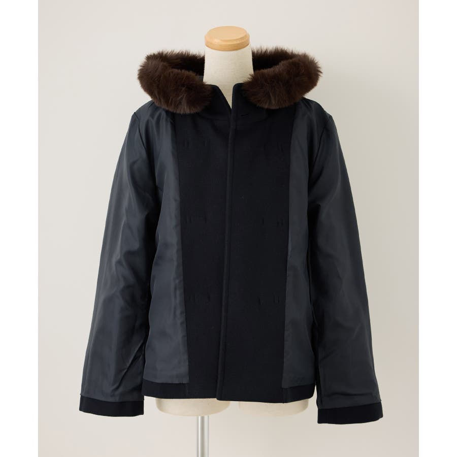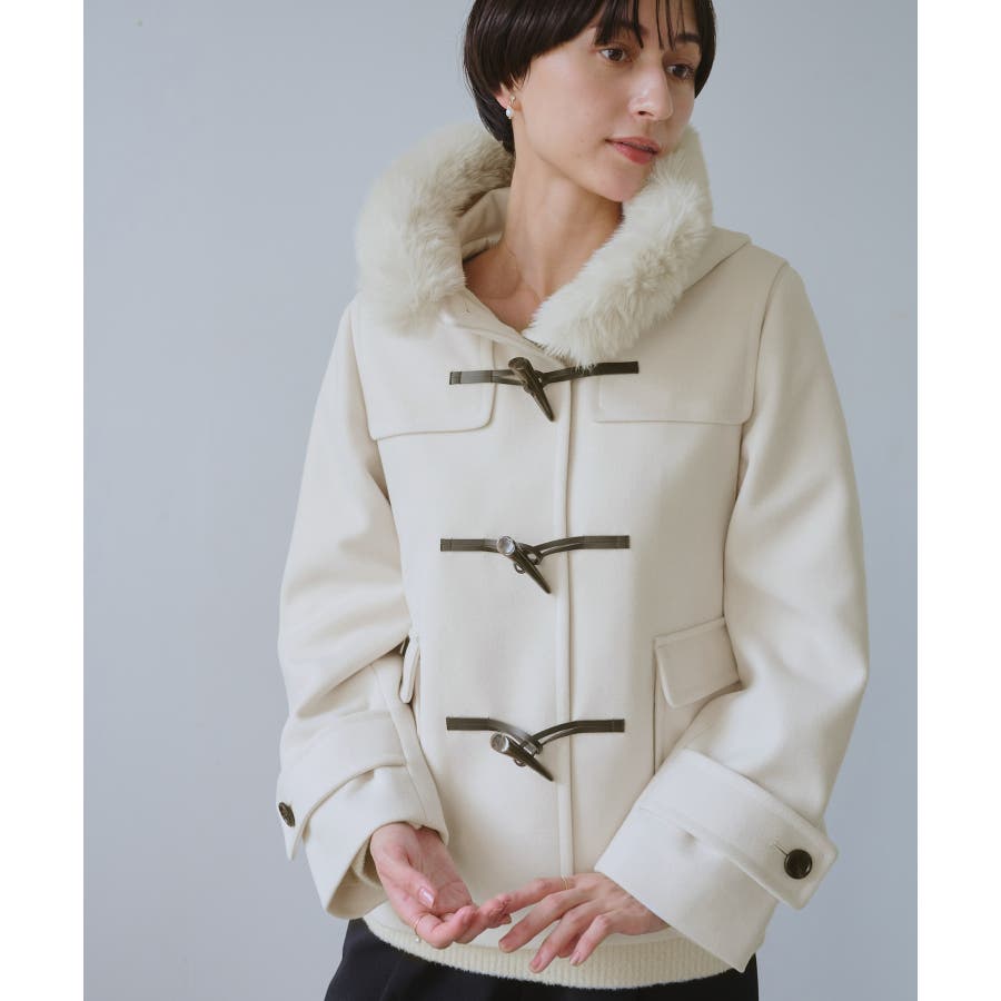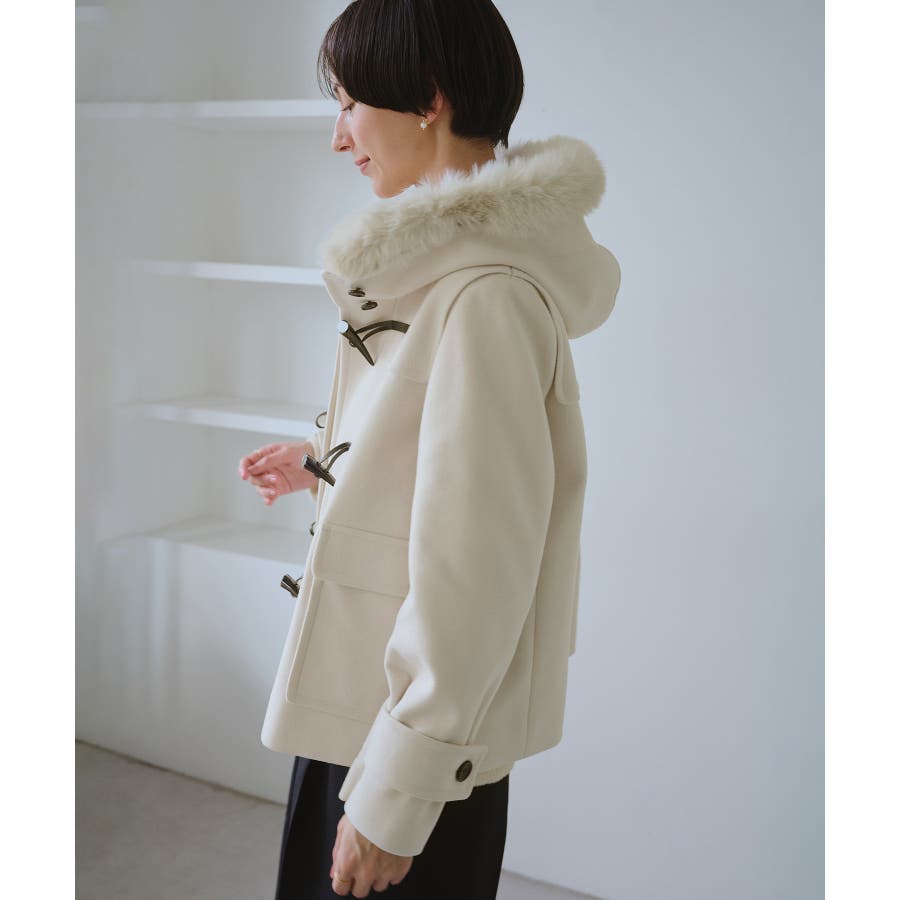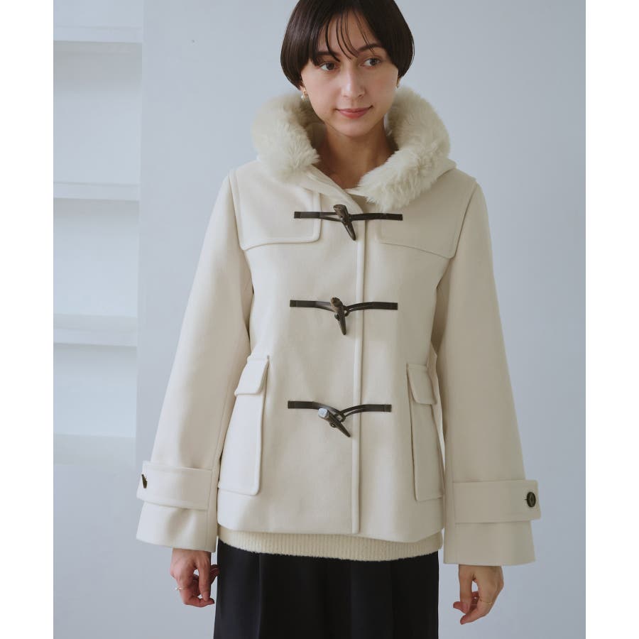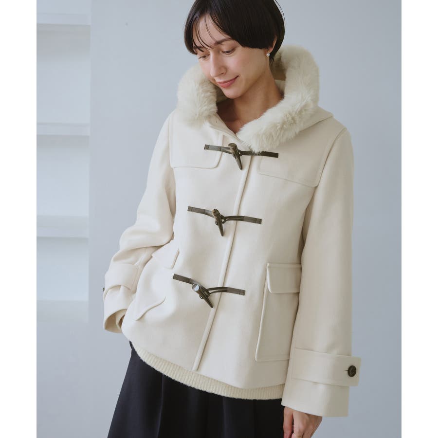 ジャージーメルトンシリーズ ファー付きショートダッフルコート/リンクコーデ