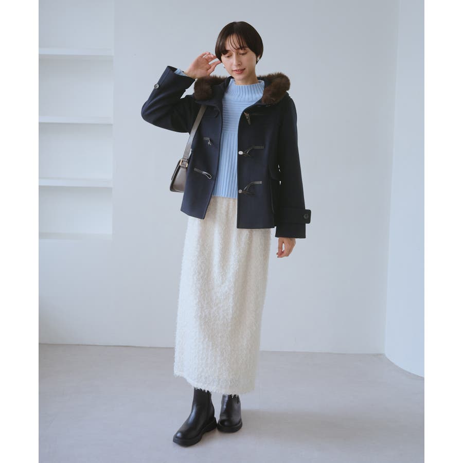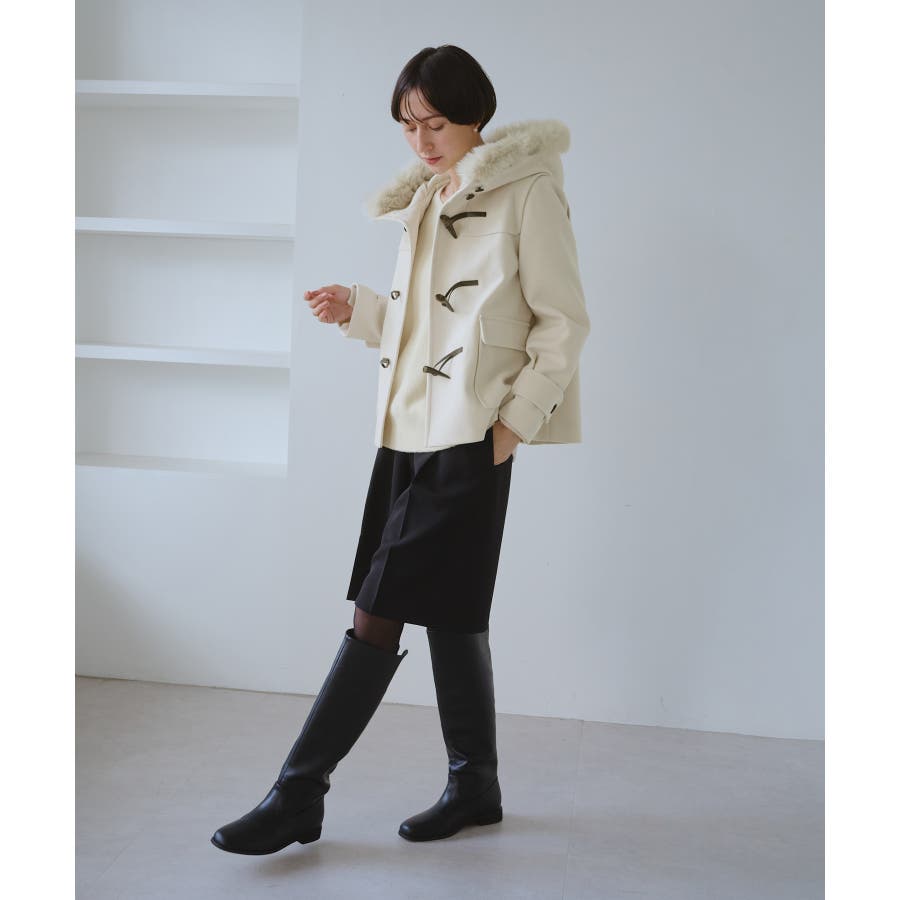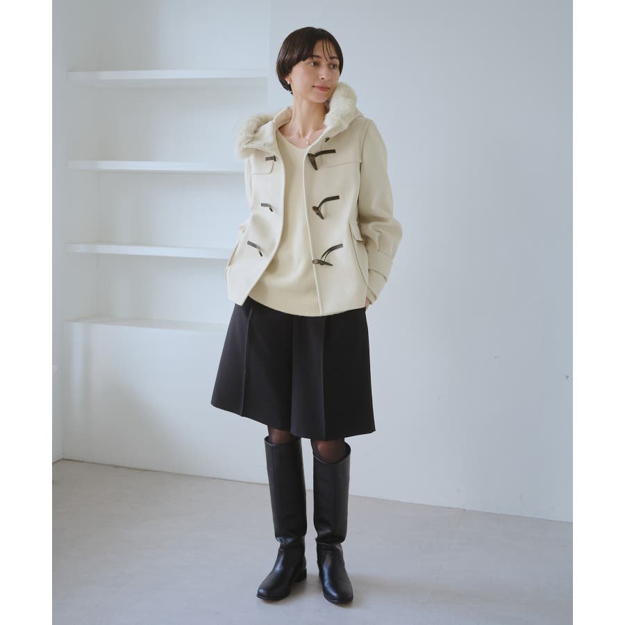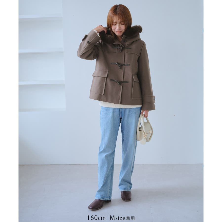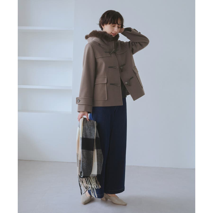 ジャージーメルトンシリーズ ファー付きショートダッフルコート/リンクコーデ