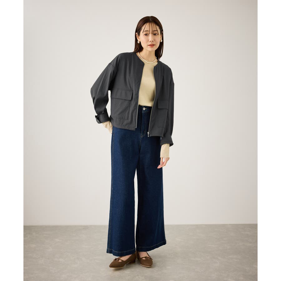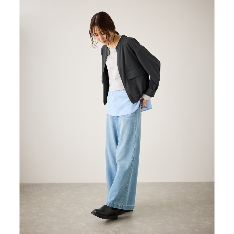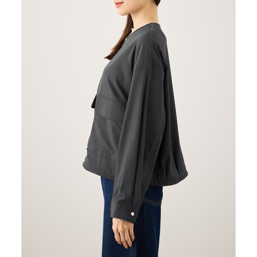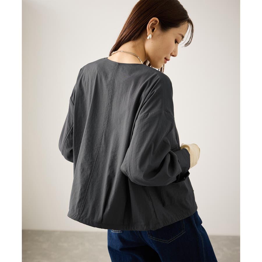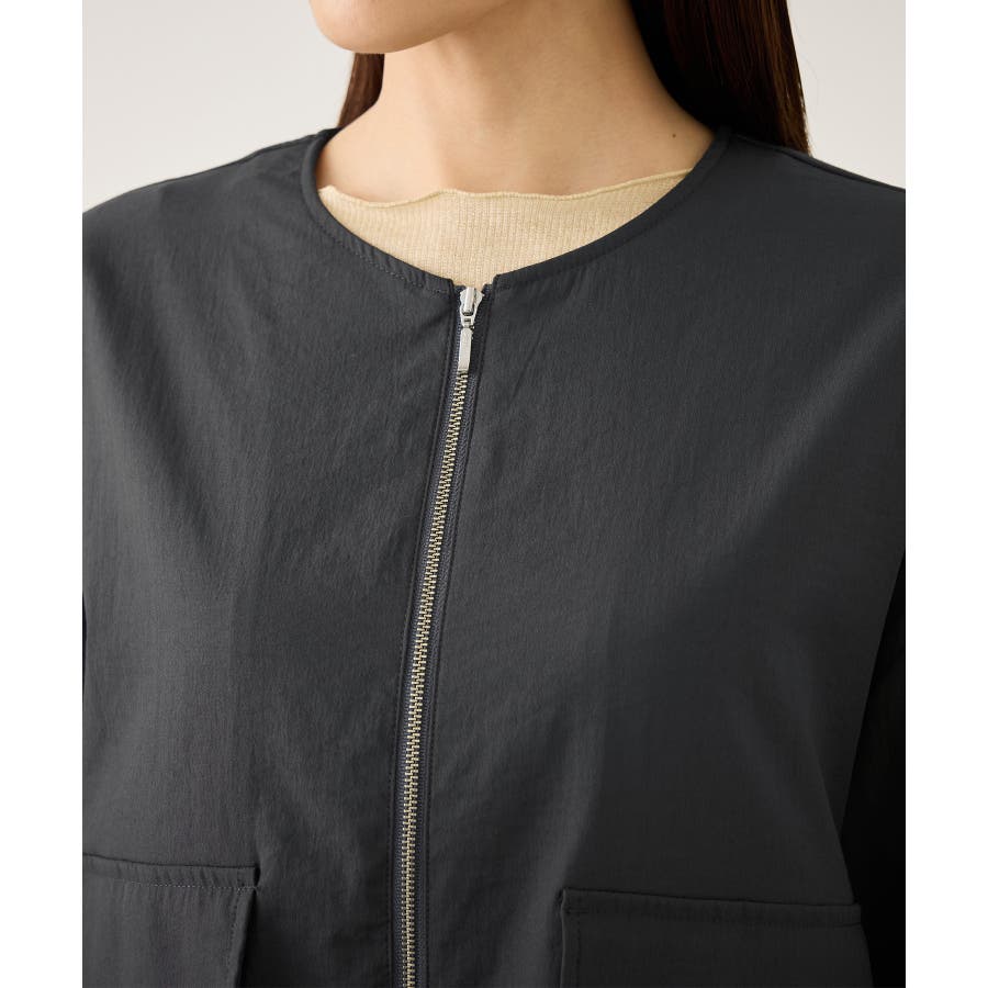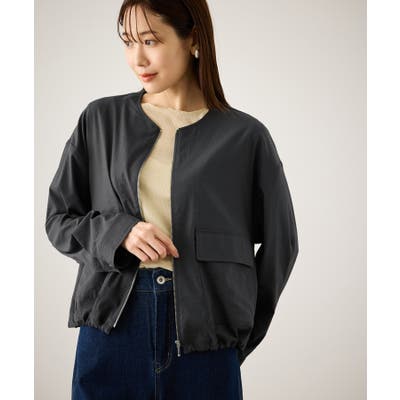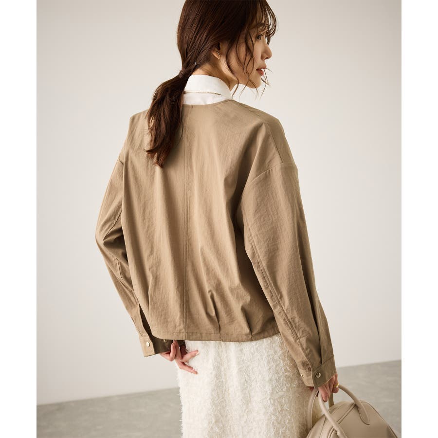 ・ノーカラーなので、カーディガン感覚で室内でも脱がずに羽織っていられるライトブルゾン。
