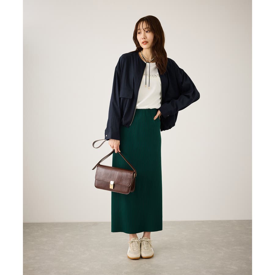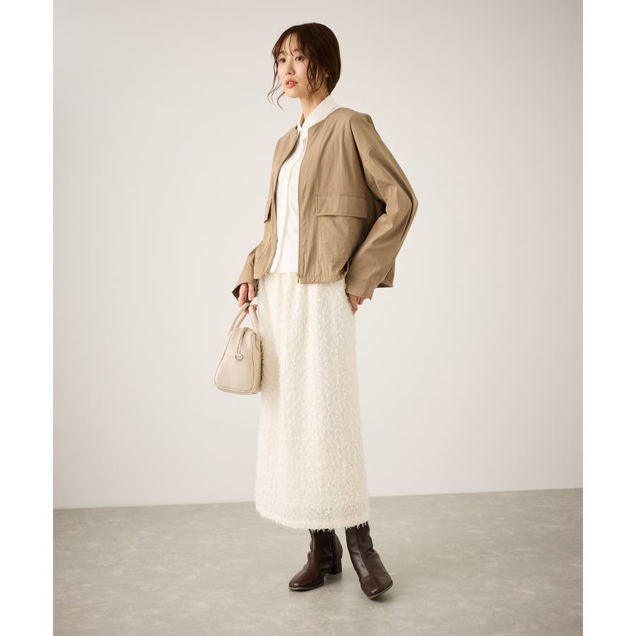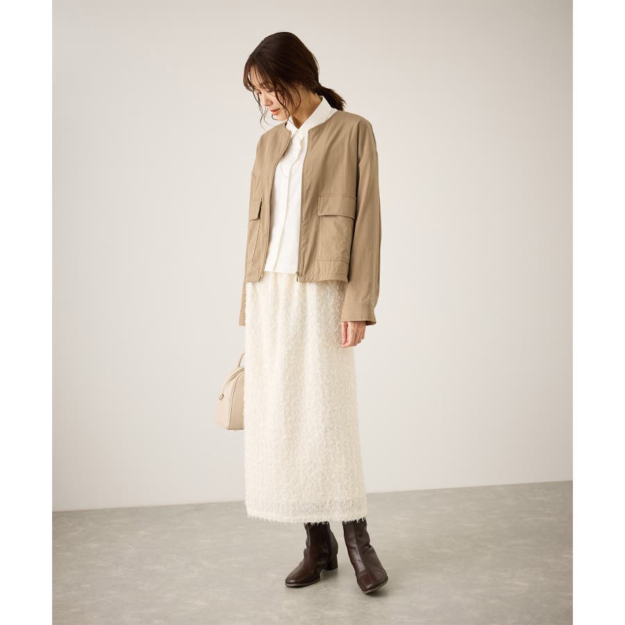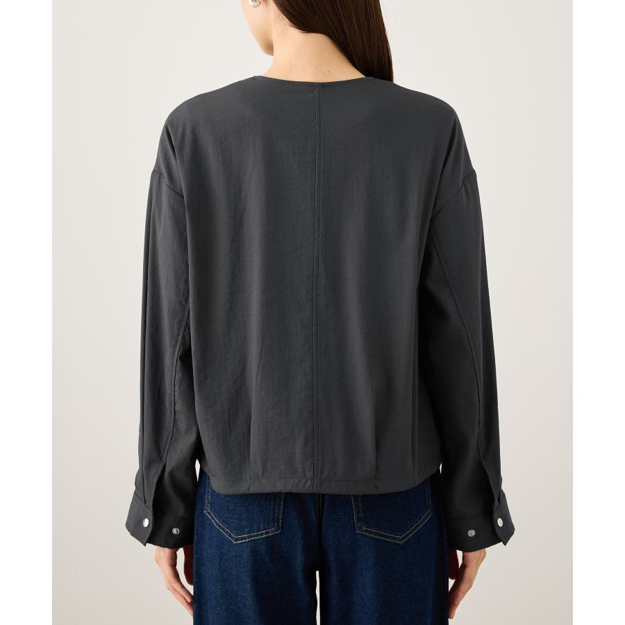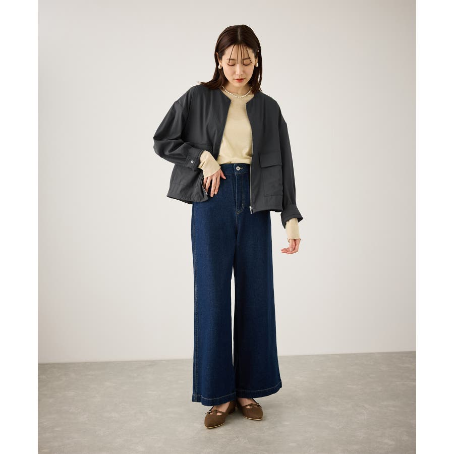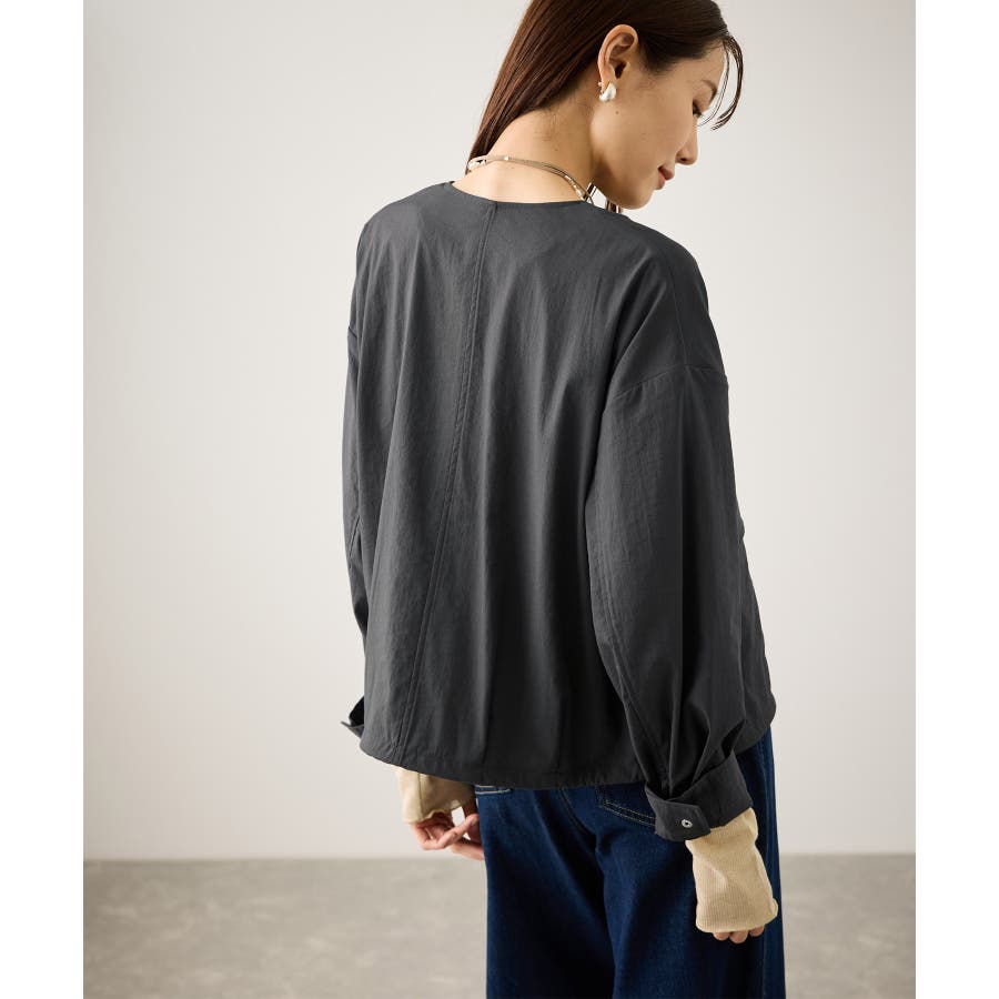 ・ノーカラーなので、カーディガン感覚で室内でも脱がずに羽織っていられるライトブルゾン。