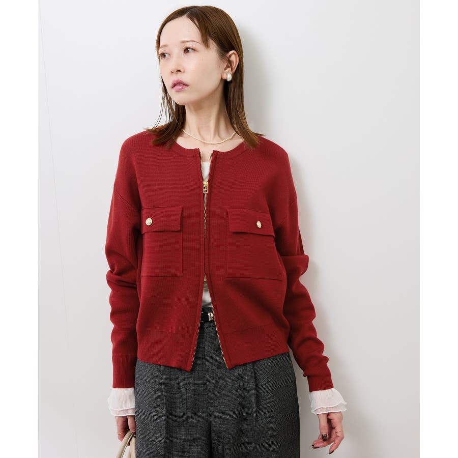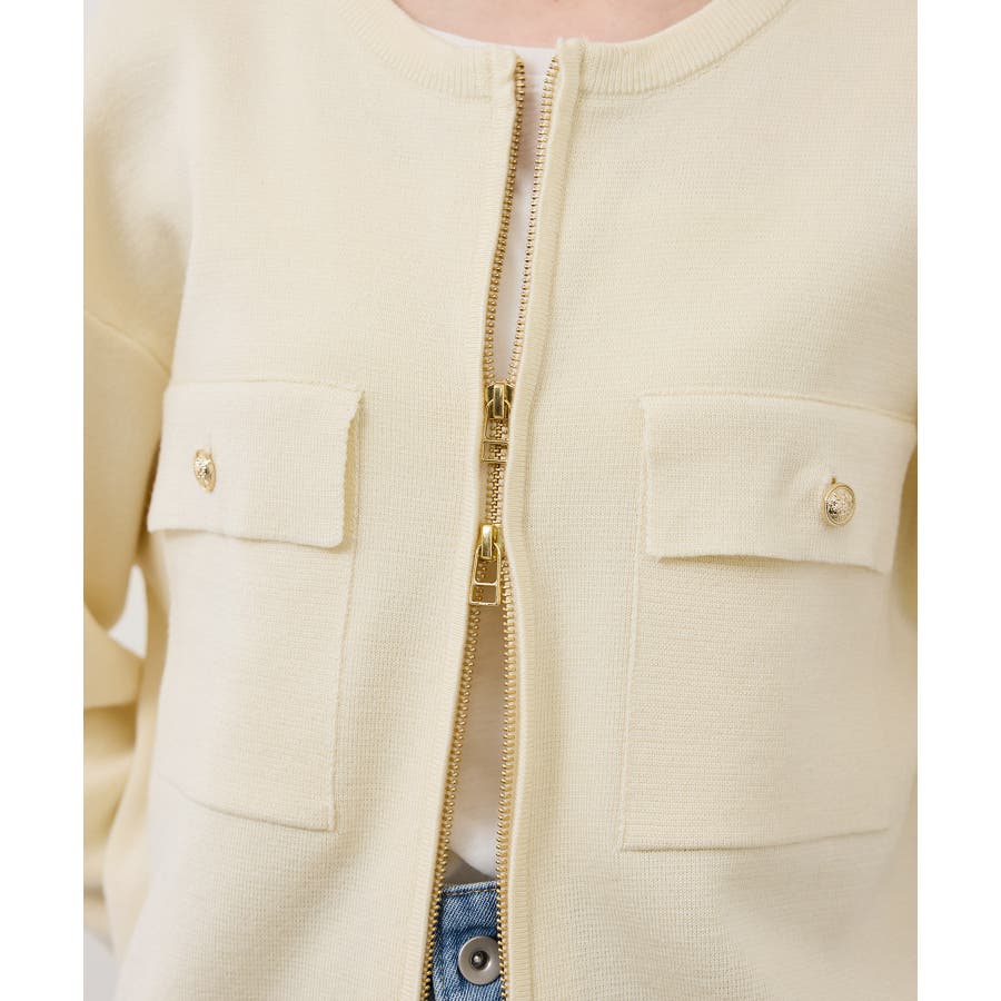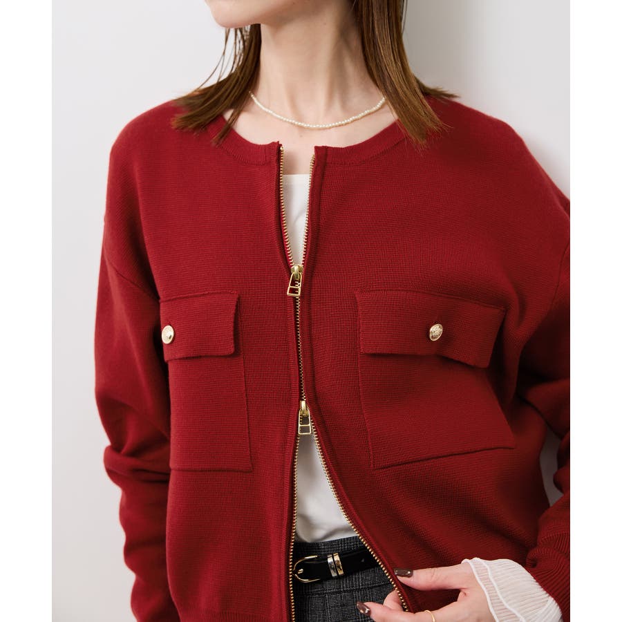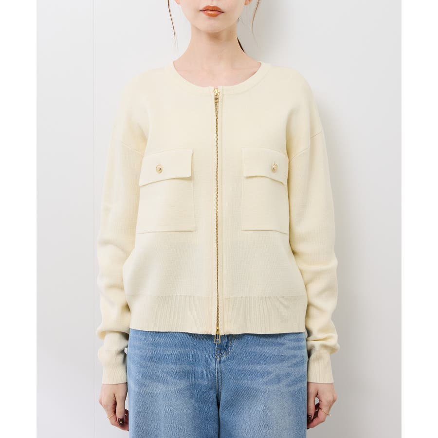 ・どの色もゴールドファスナーとの相性が良く、カジュアルなニットに上品な華やかさをプラスする。