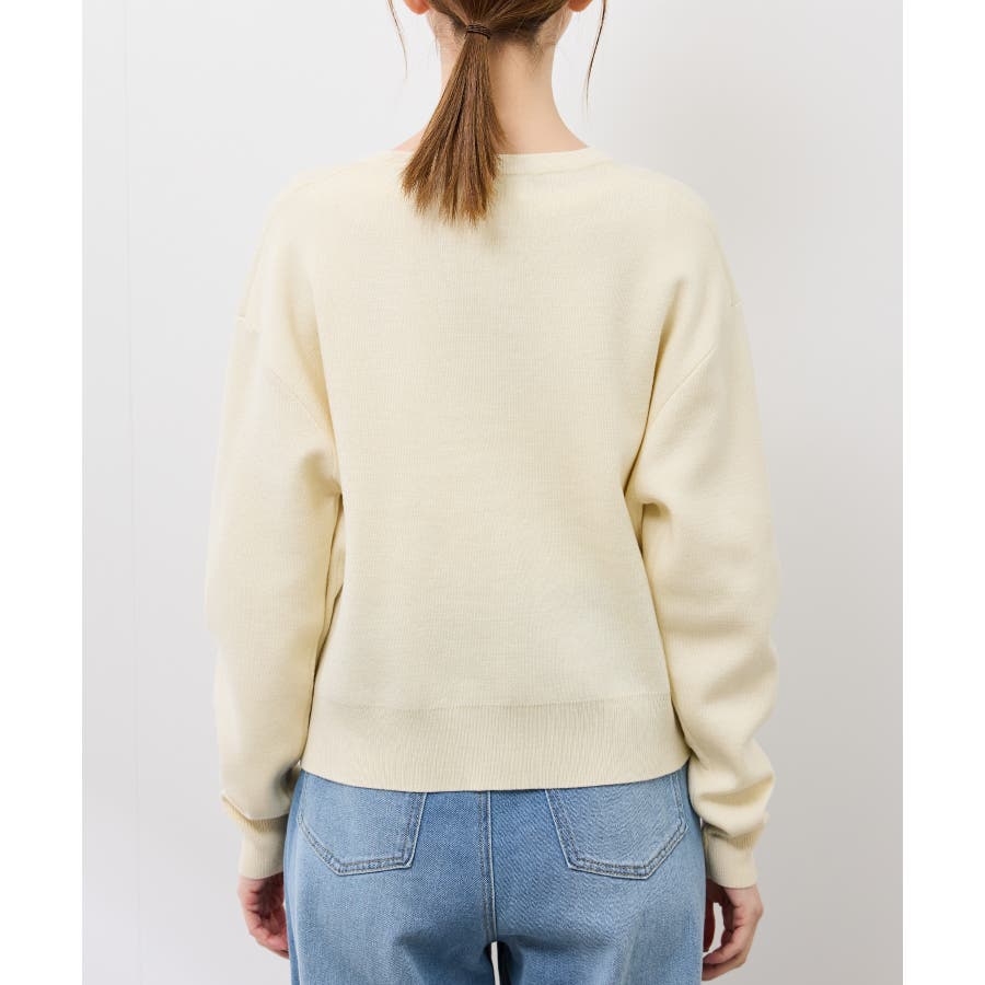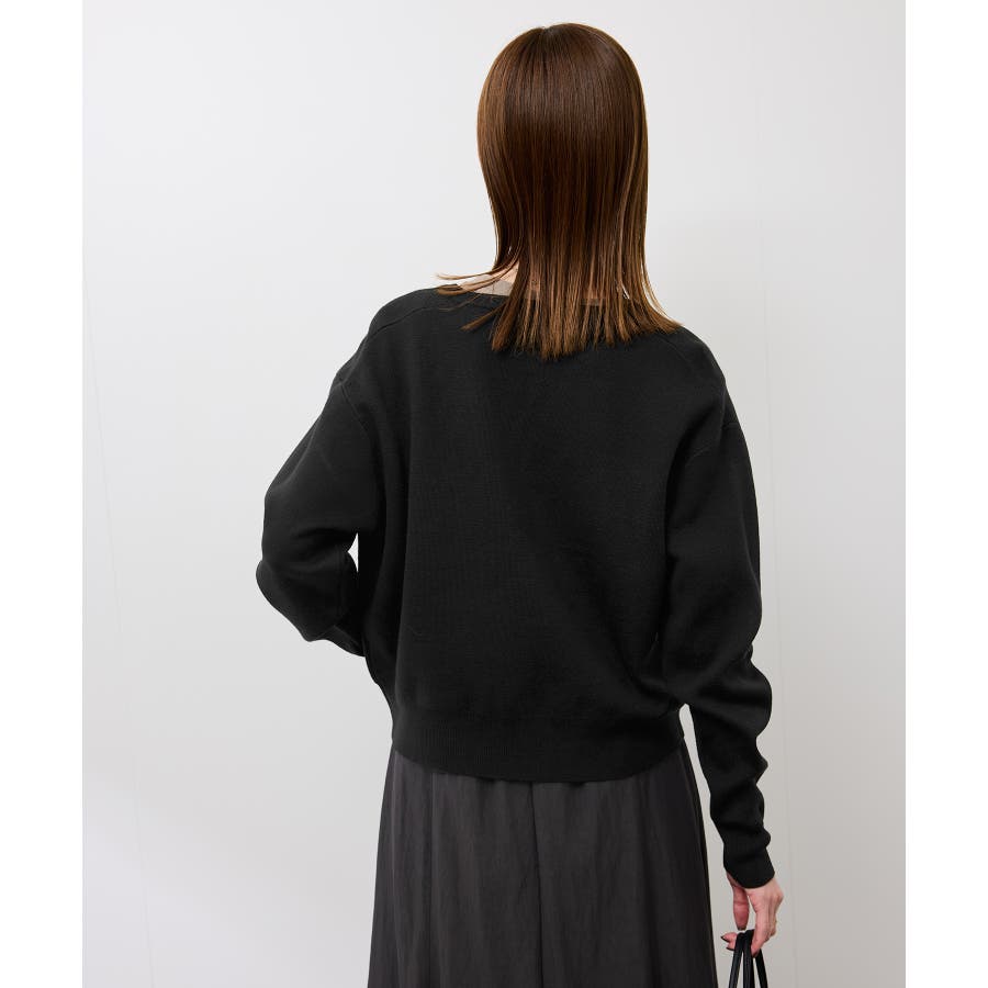 ・軽アウター感覚でも着られるカーディガンライクなニットトップス。