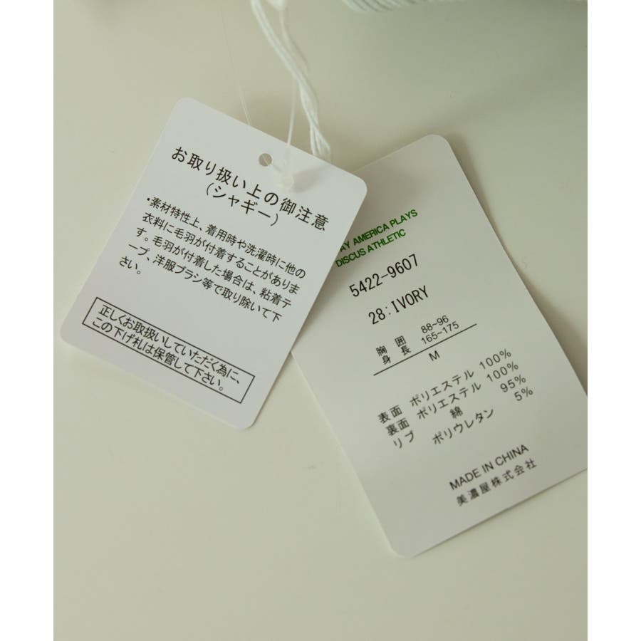 | 素材 | (表地)ポリエステル 100% (裏地)ポリエステル 100% (リブ)綿 95% ポリウレタン 5% |