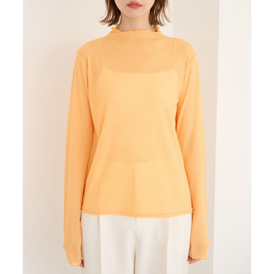 ・透け感のあるシアー素材の長袖カットソー。