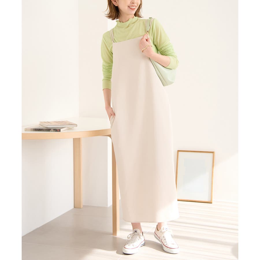 ・シンプルな一枚着なら、キャミソールを重ねて透けの対応を。