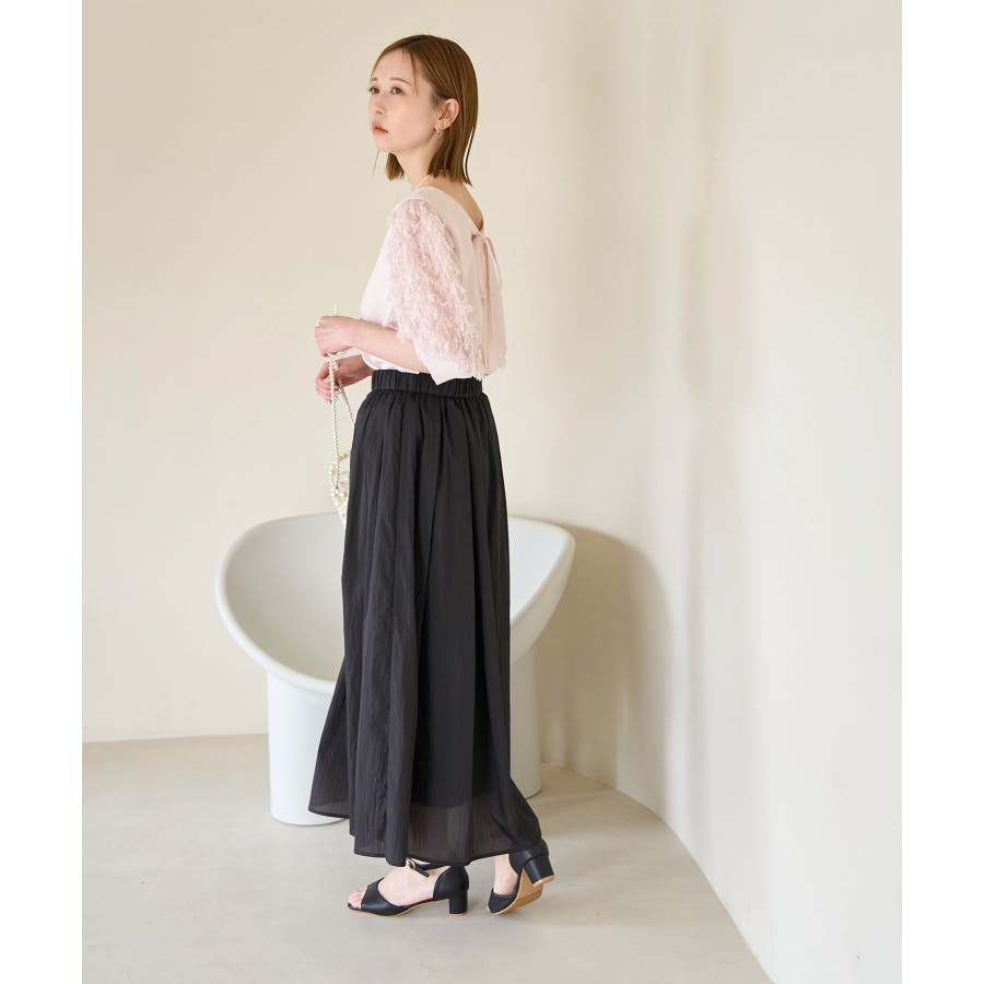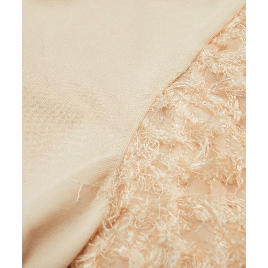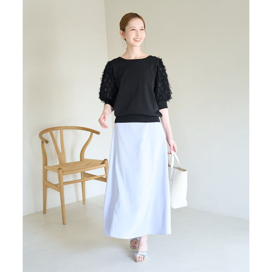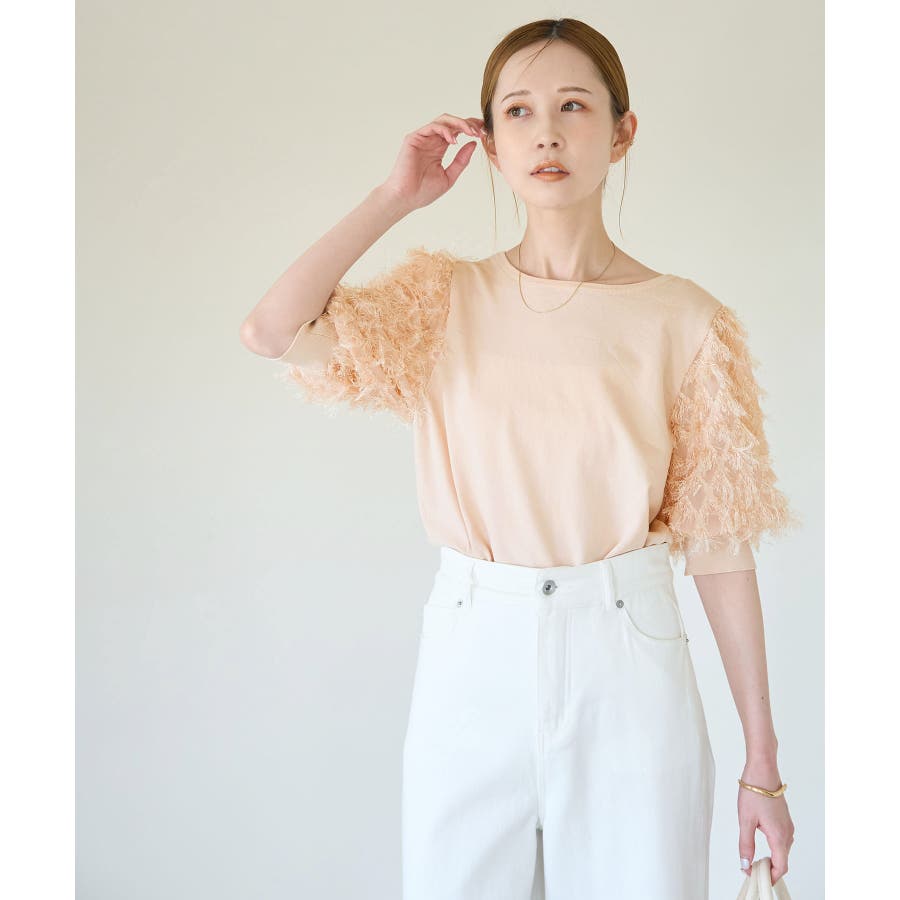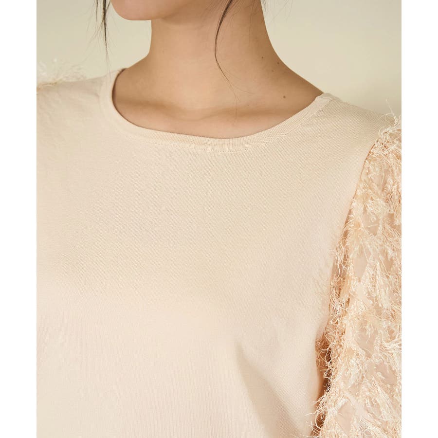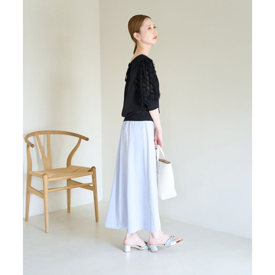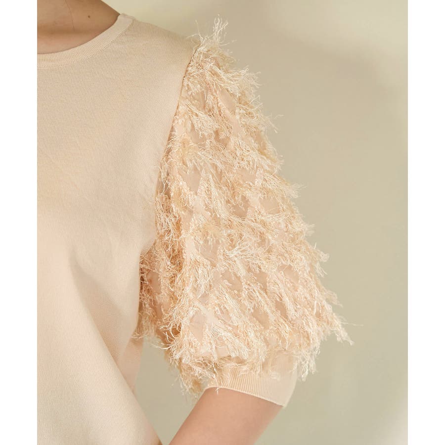 【デザイン・シルエット】 ・袖をシャギーニットで切り替えた、天竺編みのニットプルオーバー。 ・ふんわりスリーブのクラシカルな5分袖。 ・前後逆にも着られる2WAYで、繊細なリボンがポイント。 【カラー】 ・ブラック、オフホワイト、ベージュ、ピンクの4色展開。 【スタイリングポイント】 ・プリントスカートを合わせてエレガントなお出かけルックが完成。 ・オフホワイトやピンクはブルージーンズとも相性抜群。 ・裾リブですっきりとしていて、ワイドボトムも合わせやすい。 ----------------------------- 裏地:なし 透け感:なし 伸縮性:身頃はややあり 生地感・厚さ:普通 季節:春~秋 ----------------------------- ※撮影時の光、お使いのモニター環境によって色の見え方が違う場合がございます。 ※モデル身長:165cm 着用サイズ:38