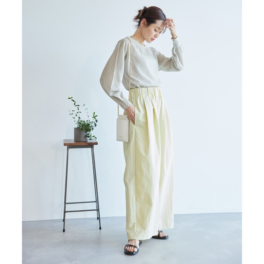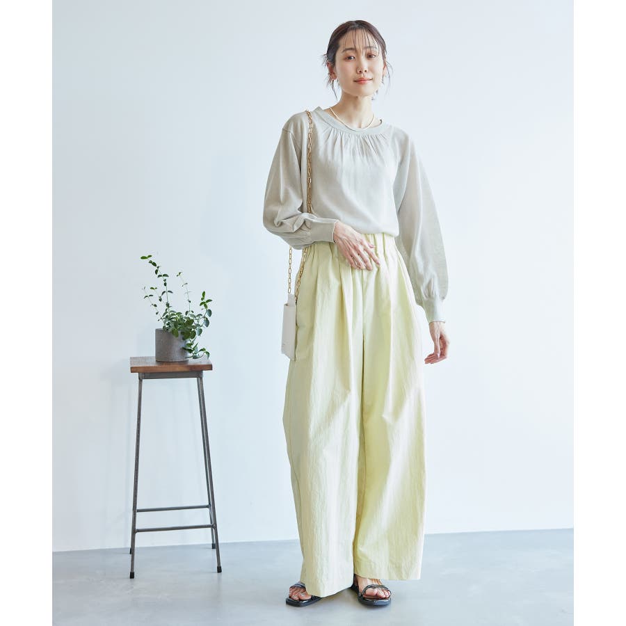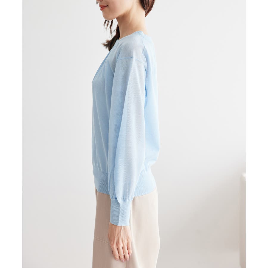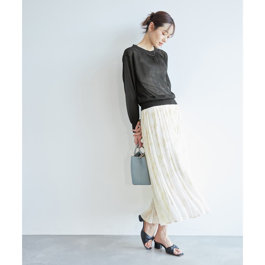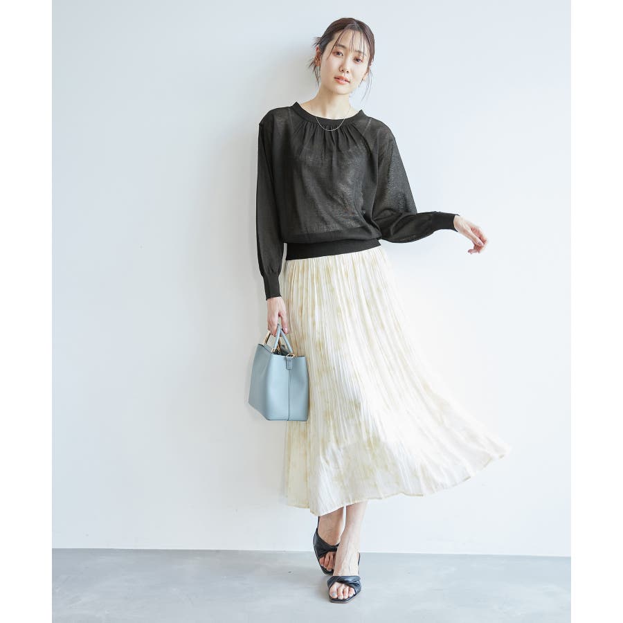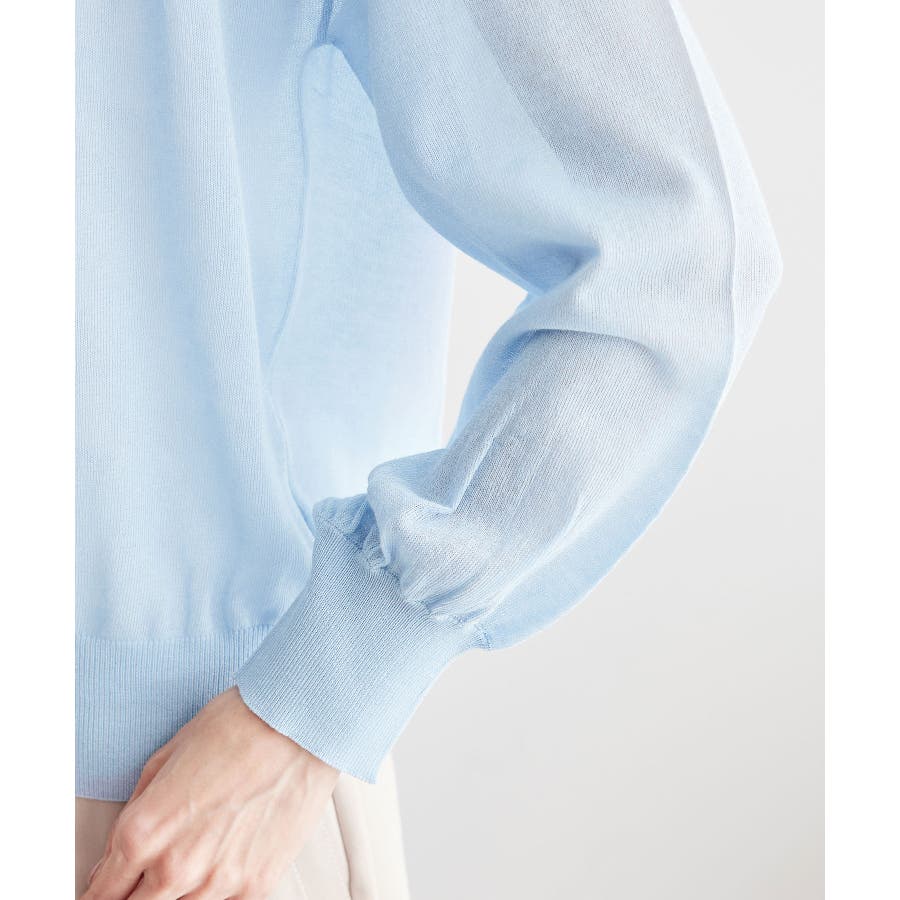 【デザイン・シルエット】 ・透け感のある大人なニットプルオーバー。 ・ネックラインと袖口にギャザーを入れた、ボリュームシルエット。 ・袖口と裾はリブ切り替えで引き締め。 【カラー】 ・ブラック、ライトグレー、ブルーのクールな3色展開。 【スタイリングポイント】 ・キャミソールワンピースとのレイヤードに一押し。 ・華やかな柄物スカートも相性抜群。 ----------------------------- 裏地:なし 透け感:ややあり 伸縮性:ややあり 生地感・厚さ:やや薄手 季節:春・夏 ----------------------------- ※撮影時の光、お使いのモニター環境によって色の見え方が違う場合がございます。 ※モデル身長:165cm 着用サイズ:38