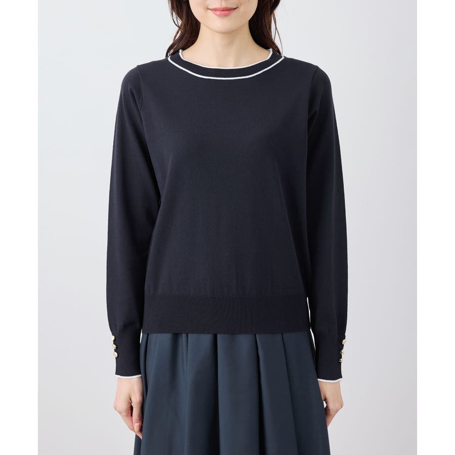 ライン入りニットプルオーバー/アンチピリング・洗濯機OK