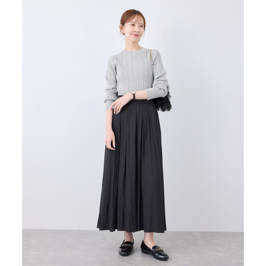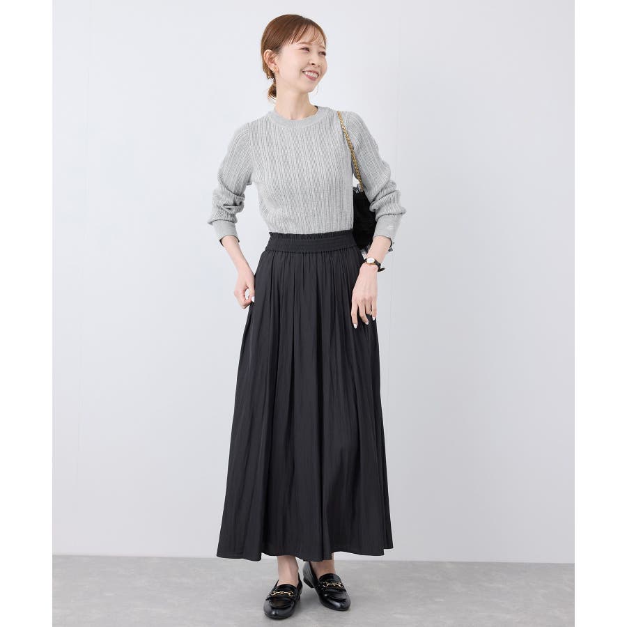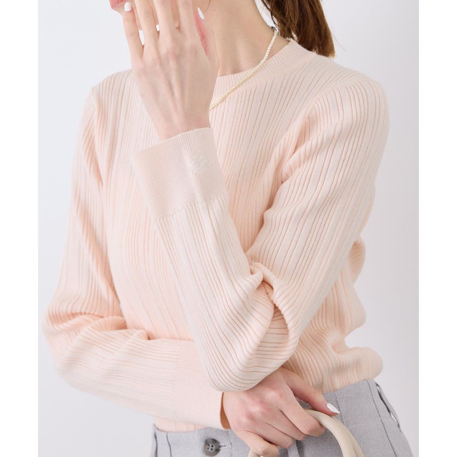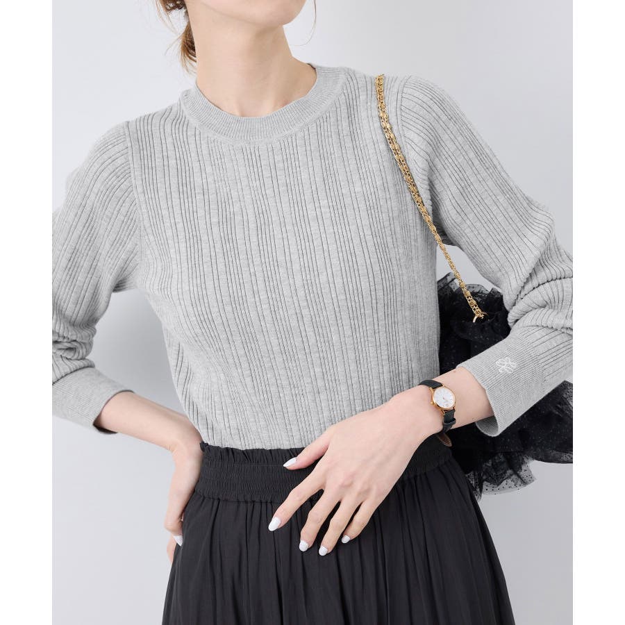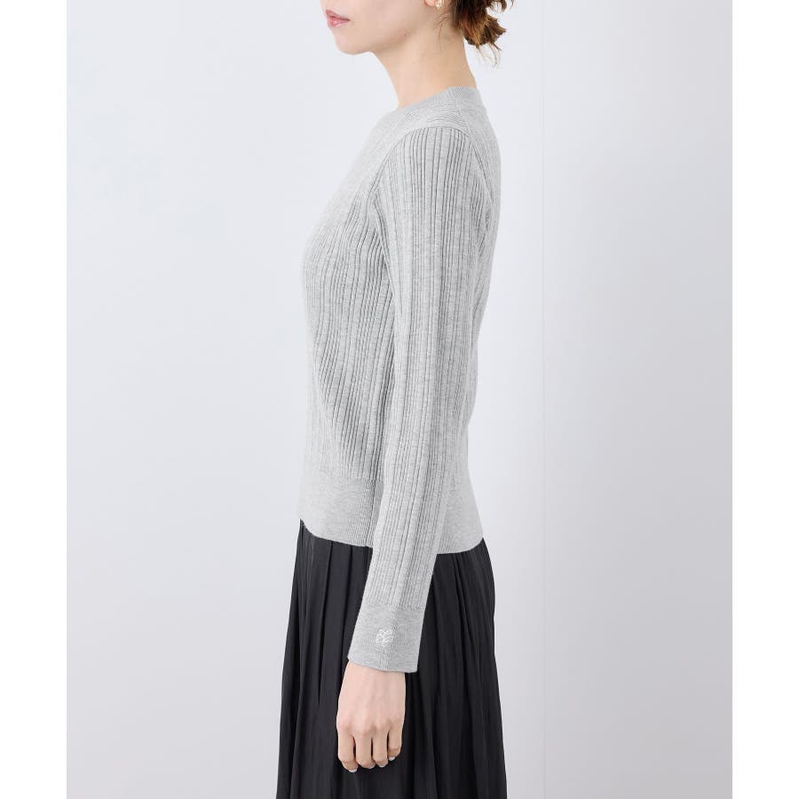 【素材感】 ・シルク混紡のしなやかで品のある長袖ニットプルオーバー。 【デザイン・シルエット】 ・ベーシックで着回しのきく、クルーネックデザイン。 ・適度にゆとりがあるジャストサイズ。 ・左袖口にはオリジナルのロゴ刺繍をオン。 【カラー】 ・ライトグレー(08):ライトグレー×ライトグレー ・オフホワイト(15):オフホワイト×ネイビー ・ネイビー(40):ネイビー×オフホワイト ・ピンク(63):ピンク×ピンク 【スタイリングポイント】 ・ネイビーはホワイトやベージュのボトムで軽やかさを加えると◎。 ・オフホワイトやピンクの甘さは、デニムやカーゴパンツで抑えると好バランスに。 ・きれいめパンツやスカート合わせでお仕事着にも活躍。 ----------------------------- 裏地:なし 透け感:オフホワイト(15)はややあり 伸縮性:ややあり 生地感・厚さ:普通 季節:春・秋・冬(カーディガンやジャケットのインナーとしても◎) ----------------------------- ※撮影時の光、お使いのモニター環境によって色の見え方が違う場合がございます。 ※モデル身長:165cm 着用サイズ:38