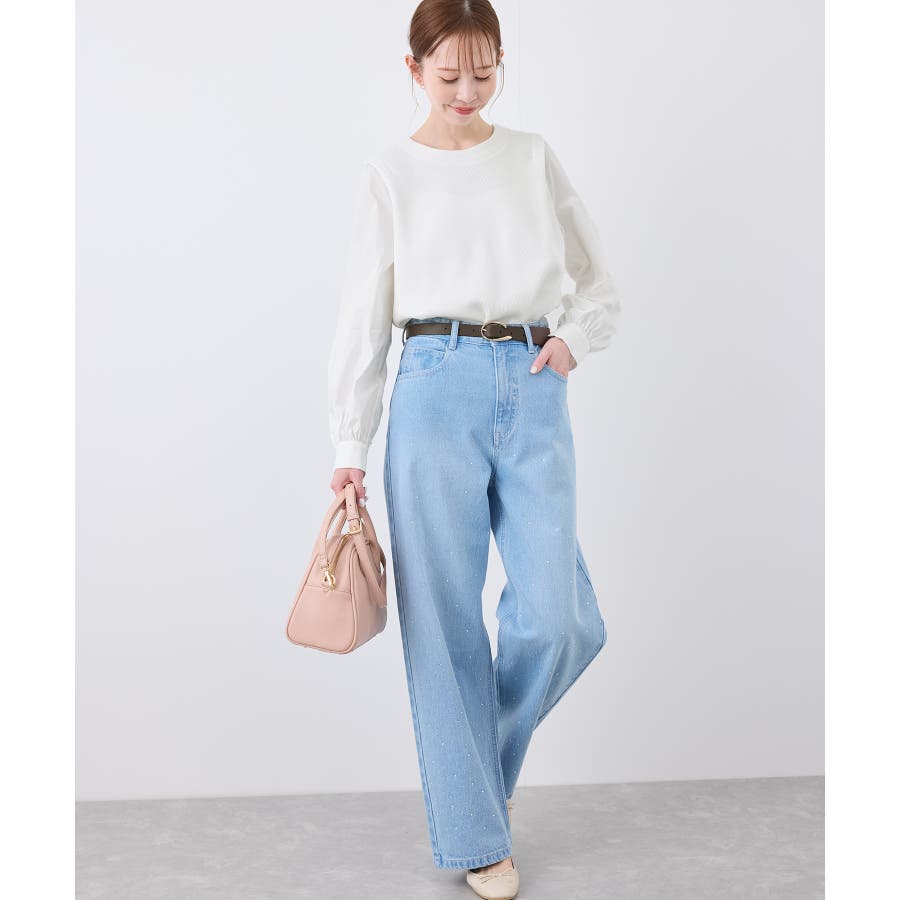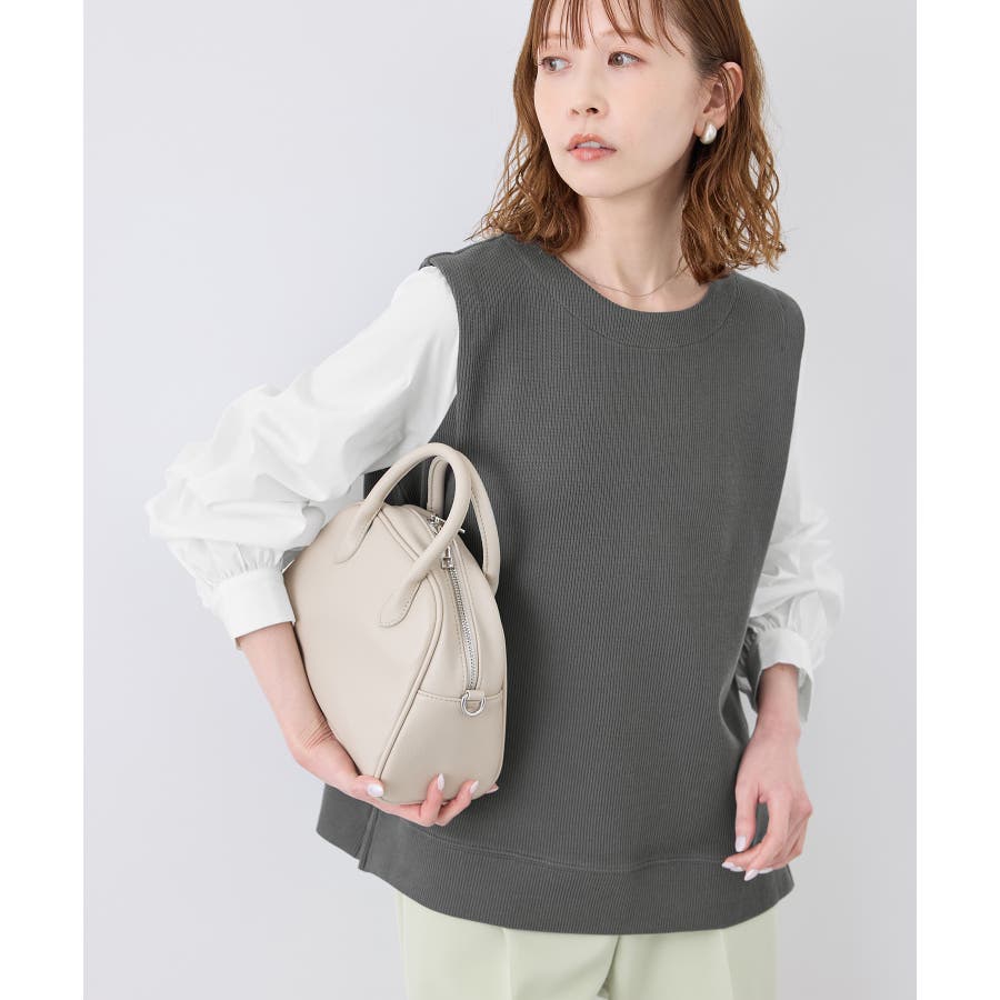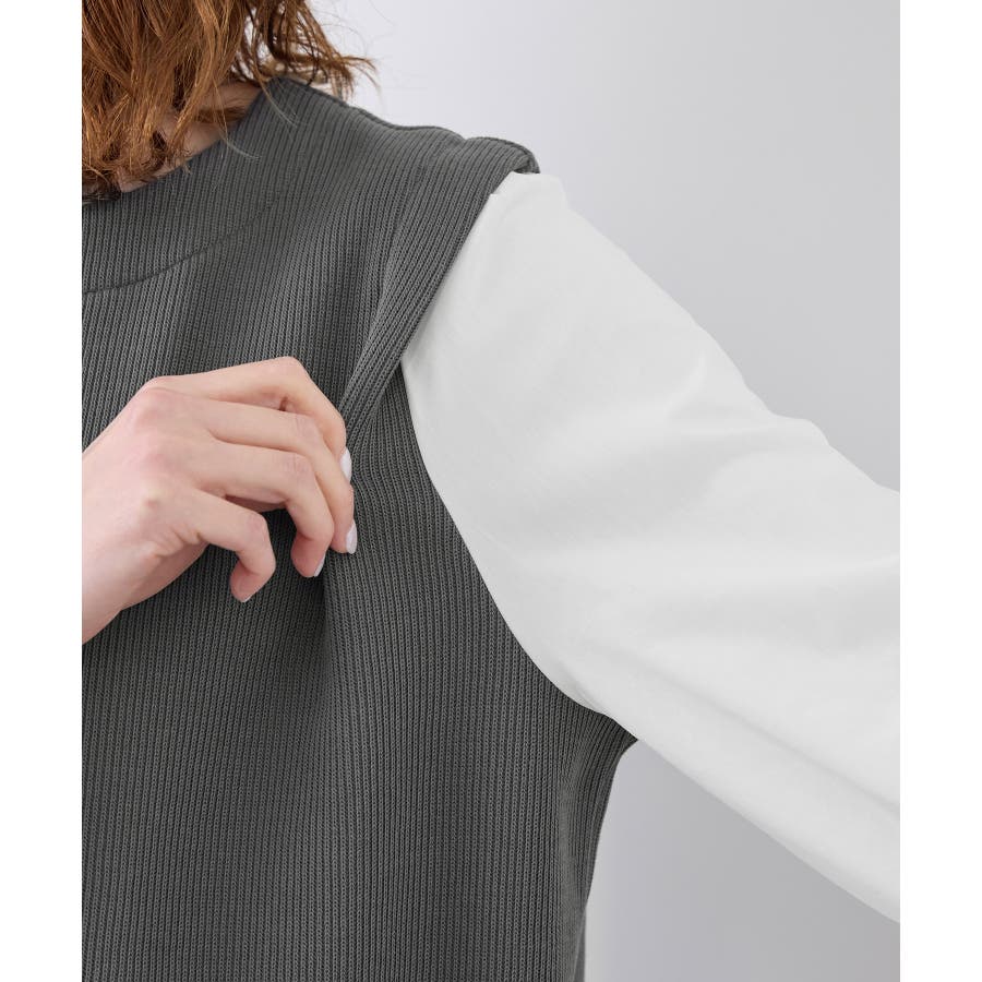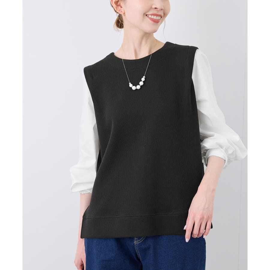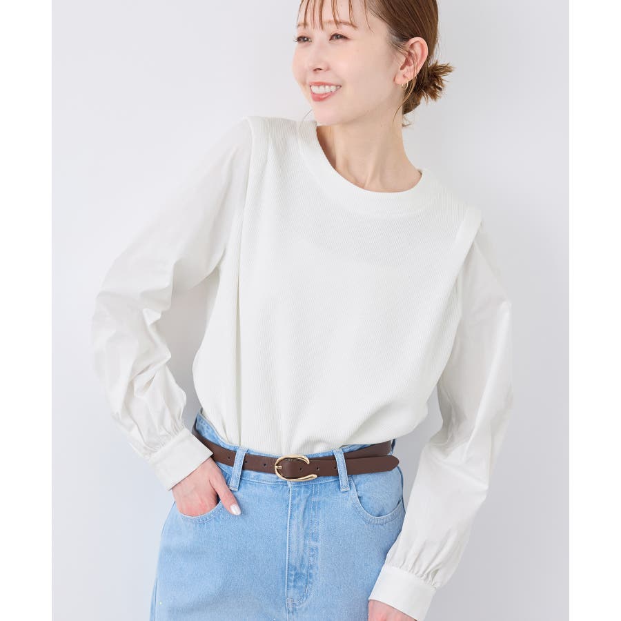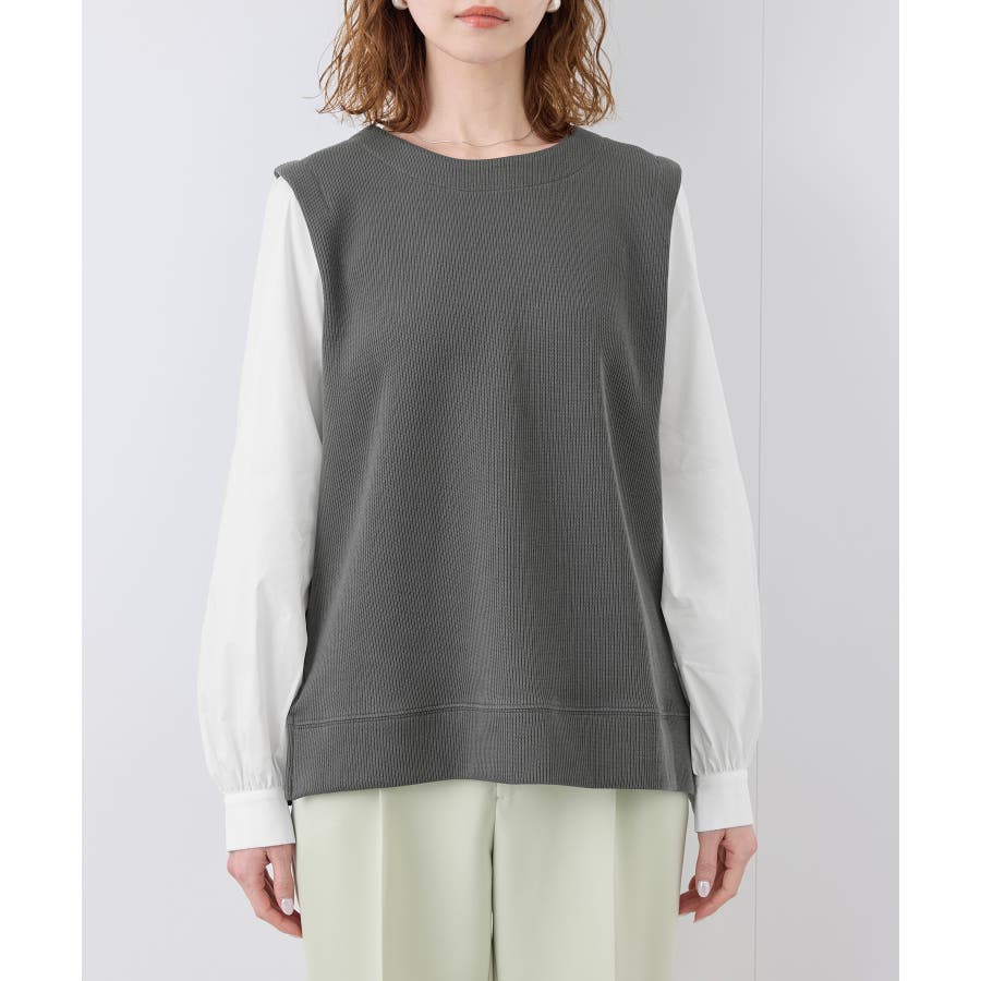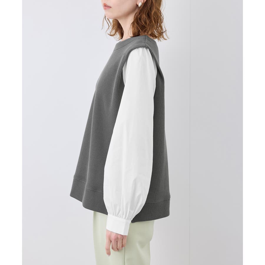 ・異素材コンビの長袖プルオーバー。